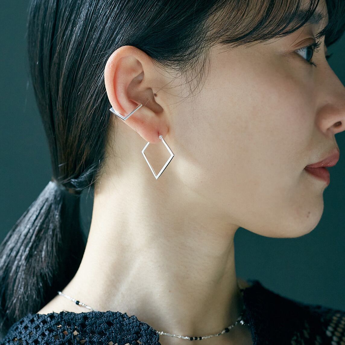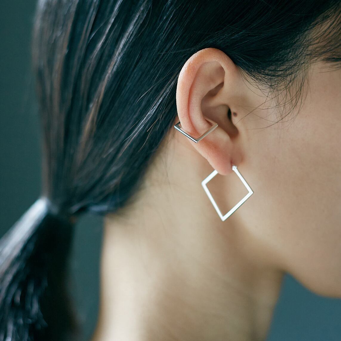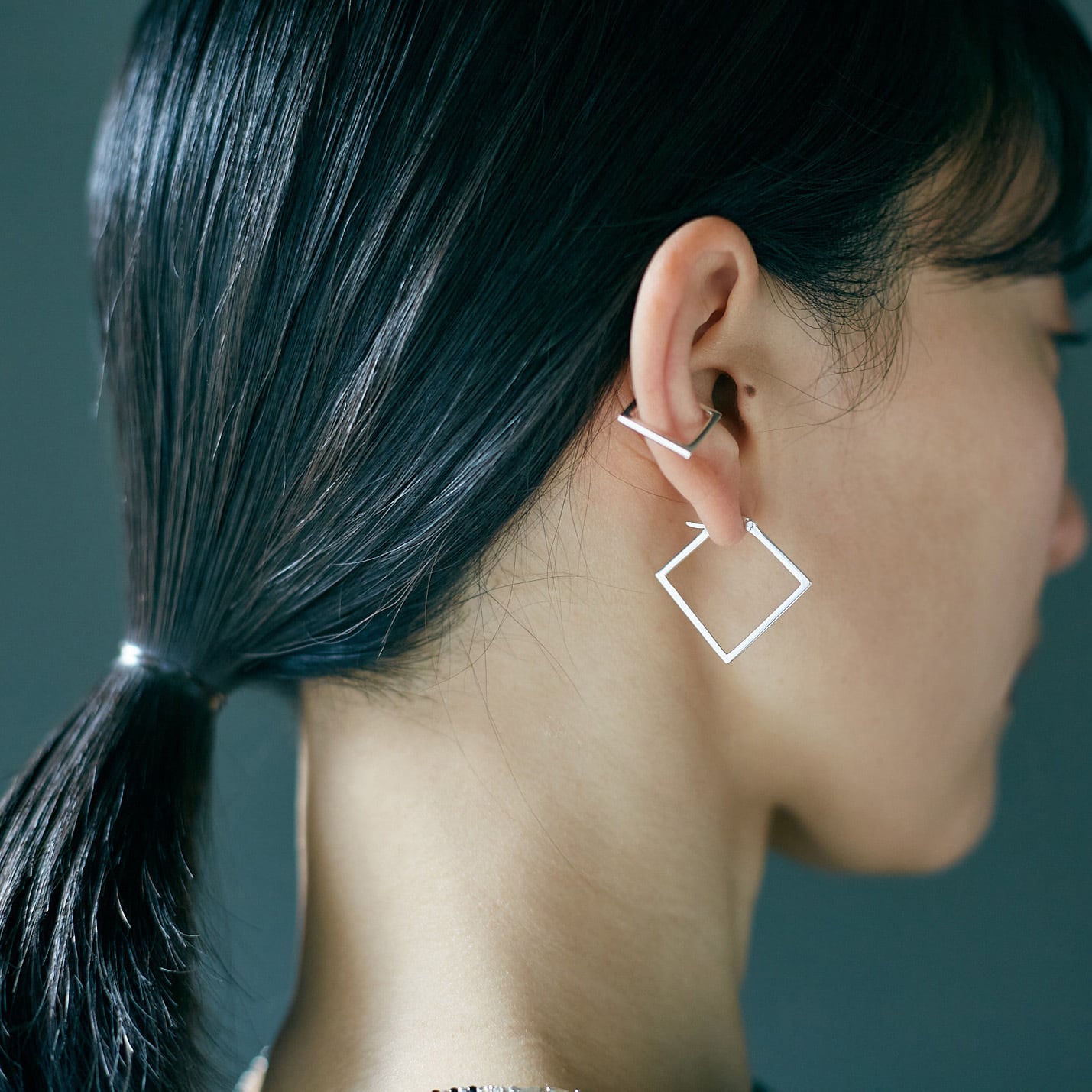 【2025AW Collection】 人気のイヤーカフ「square」シリーズにピアスが仲間入り。 シンプルで繊細なラインは耳元のポイントになります。 squareのイヤーカフとの重ね付けもおすすめです。 *両耳1setの販売になります。 size:22mm x 22mm material:silver925
