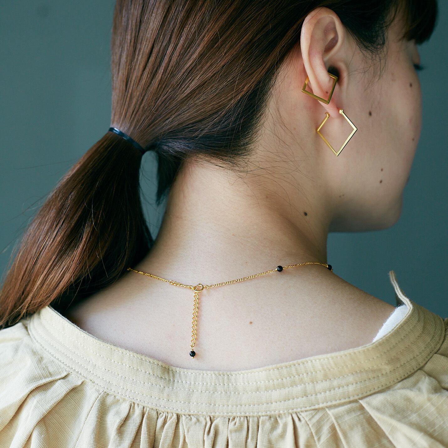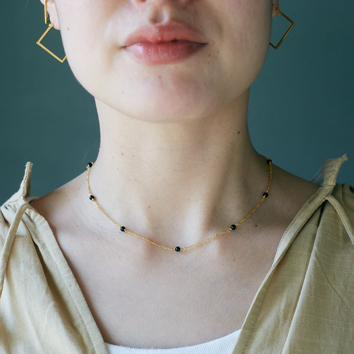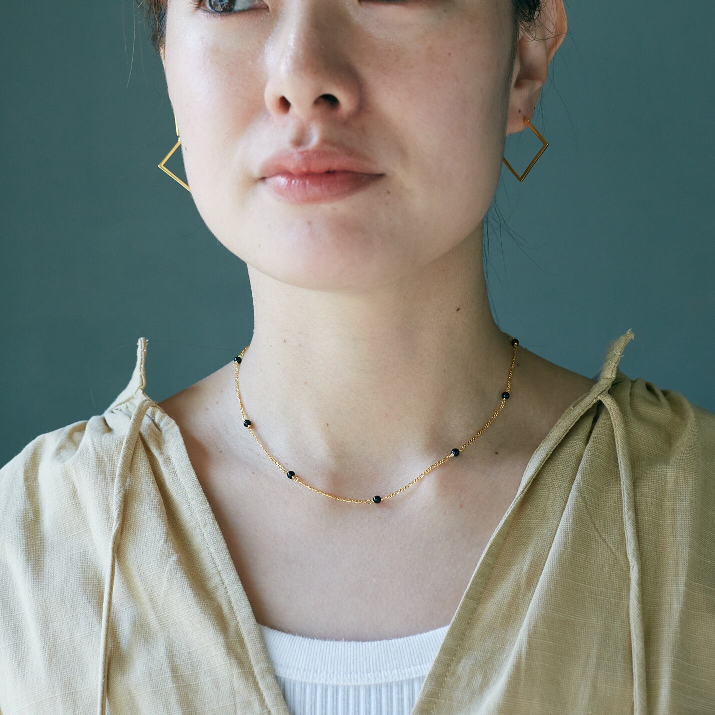3mmほどのonyxと華奢なデザインのチェーンを組み合わせたネックレス。