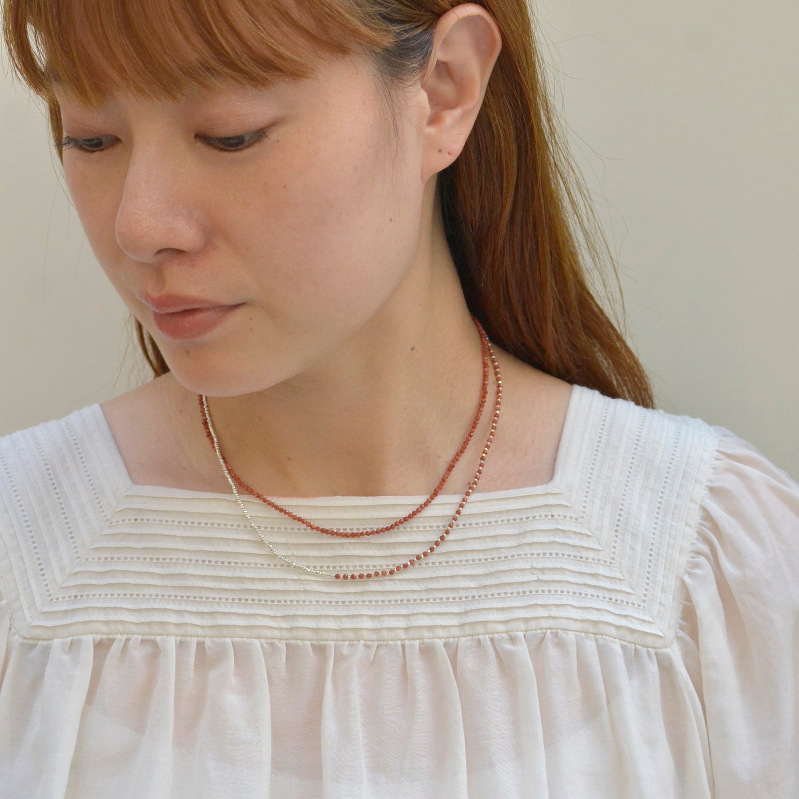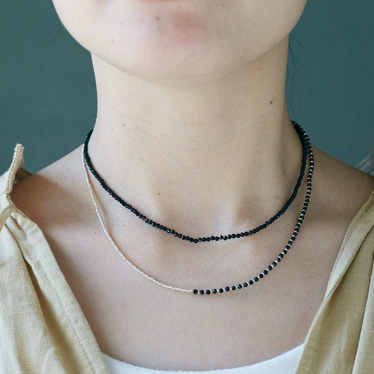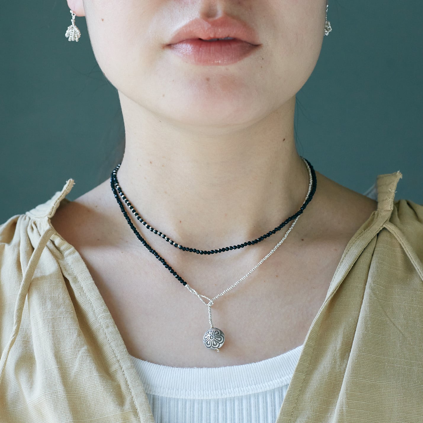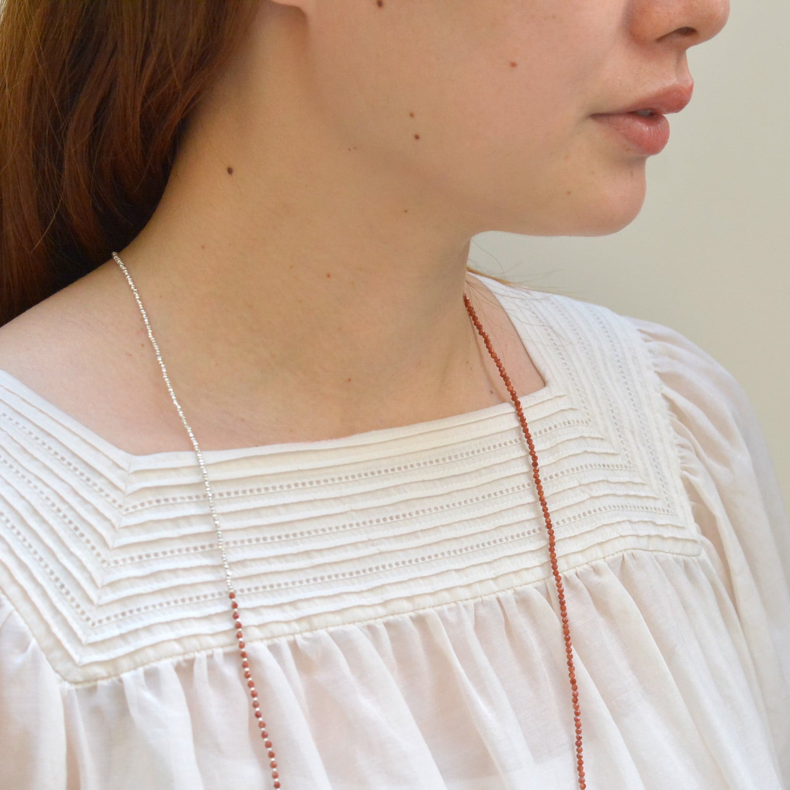 天然石ビーズとシルバービーズを交互に組み合わせたロングネックレス。