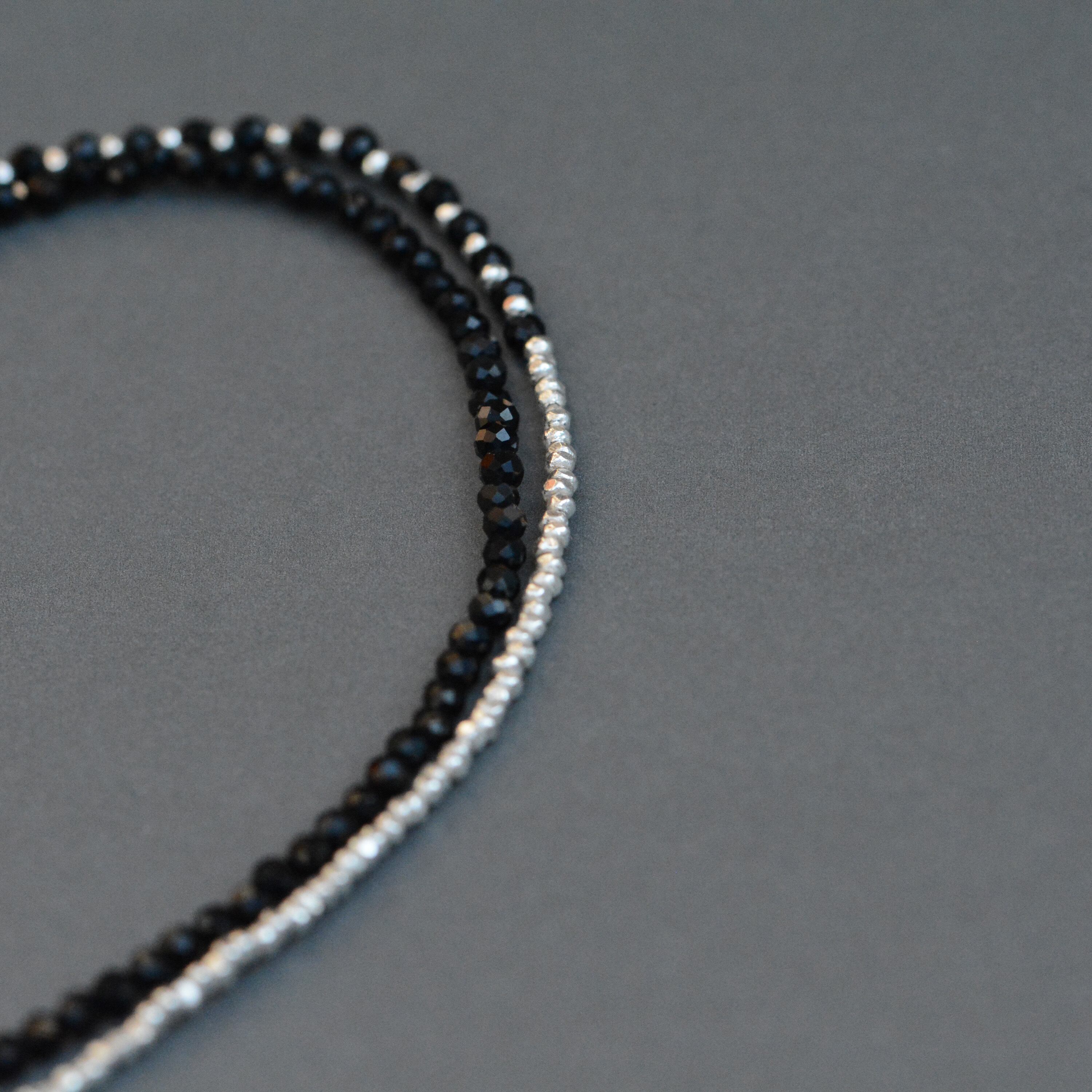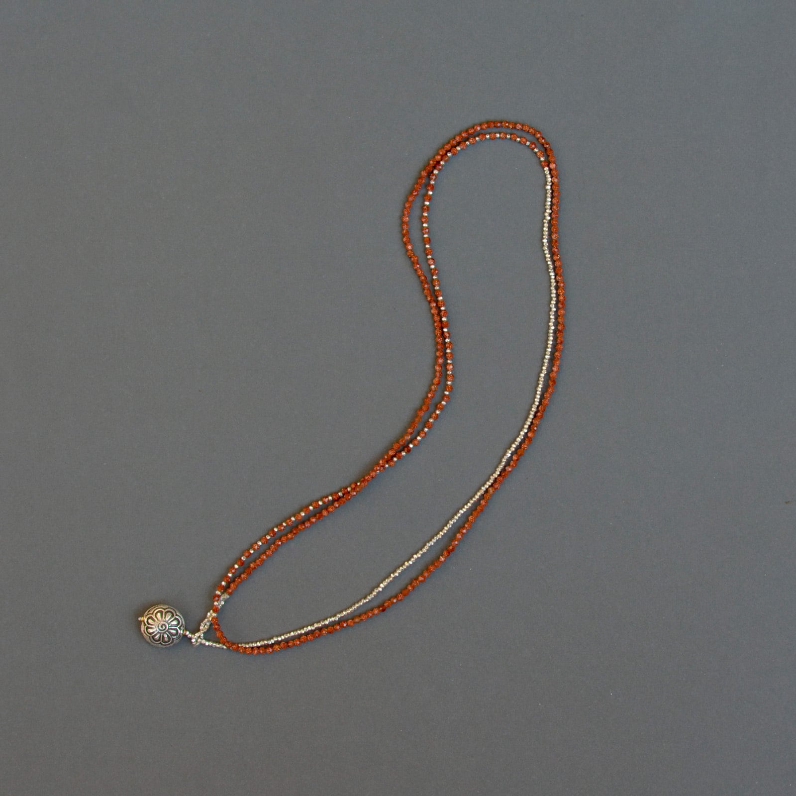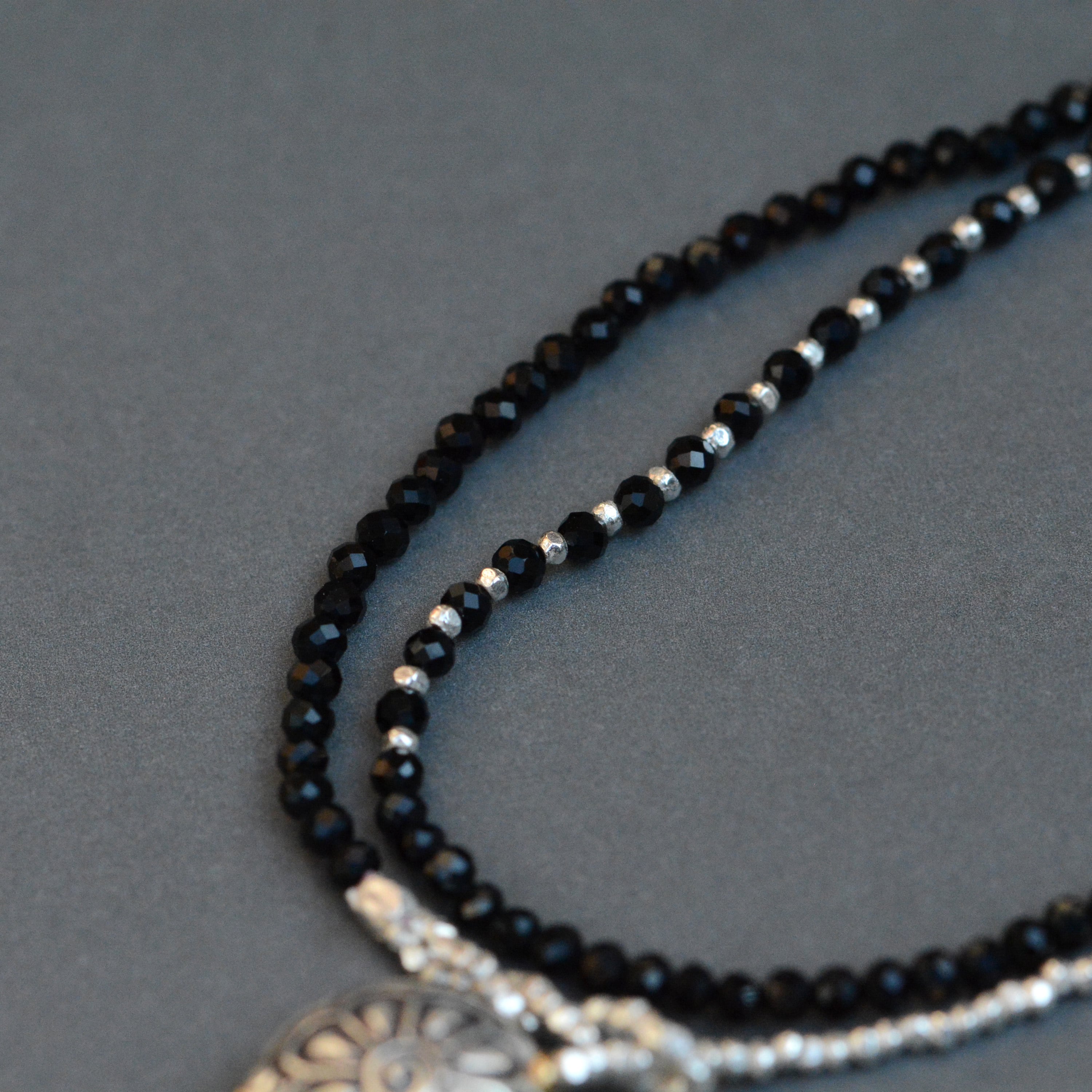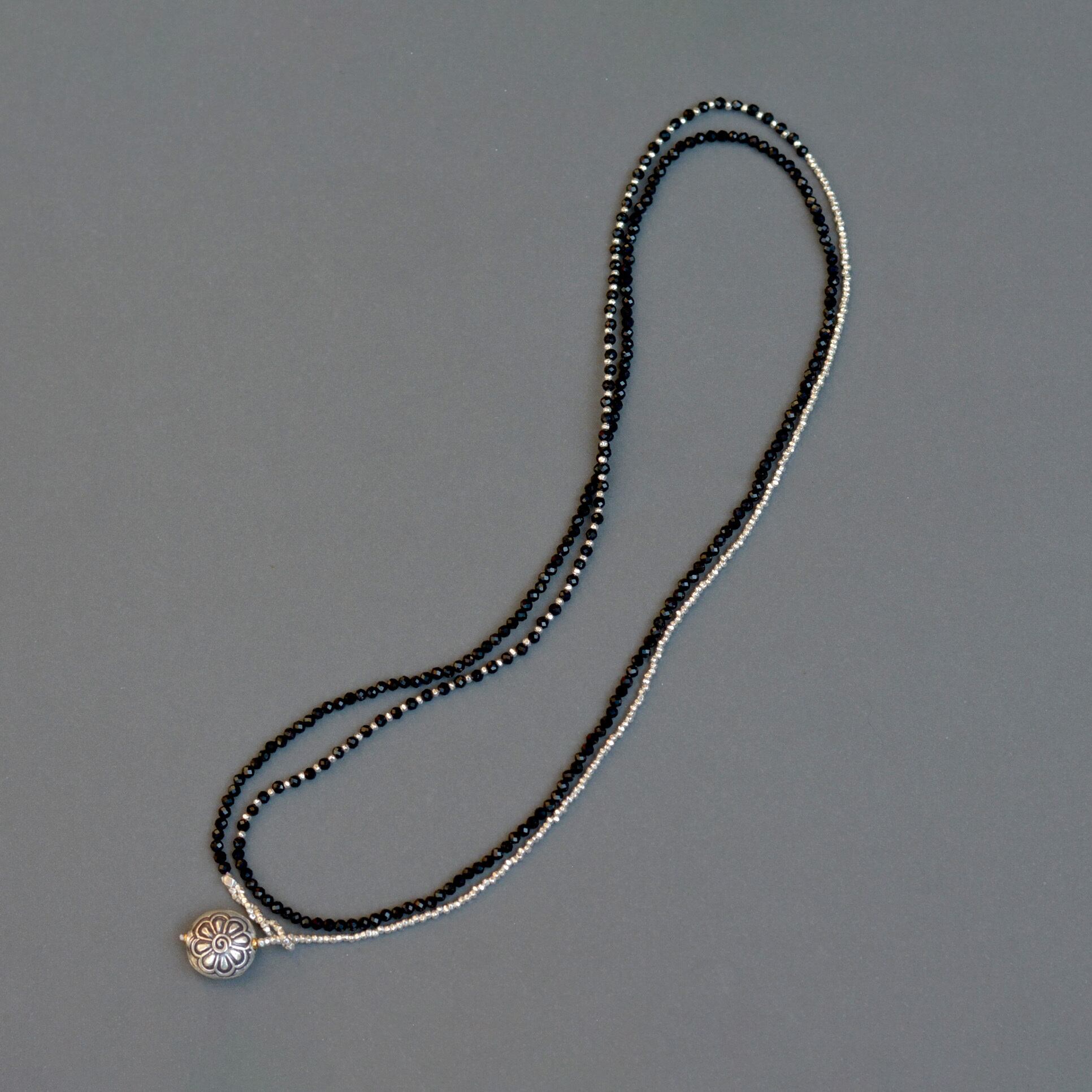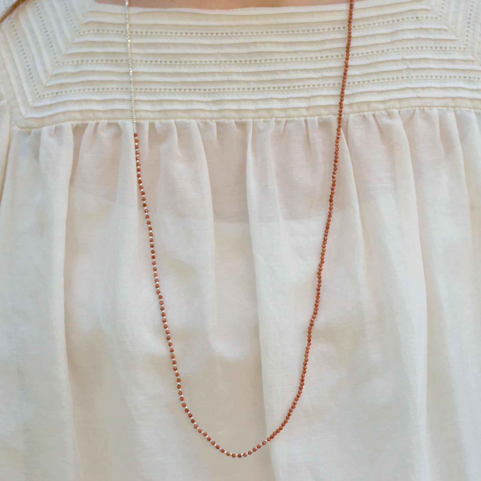 天然石ビーズとシルバービーズを交互に組み合わせたロングネックレス。
