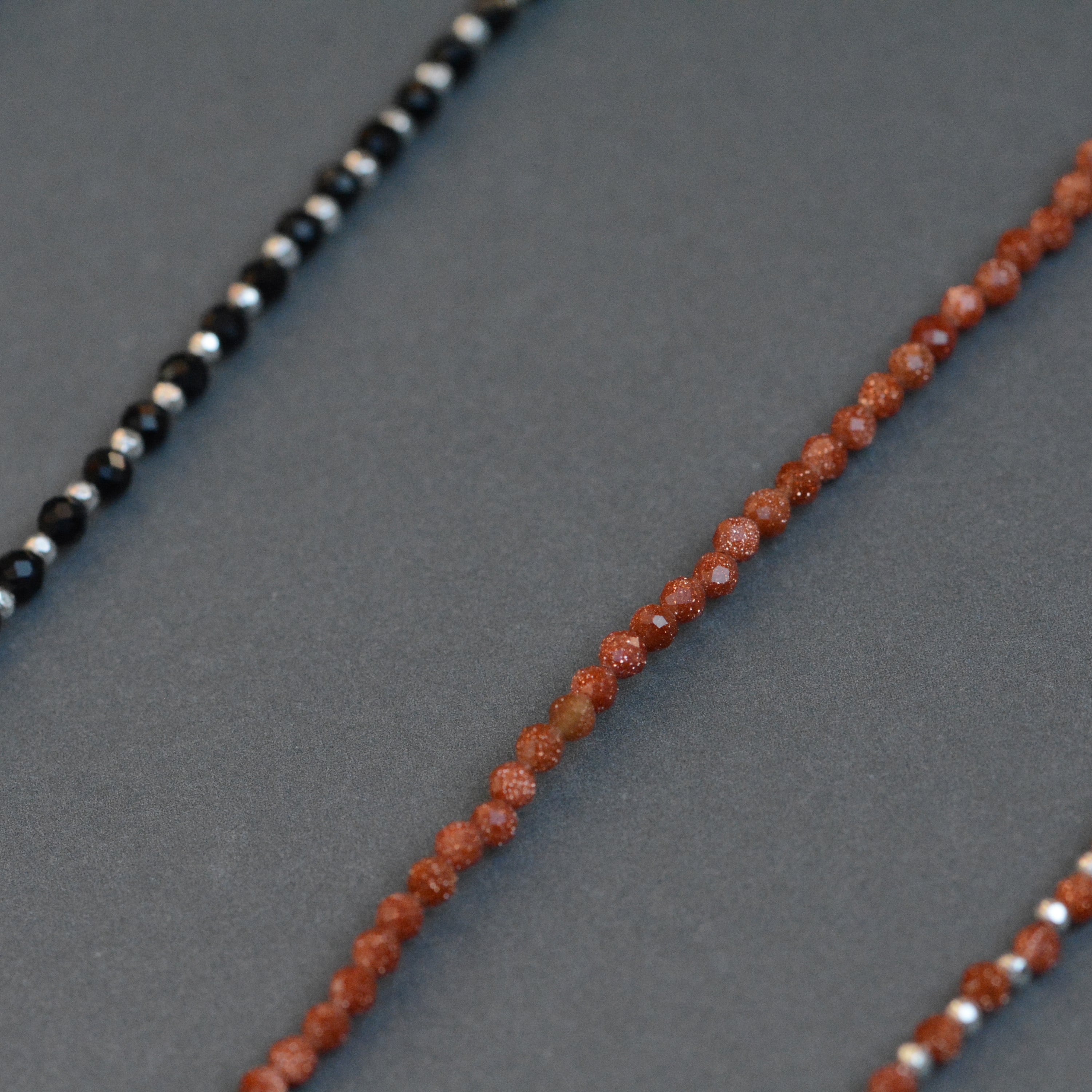 ブラックはonyx、オレンジはgold sandstoneのカットビーズを使用。