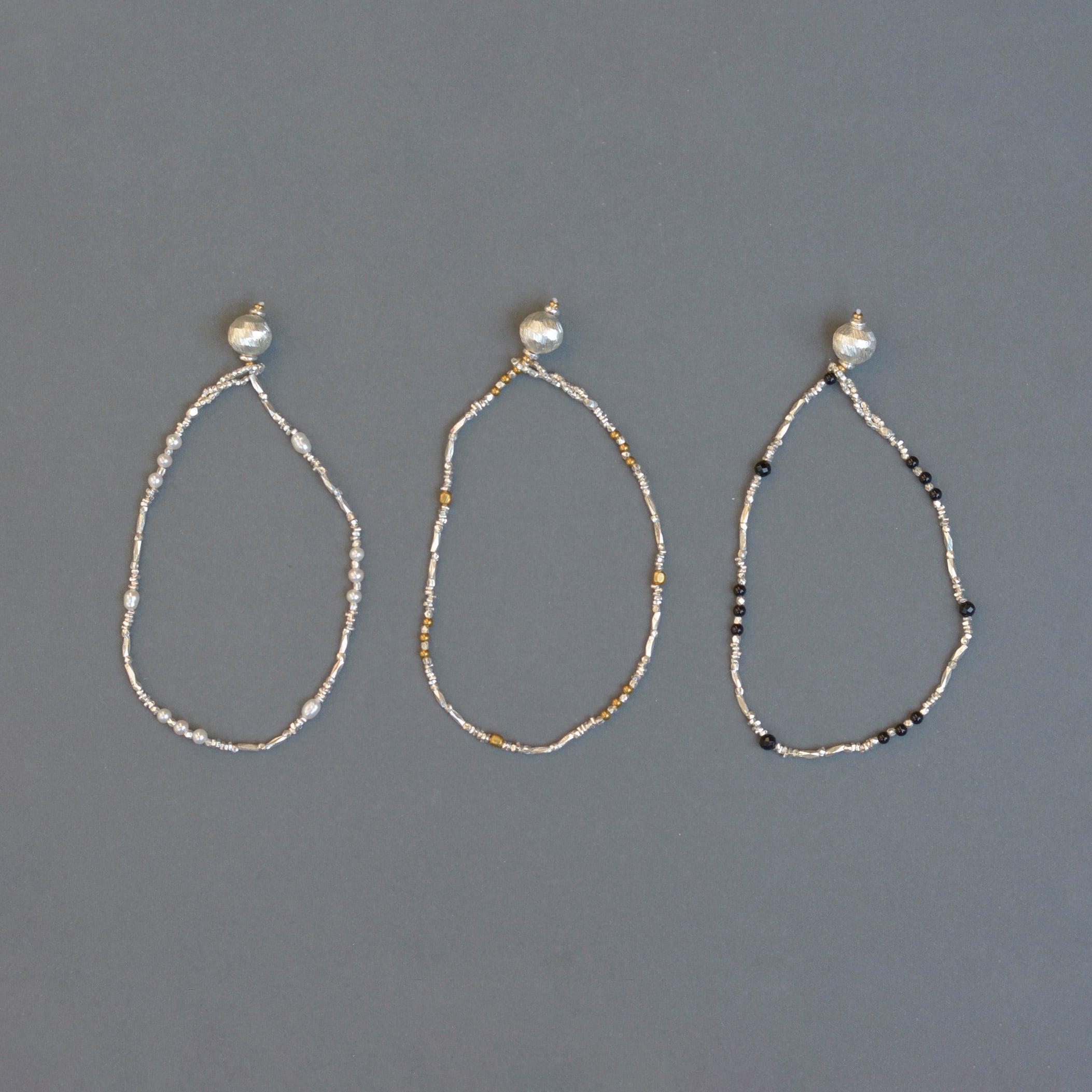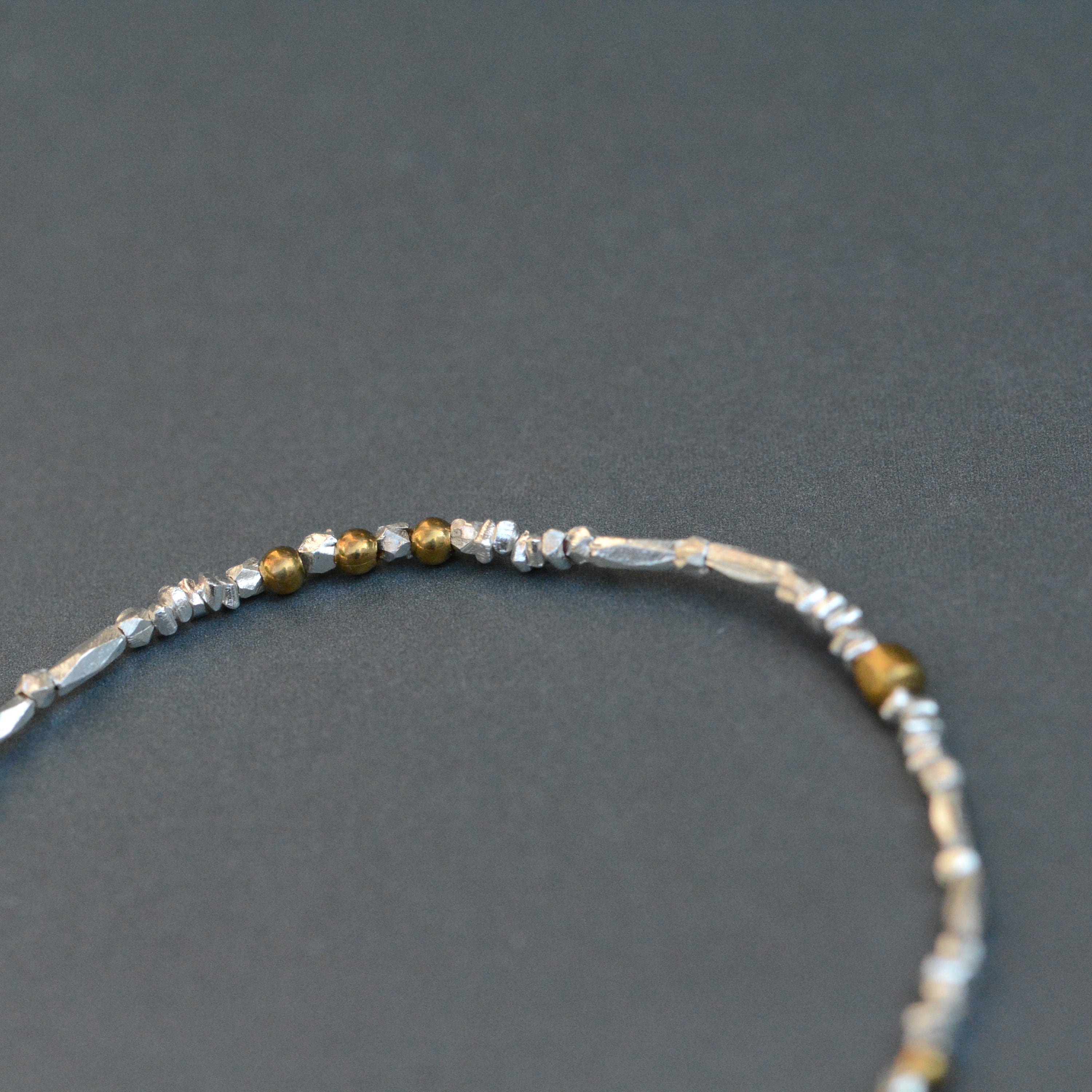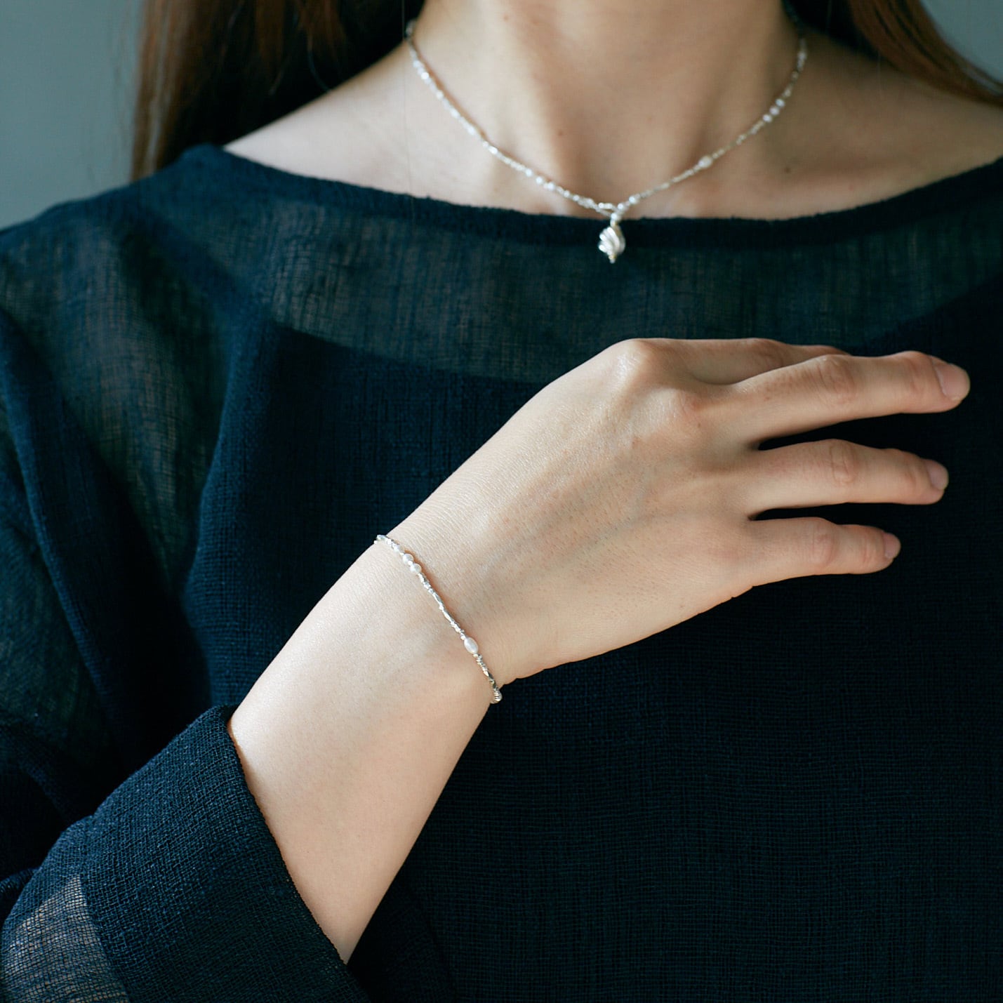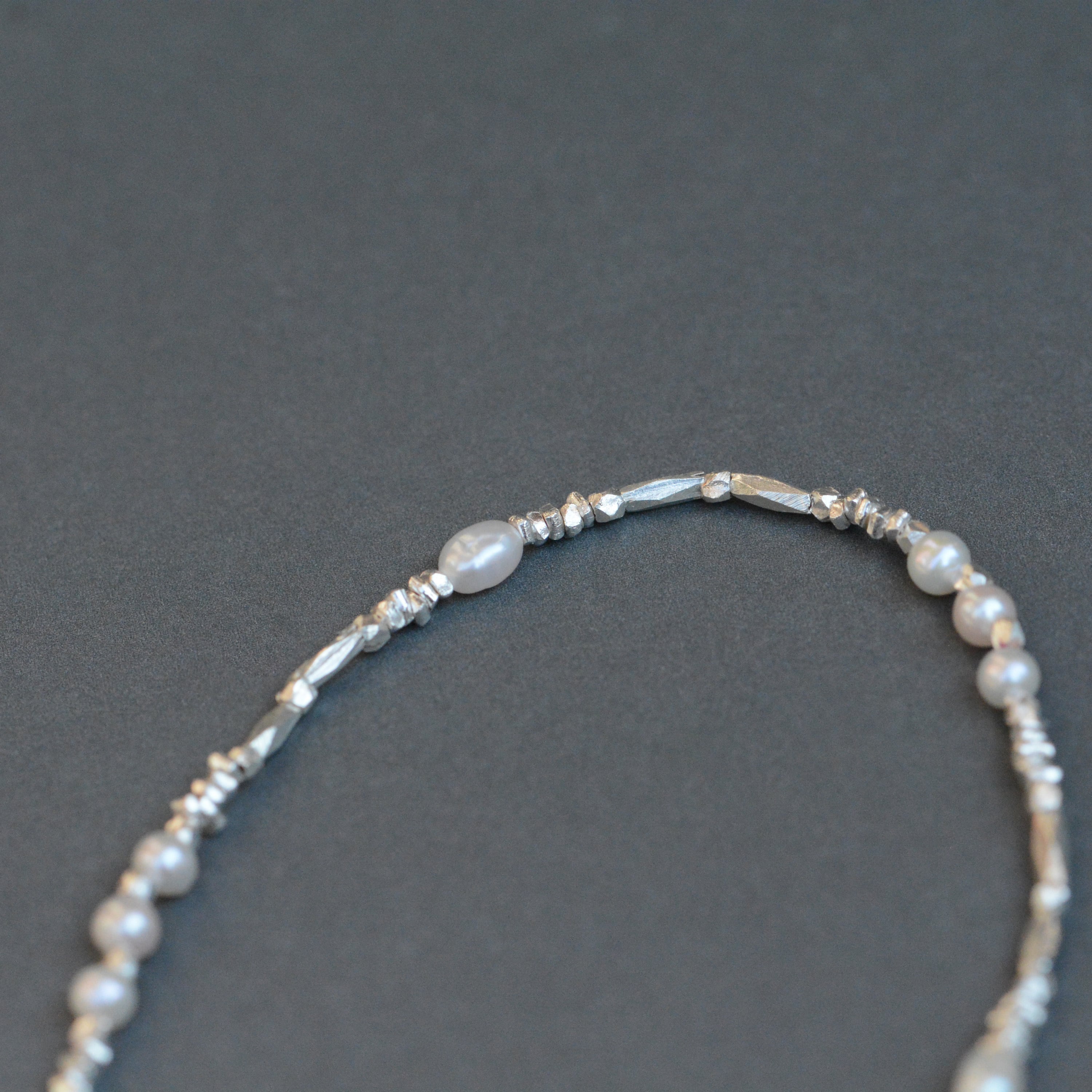 3種類のシルバービーズとサイズの異なるビーズ(パール)を組み合わせたブレスレット。