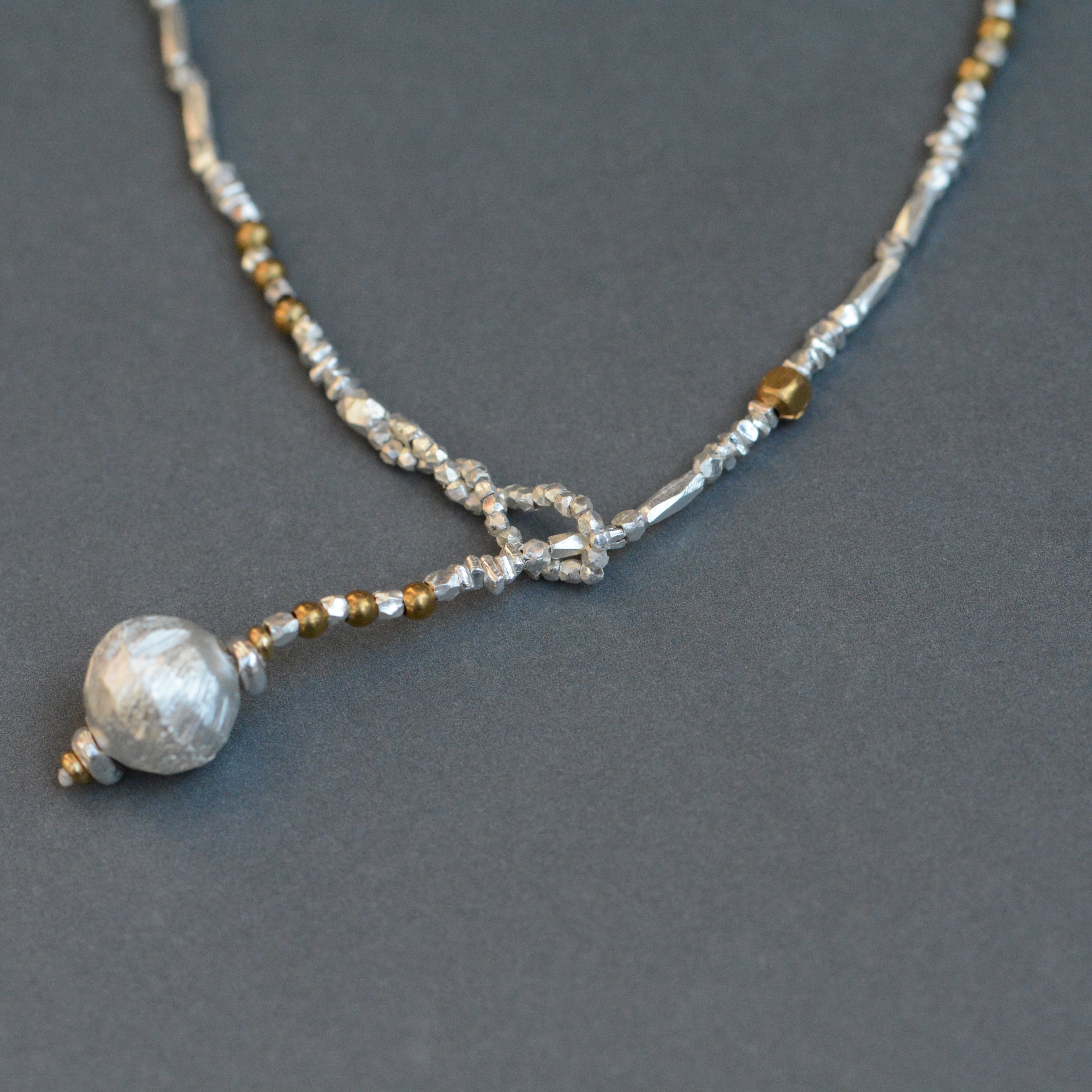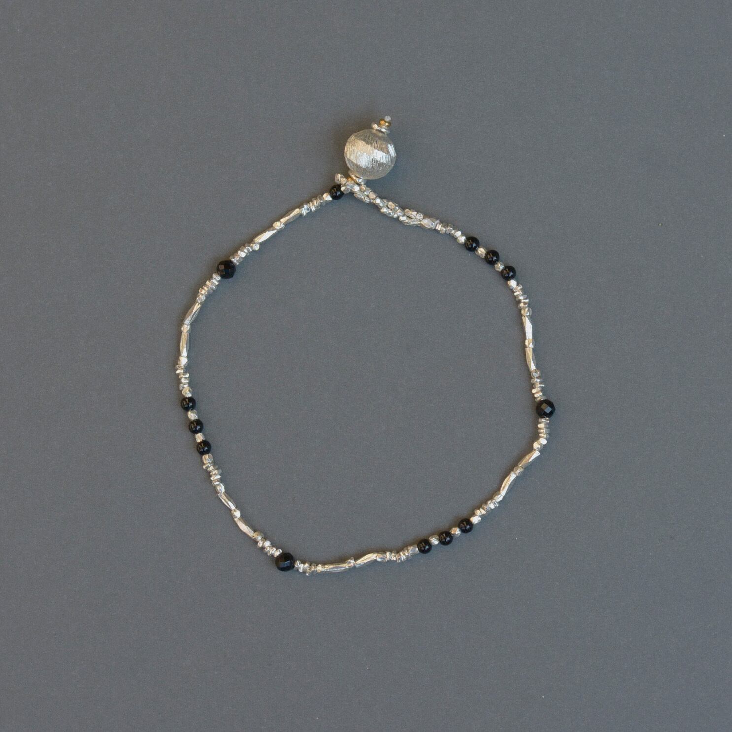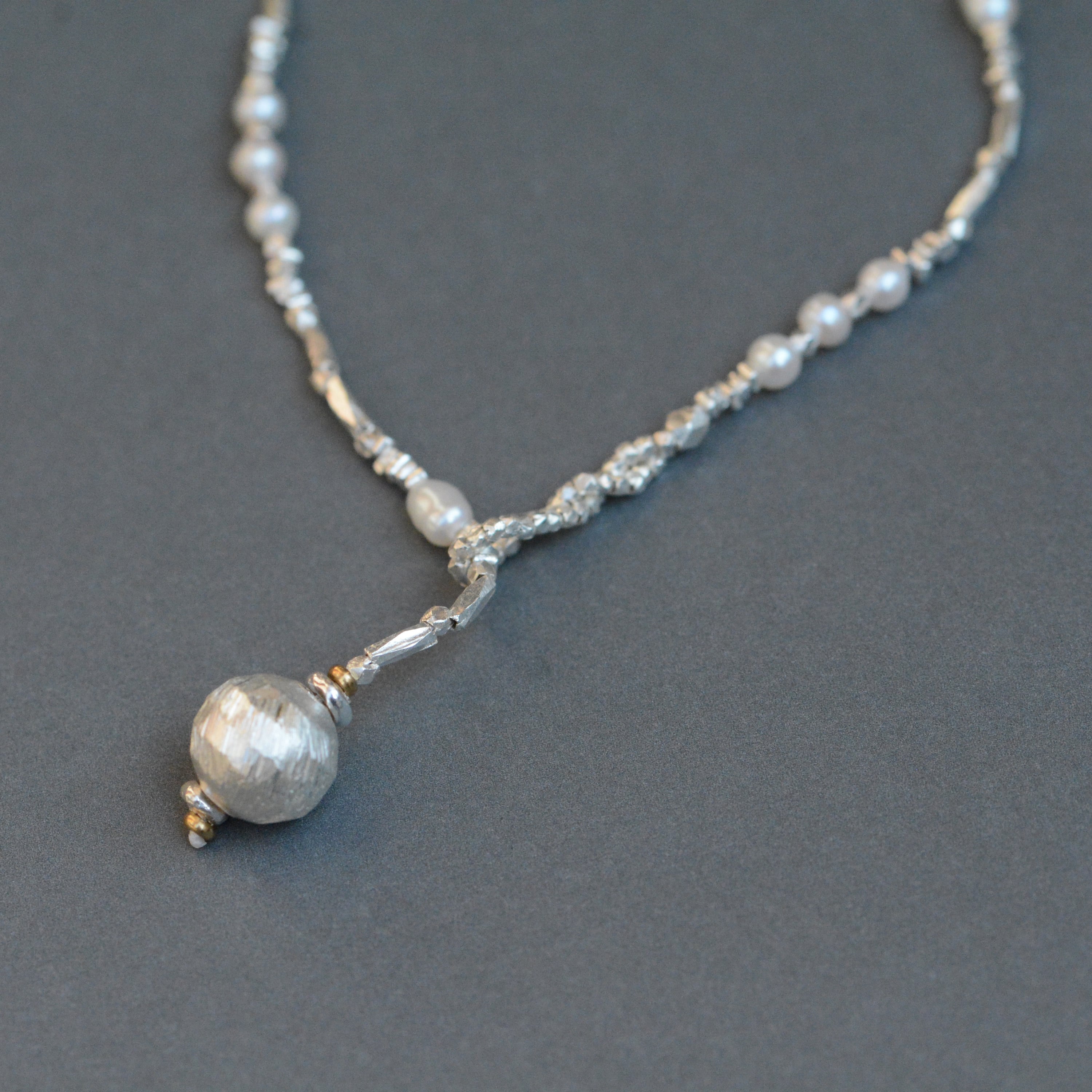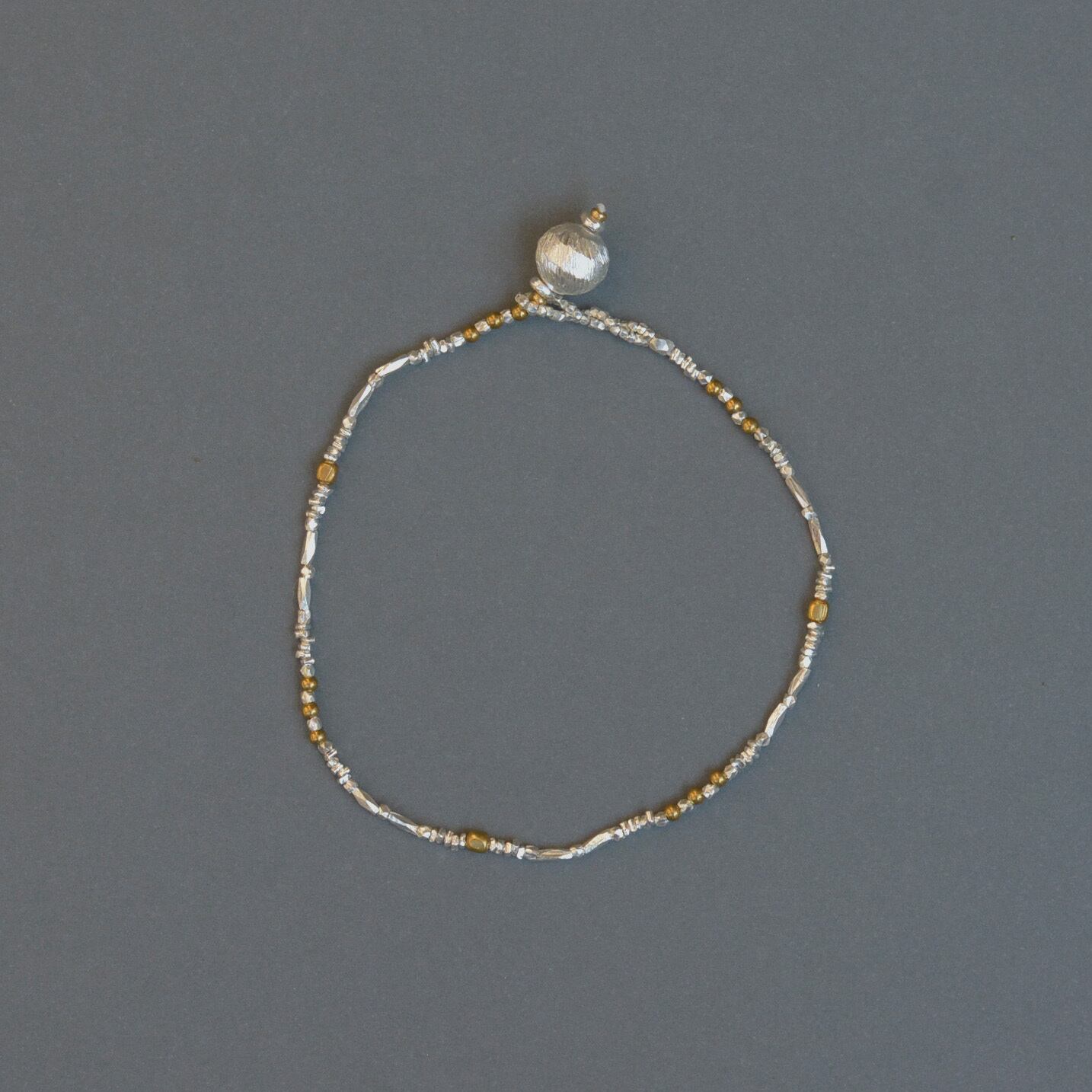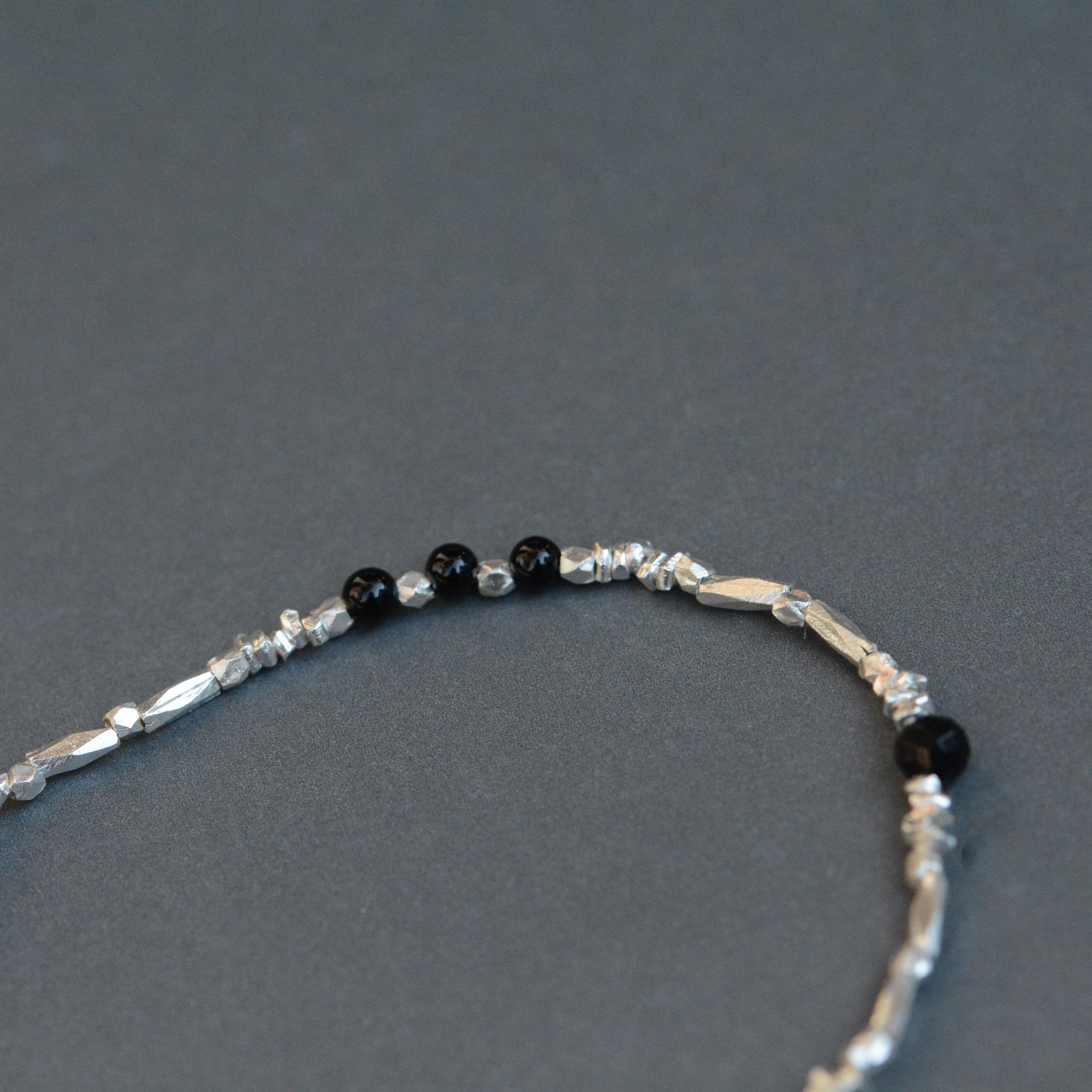 3種類のシルバービーズとサイズの異なるビーズ(パール)を組み合わせたブレスレット。