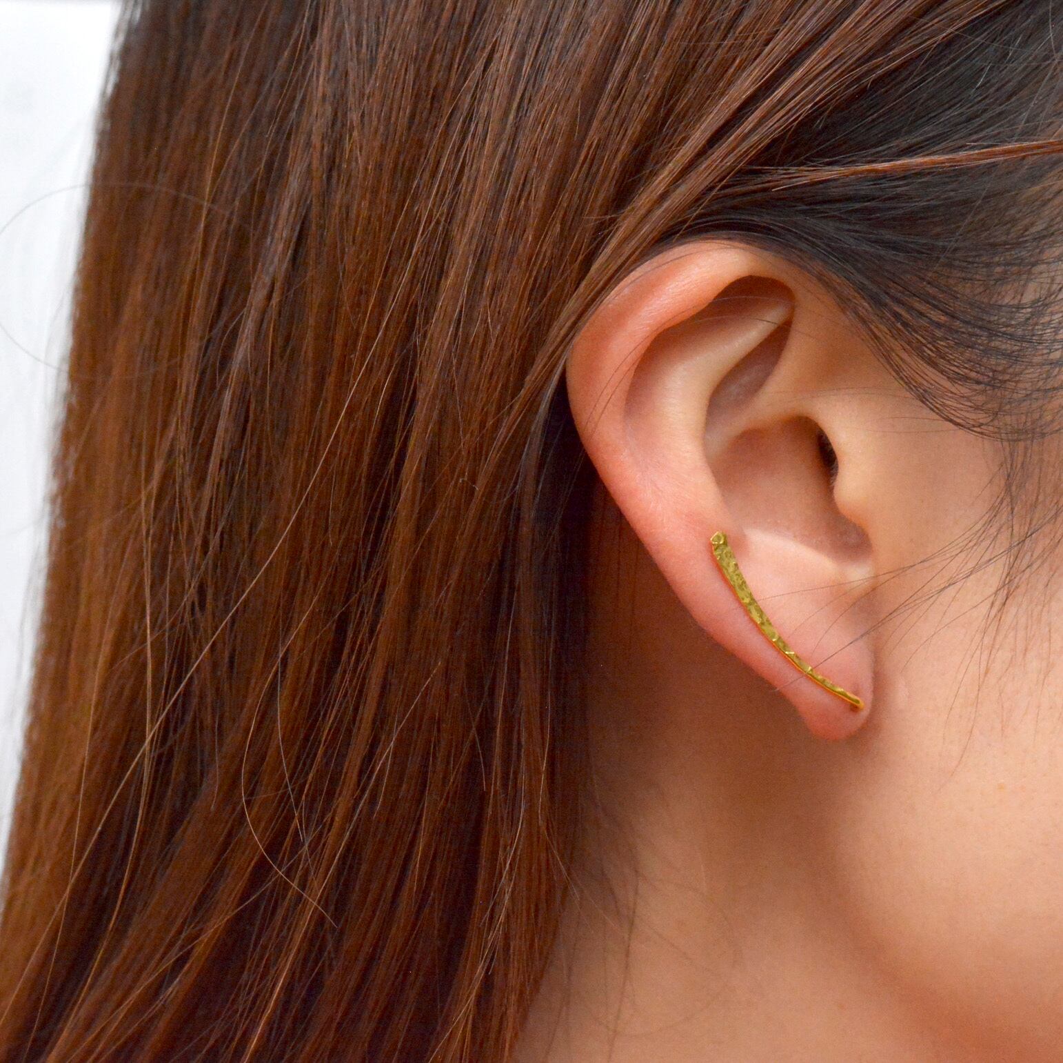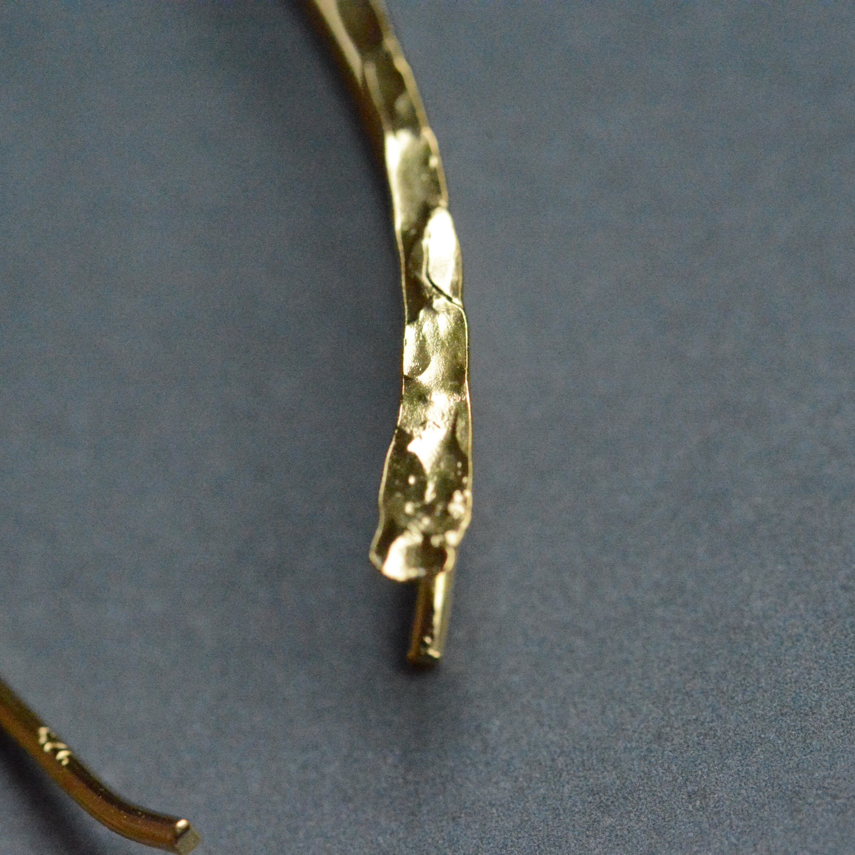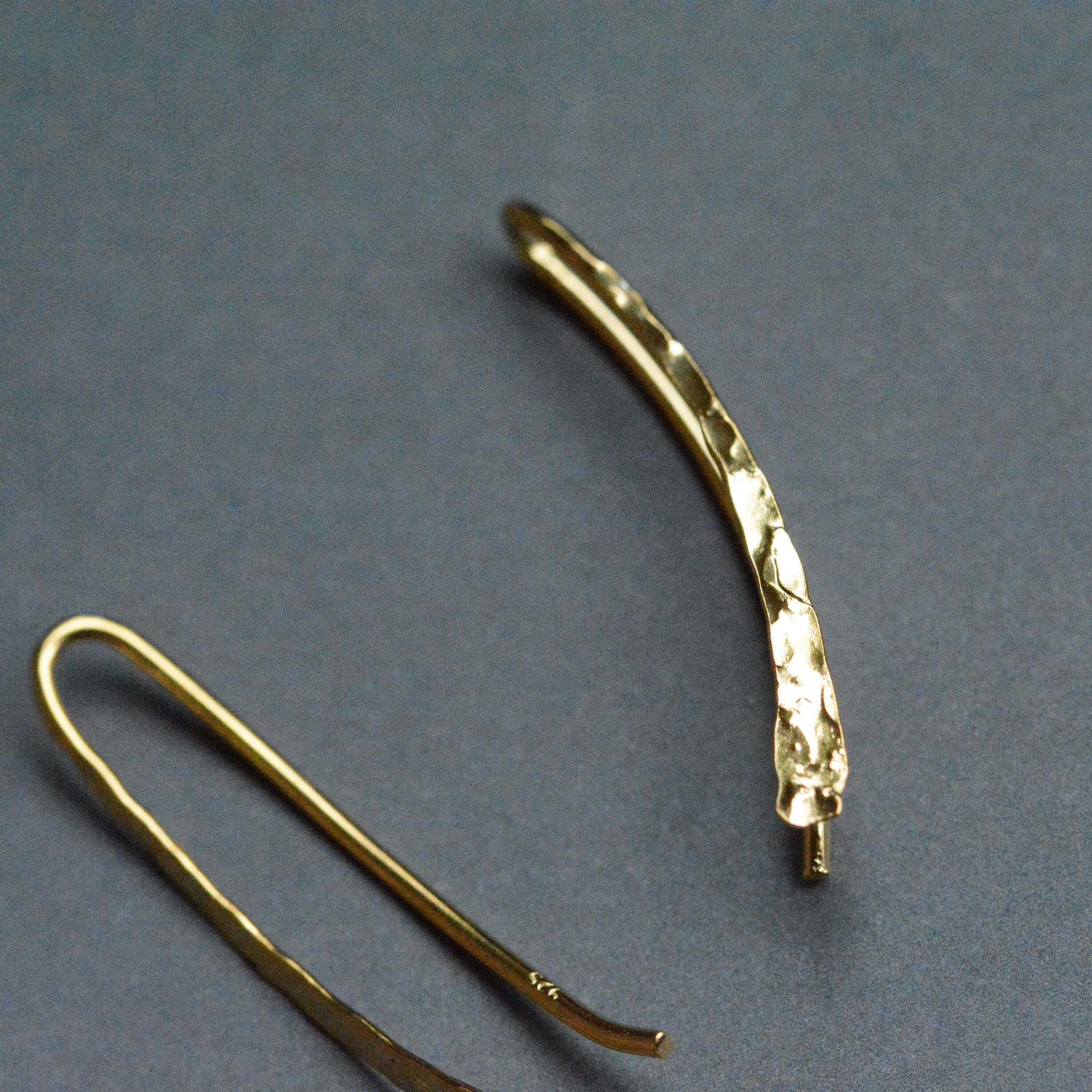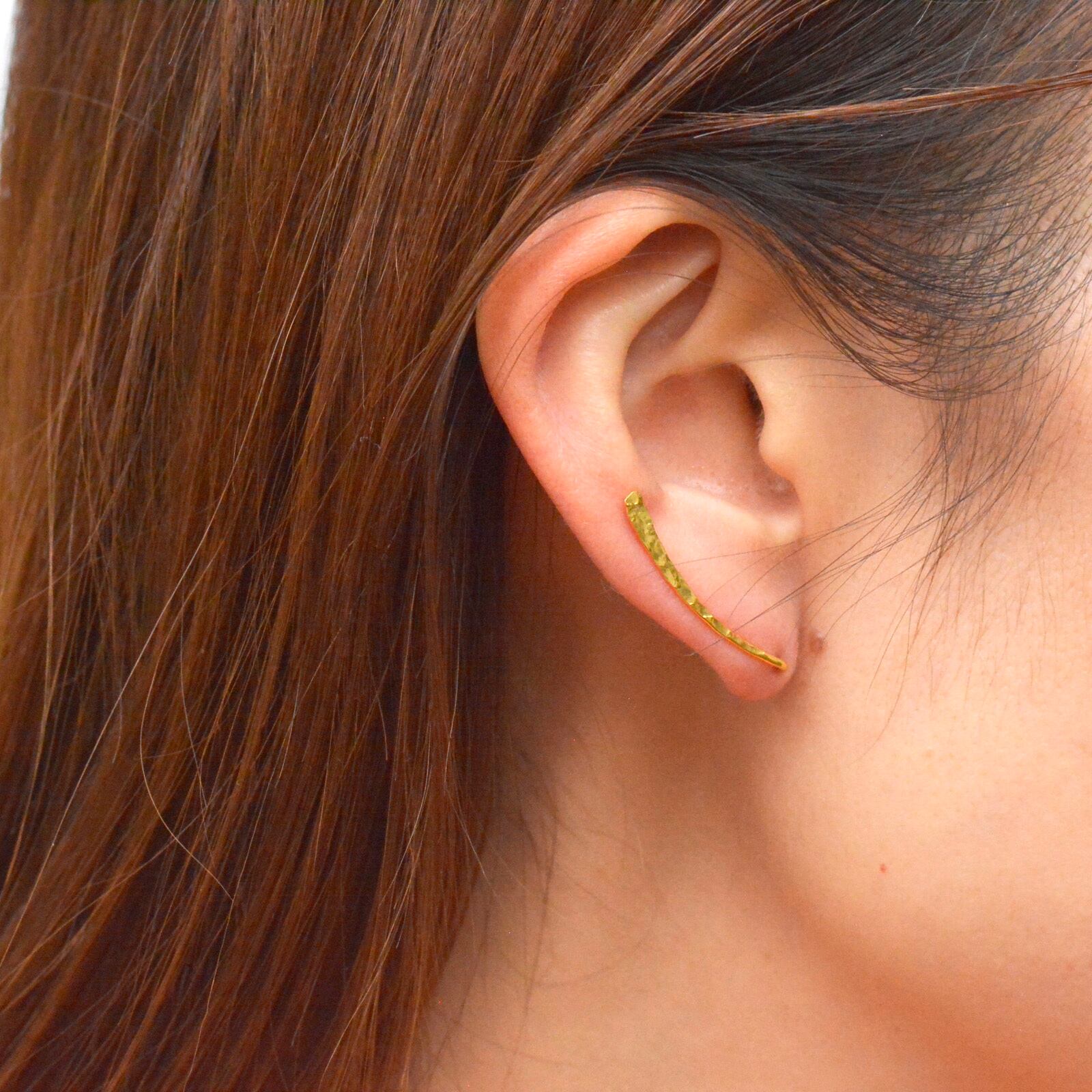 耳に沿うように着用するピアス。 槌目加工を施した表面がさりげなく輝きを放ちます。 軽やかな着用感とシンプルなデザインでさりげないオシャレにおすすめです。 size:約3cm material:silver,18K gold plt