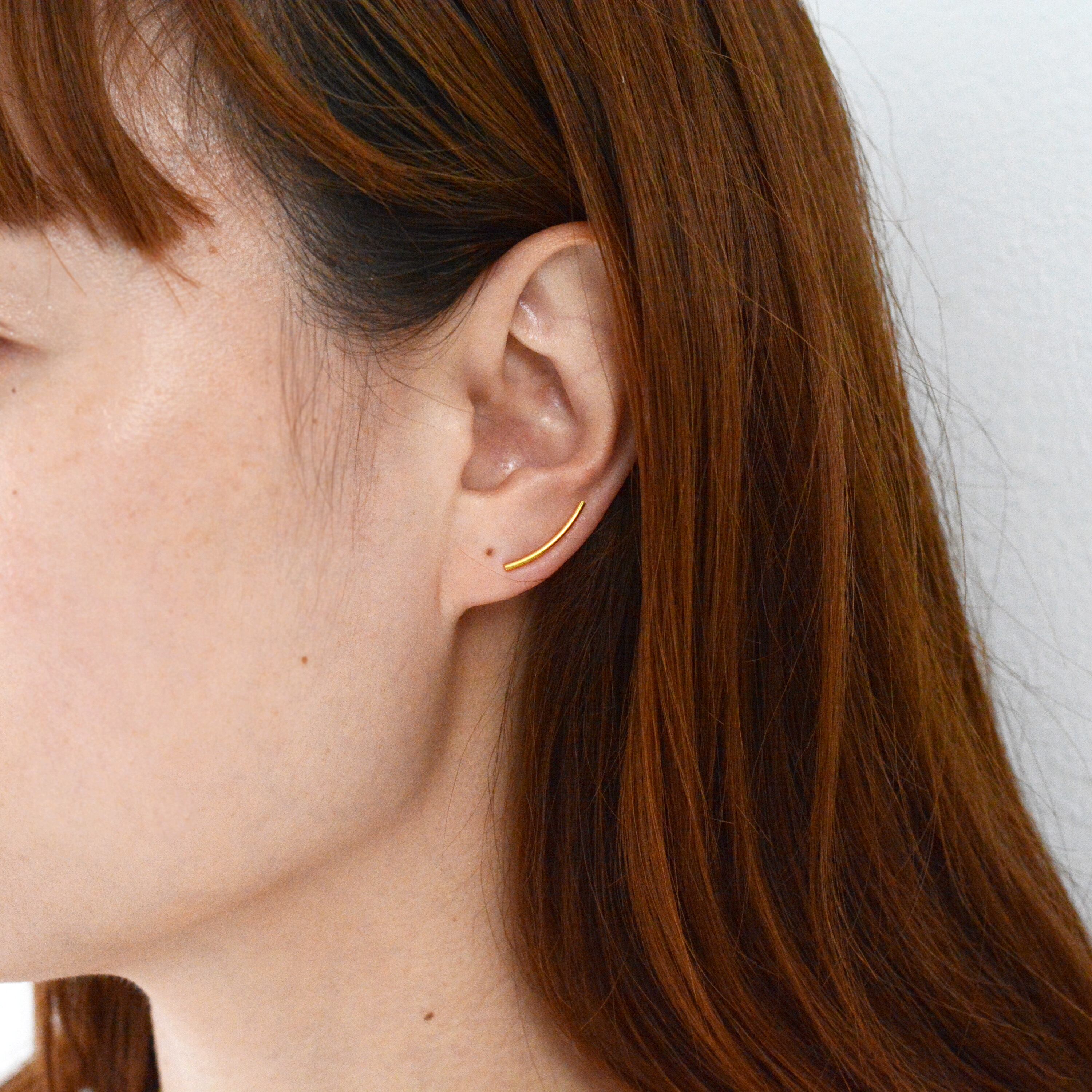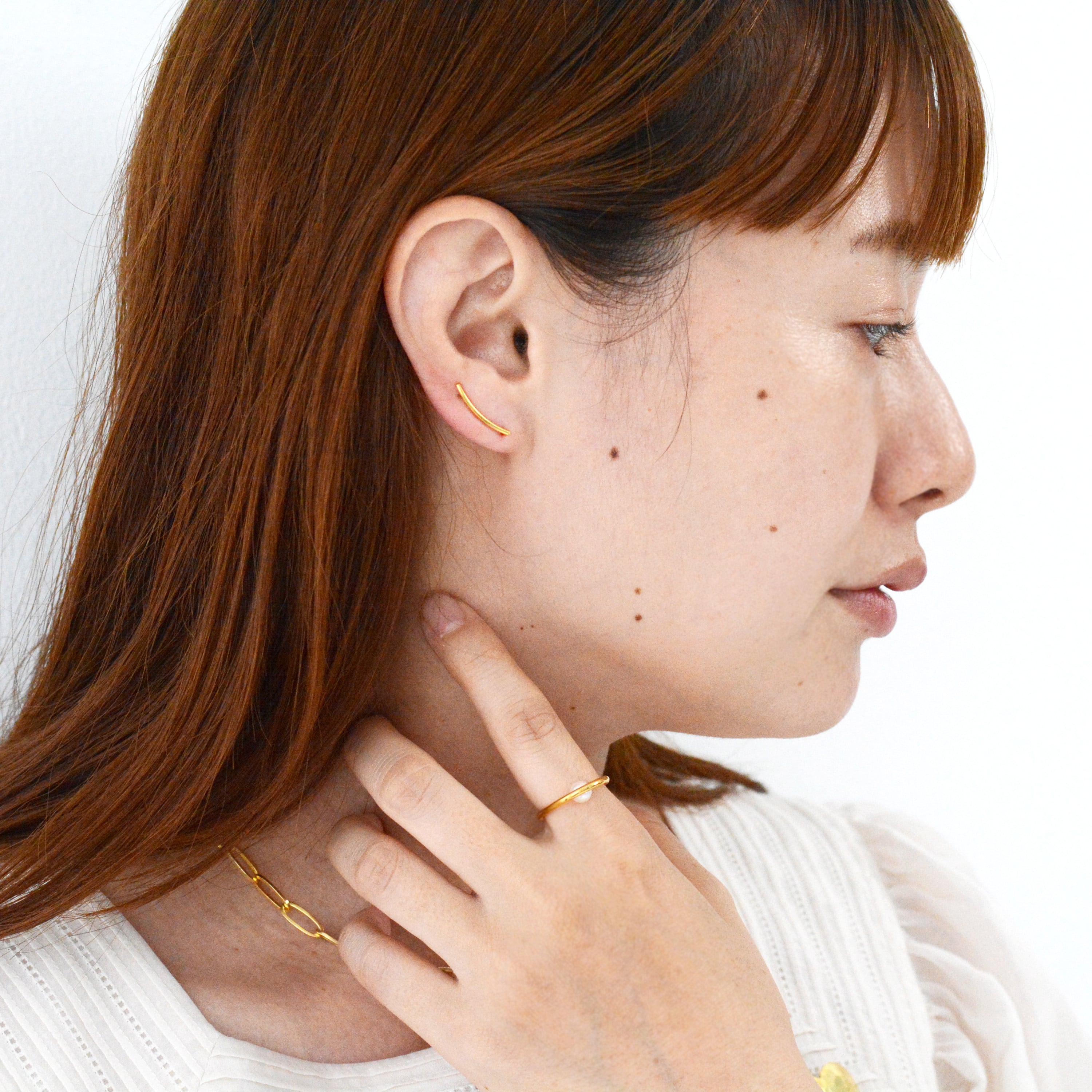 やわらかく弧を描くラインが特徴のピアス。 ミニマルなデザインながらもさりげない存在感があり、どんなコーディネートにも合わせやすいです。 デイリーにもオフィスにも使える万能アイテムです。 size:約18mm material:silver,18K gold plt