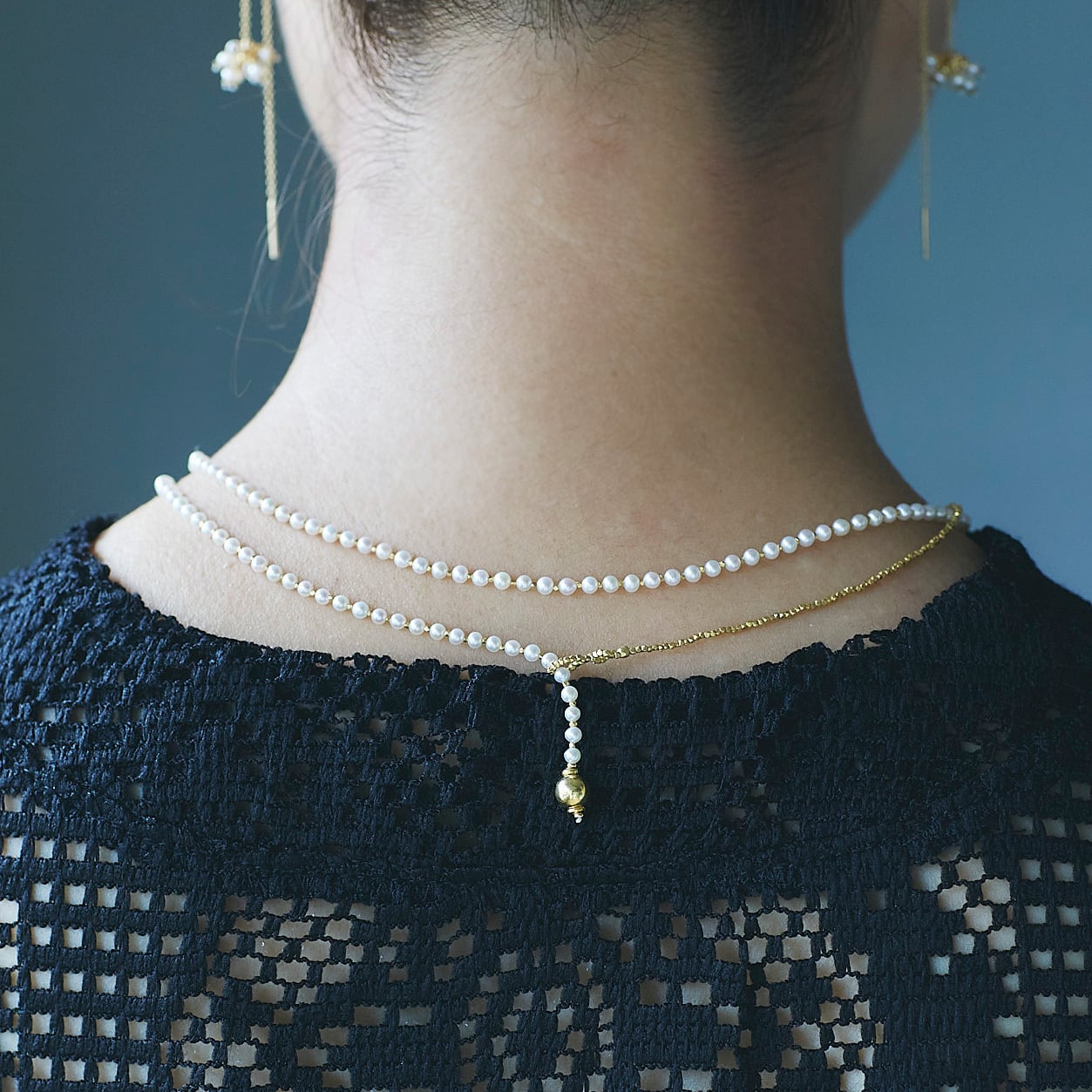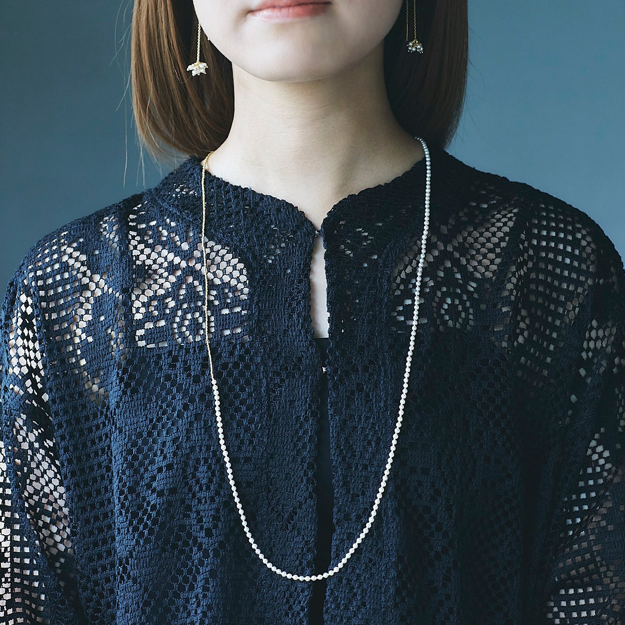 重ね付けにもバランスいいサイズ感で、90cmのロングネックレスは