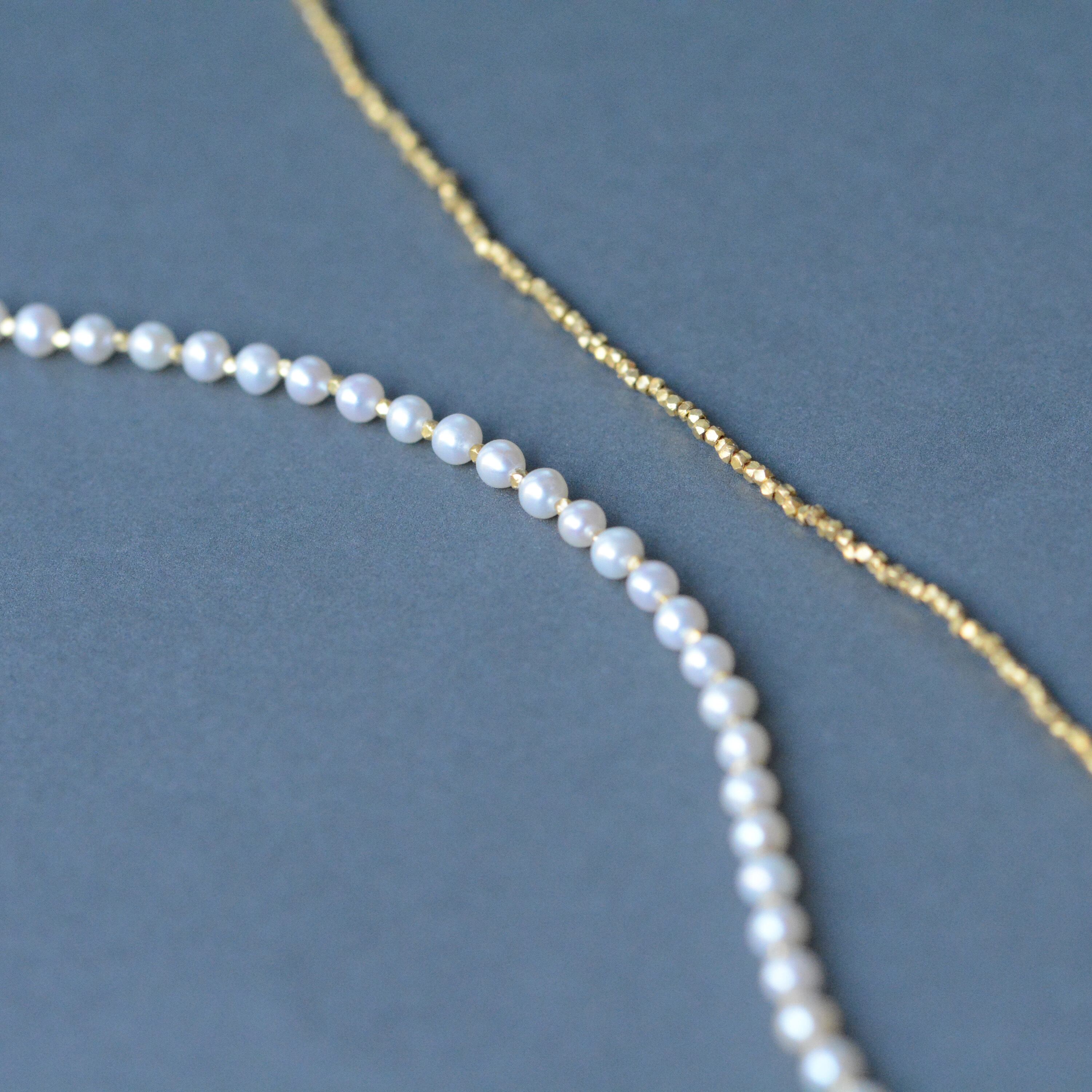 極小パールとシルバービーズを交互に組み合わせたデザイン。