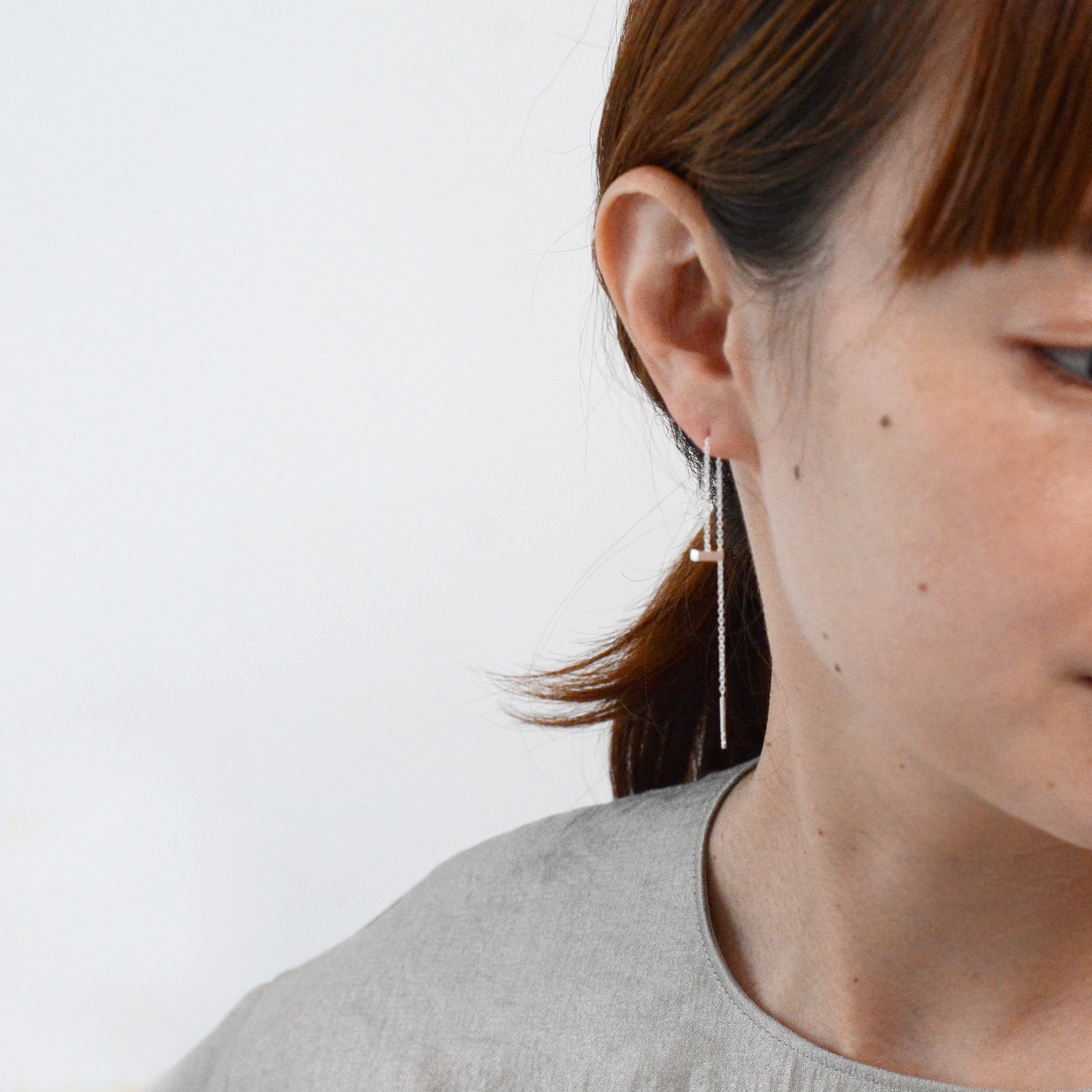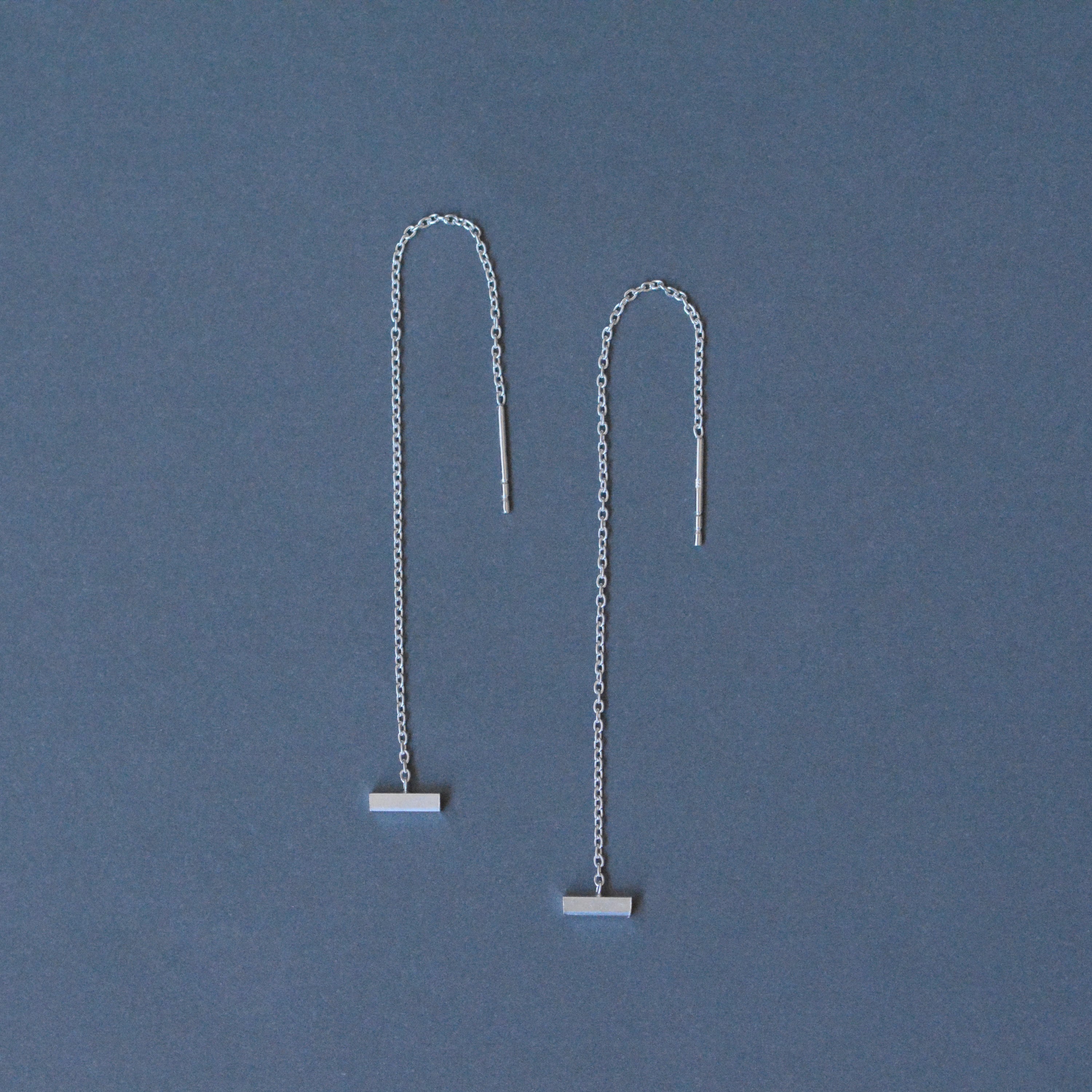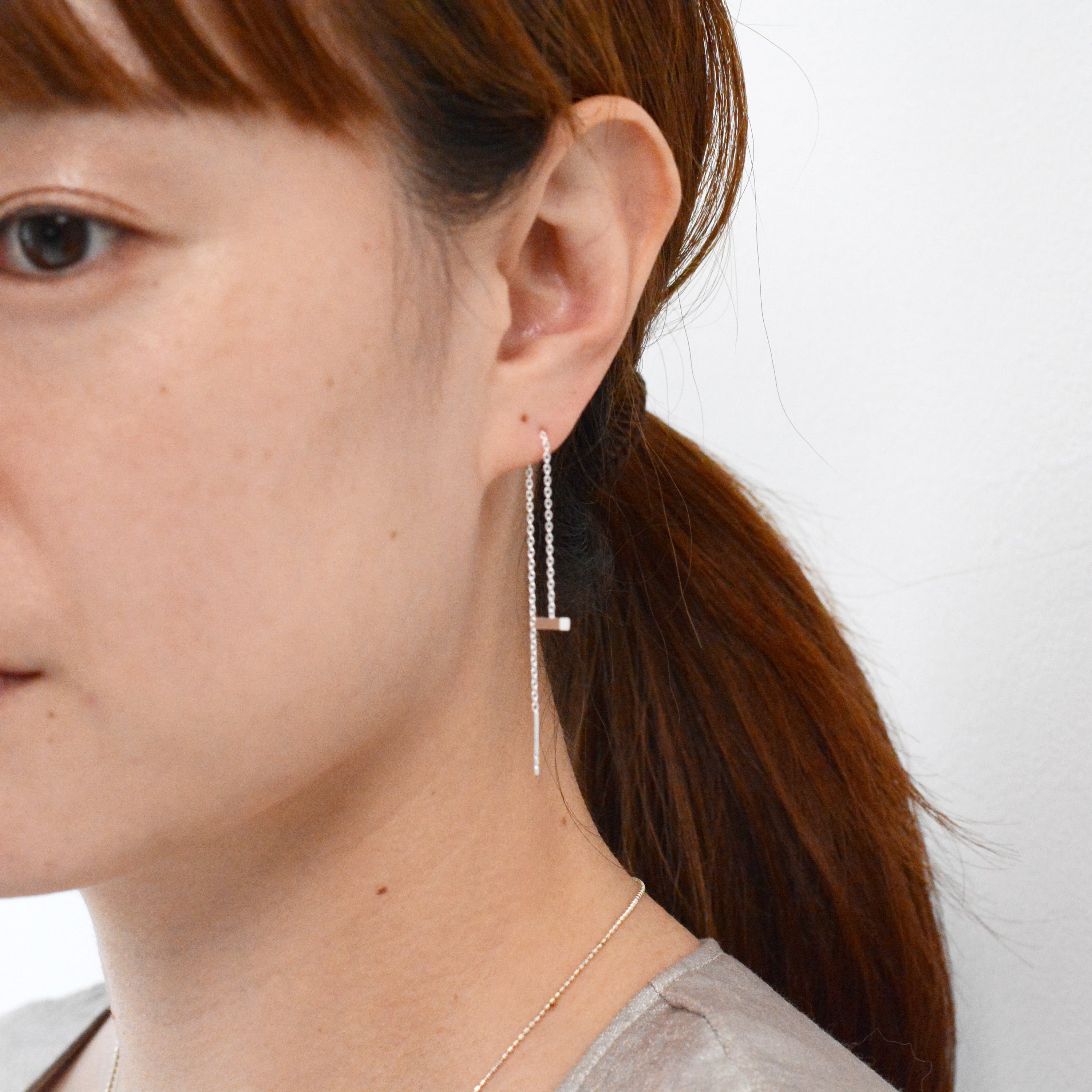 細く繊細なチェーンに、小ぶりのバーモチーフをあしらったピアス。 軽やかな付け心地で、シーンを選ばずお使いいただけます。 チェーンを通す長さを調節できるので、 その日の気分に合わせてお楽しみください。 size:約100mm モチーフsize:7mm×1.5mm material:silver