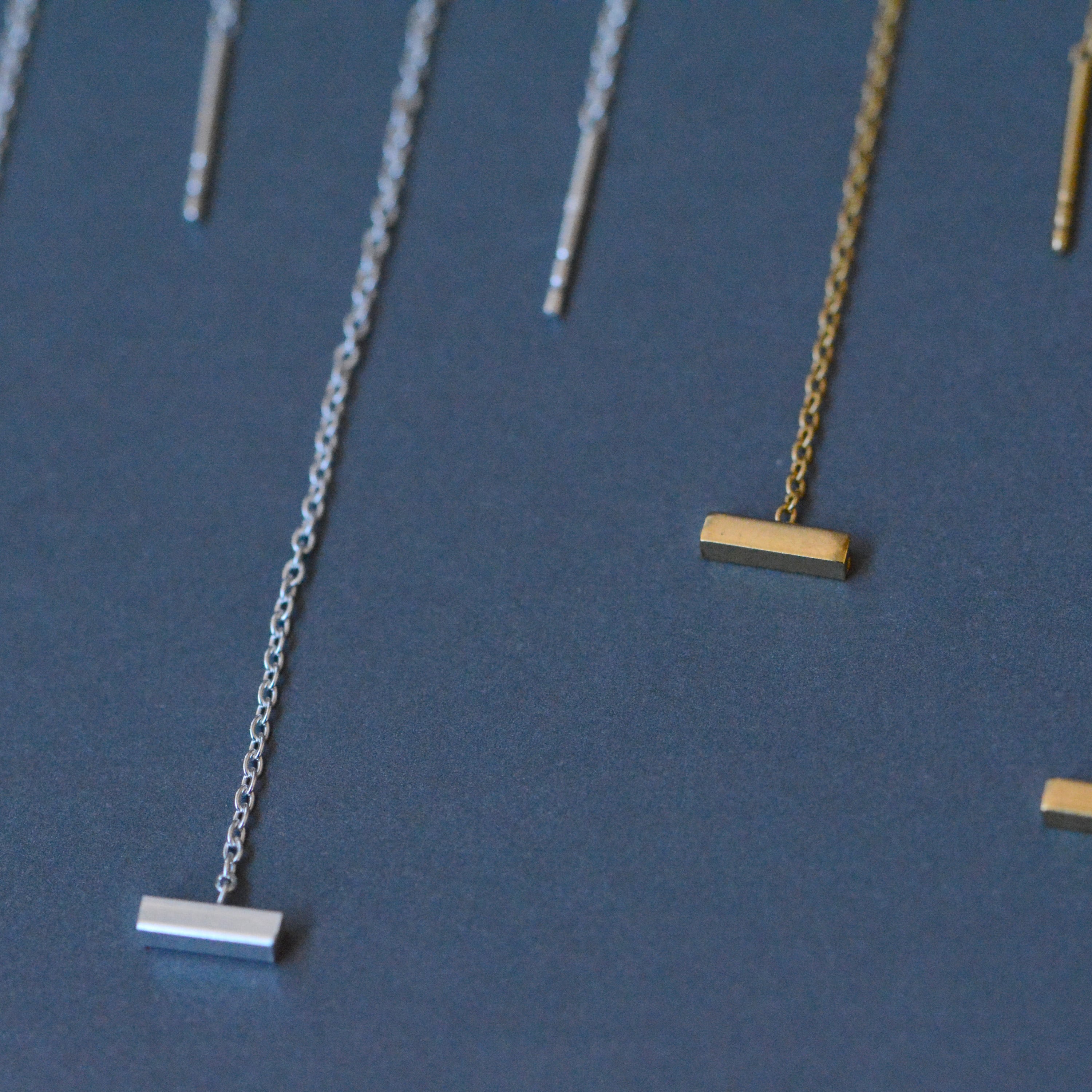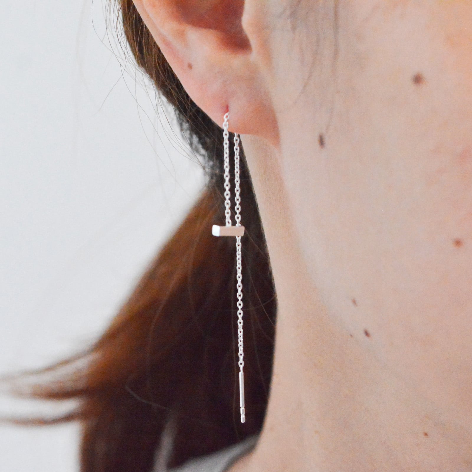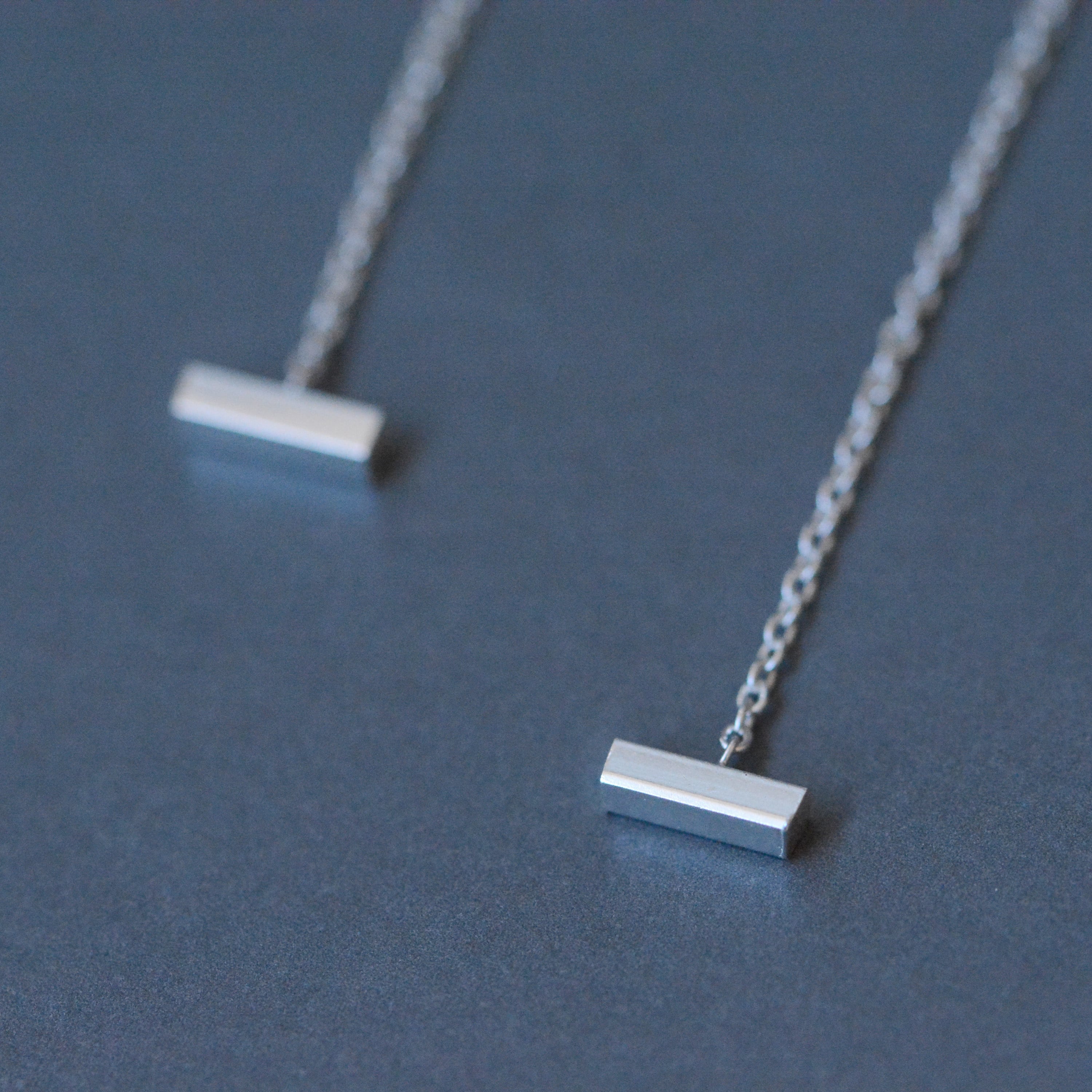 細く繊細なチェーンに、小ぶりのバーモチーフをあしらったピアス。 軽やかな付け心地で、シーンを選ばずお使いいただけます。 チェーンを通す長さを調節できるので、 その日の気分に合わせてお楽しみください。 size:約100mm モチーフsize:7mm×1.5mm material:silver