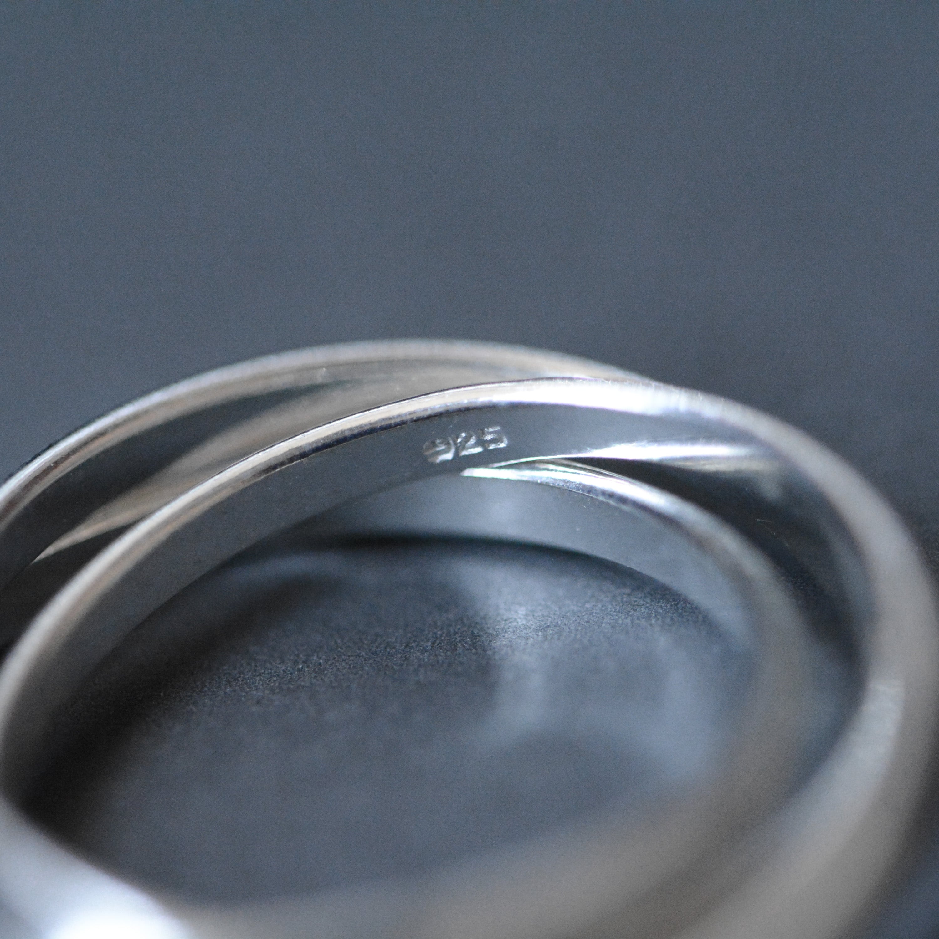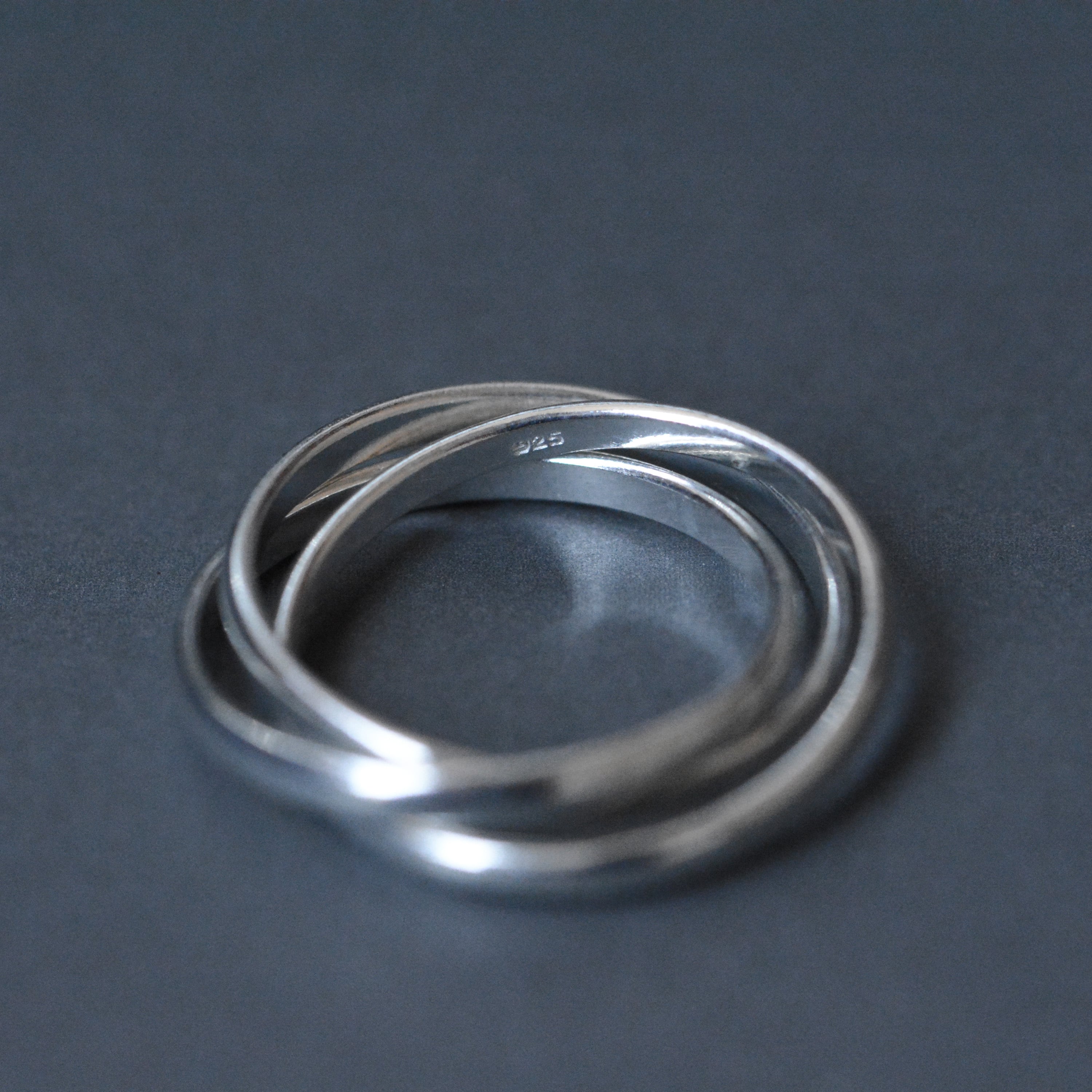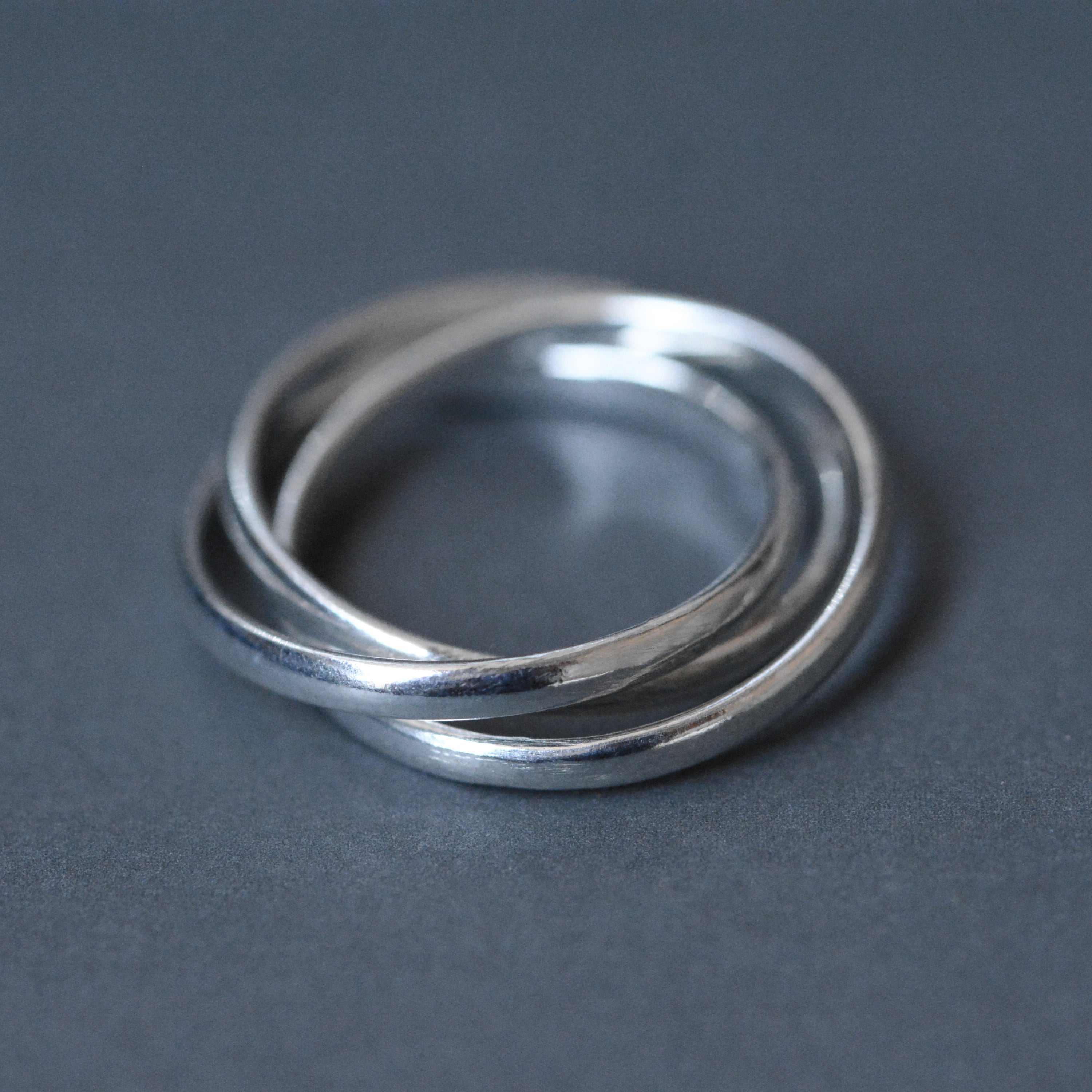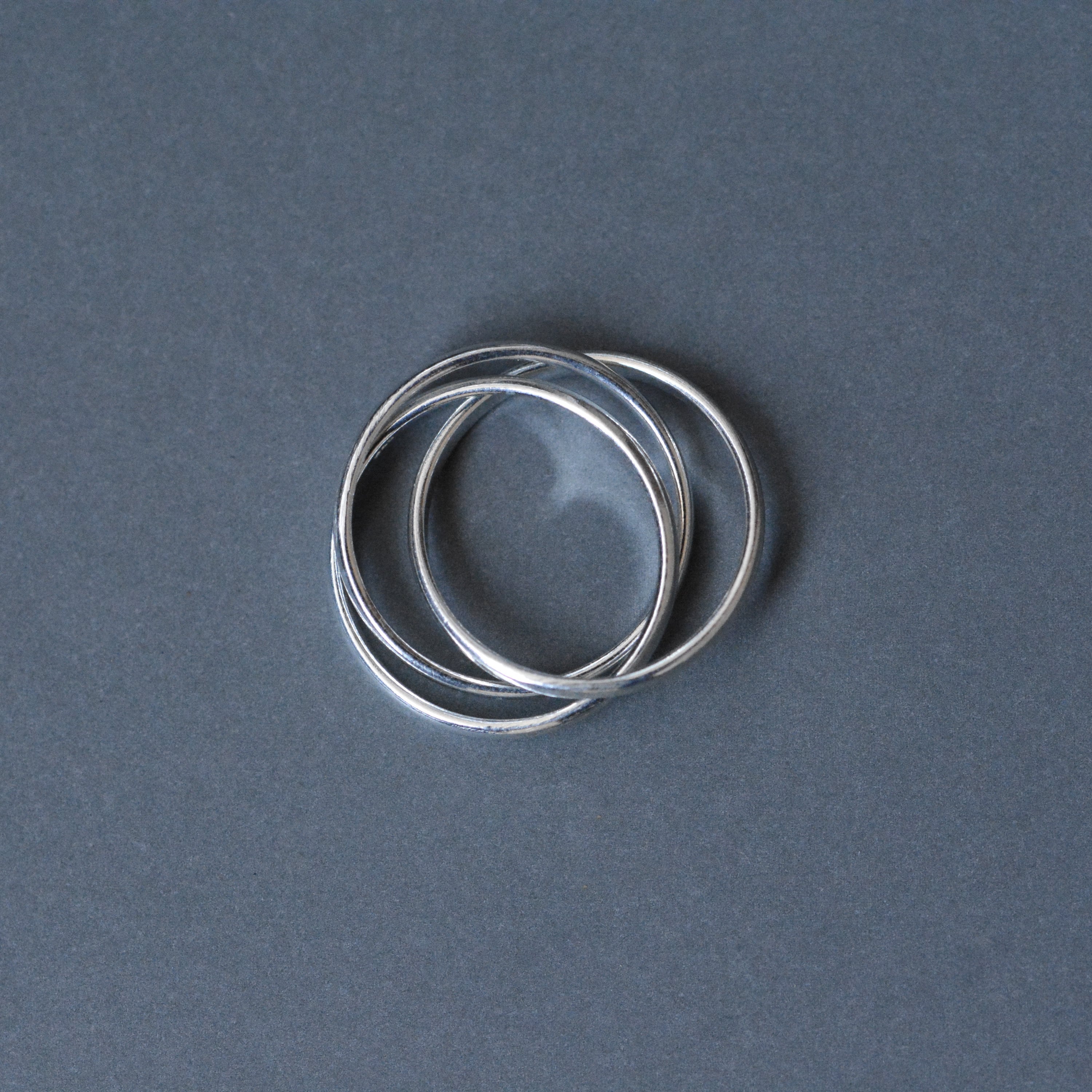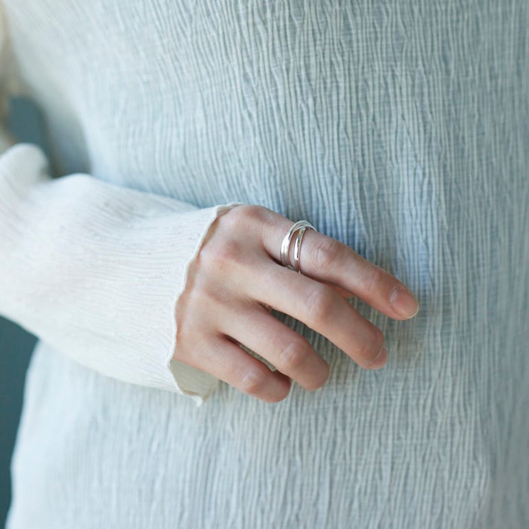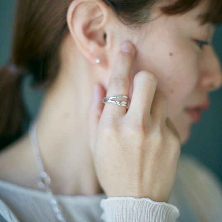 3つのリングが連なったリング。 曲線が重なり合い、静かな存在感があります。 重ね着けをしているような立体感がおすすめです。 size: material:silver