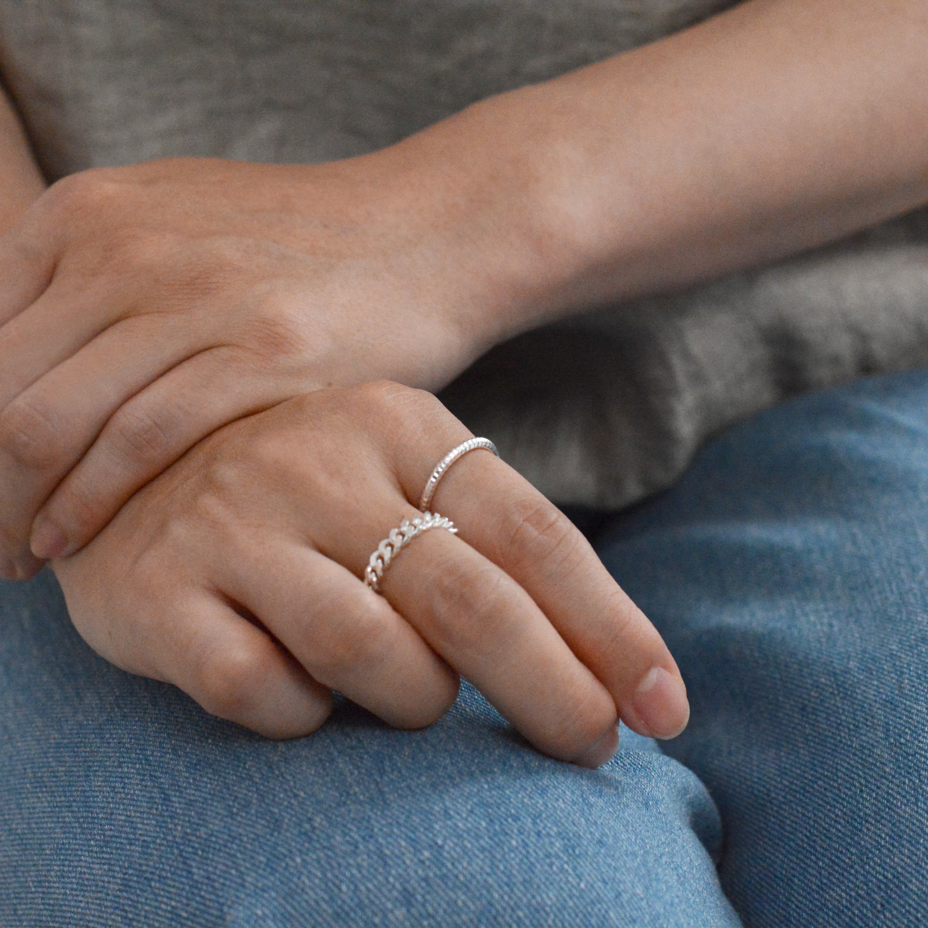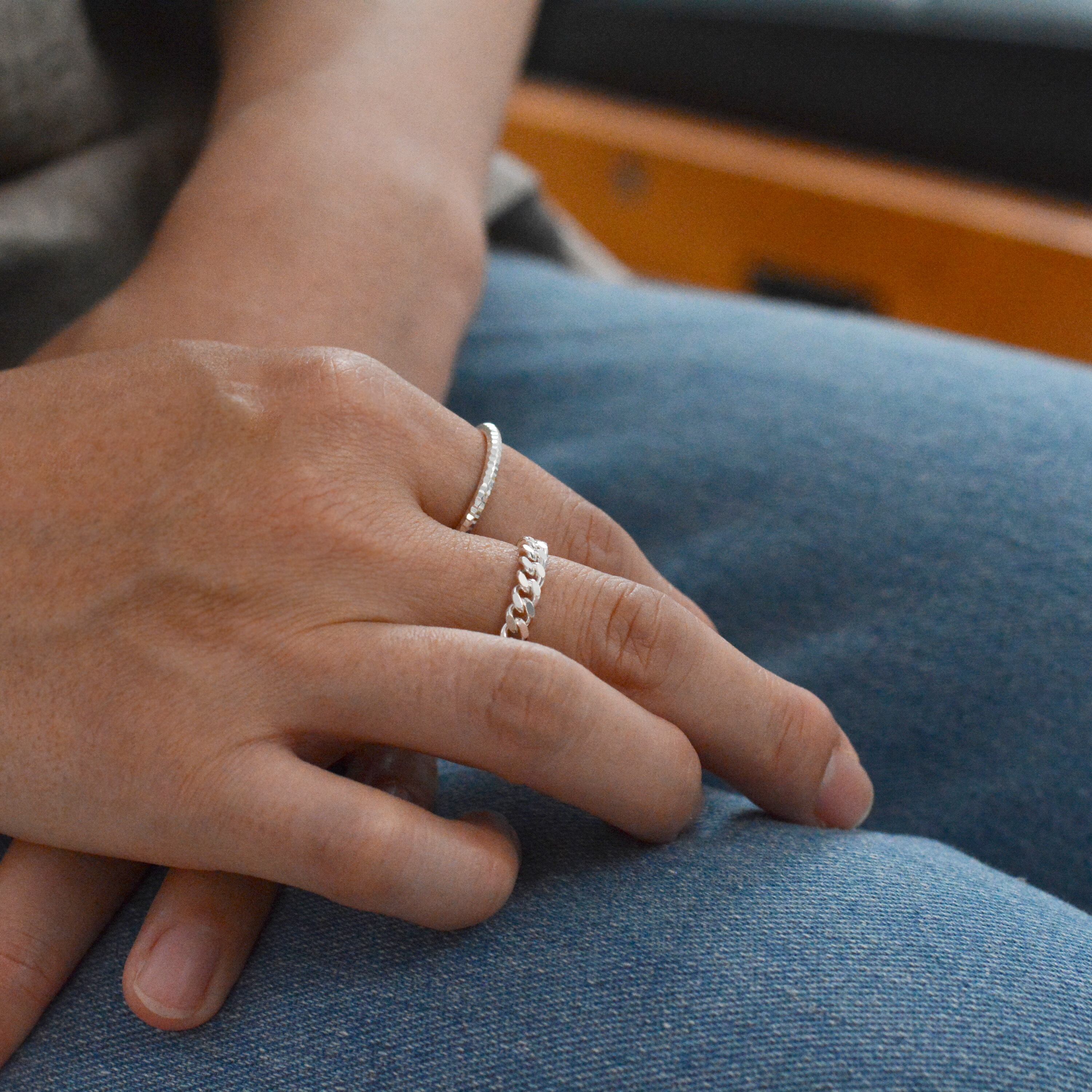 太めのチェーンをぐるりと巻いたリング。 指に添うようにしなやかに光り、日常の装いにそっと寄り添うデザインです。 size:約16,18号(japanese size) material:silver