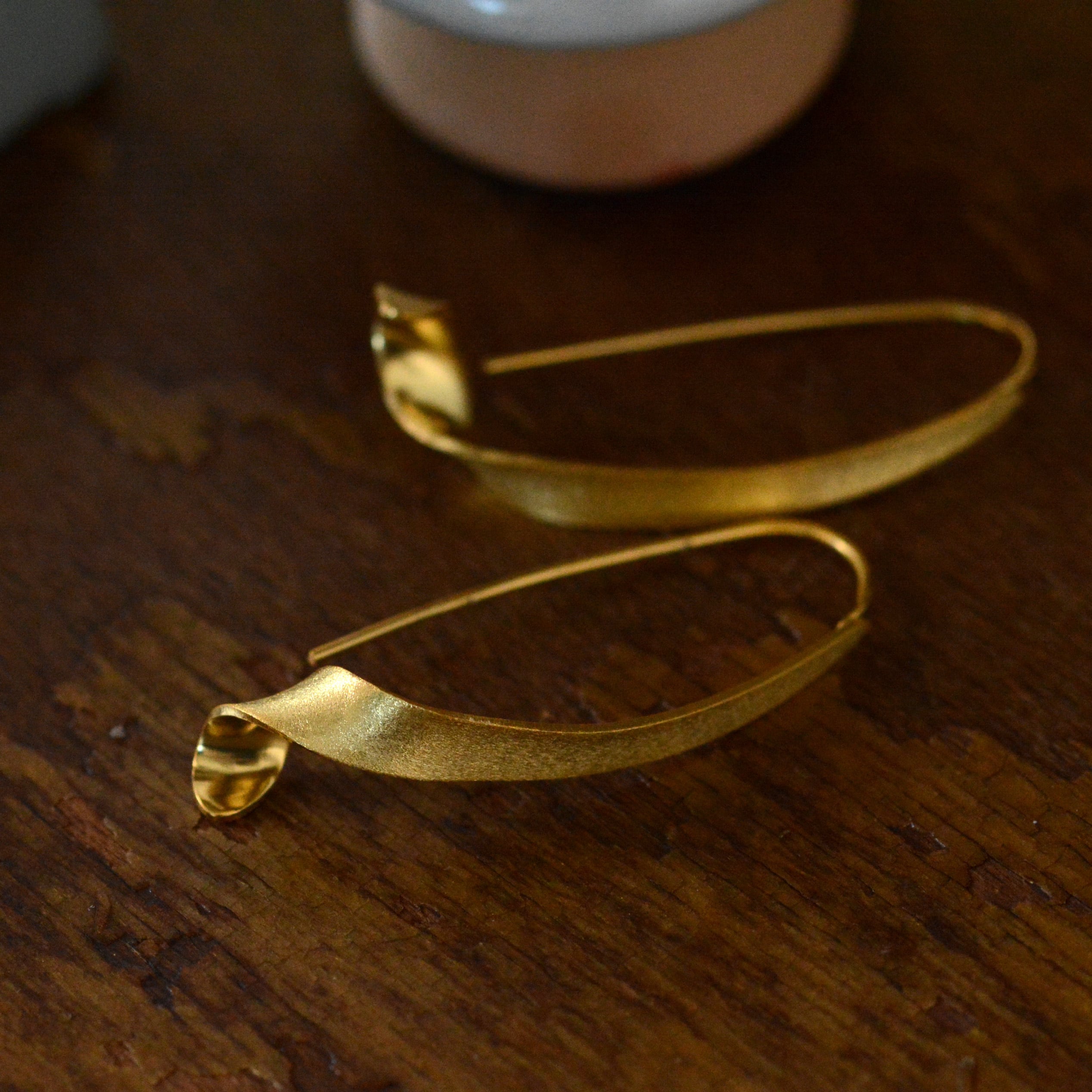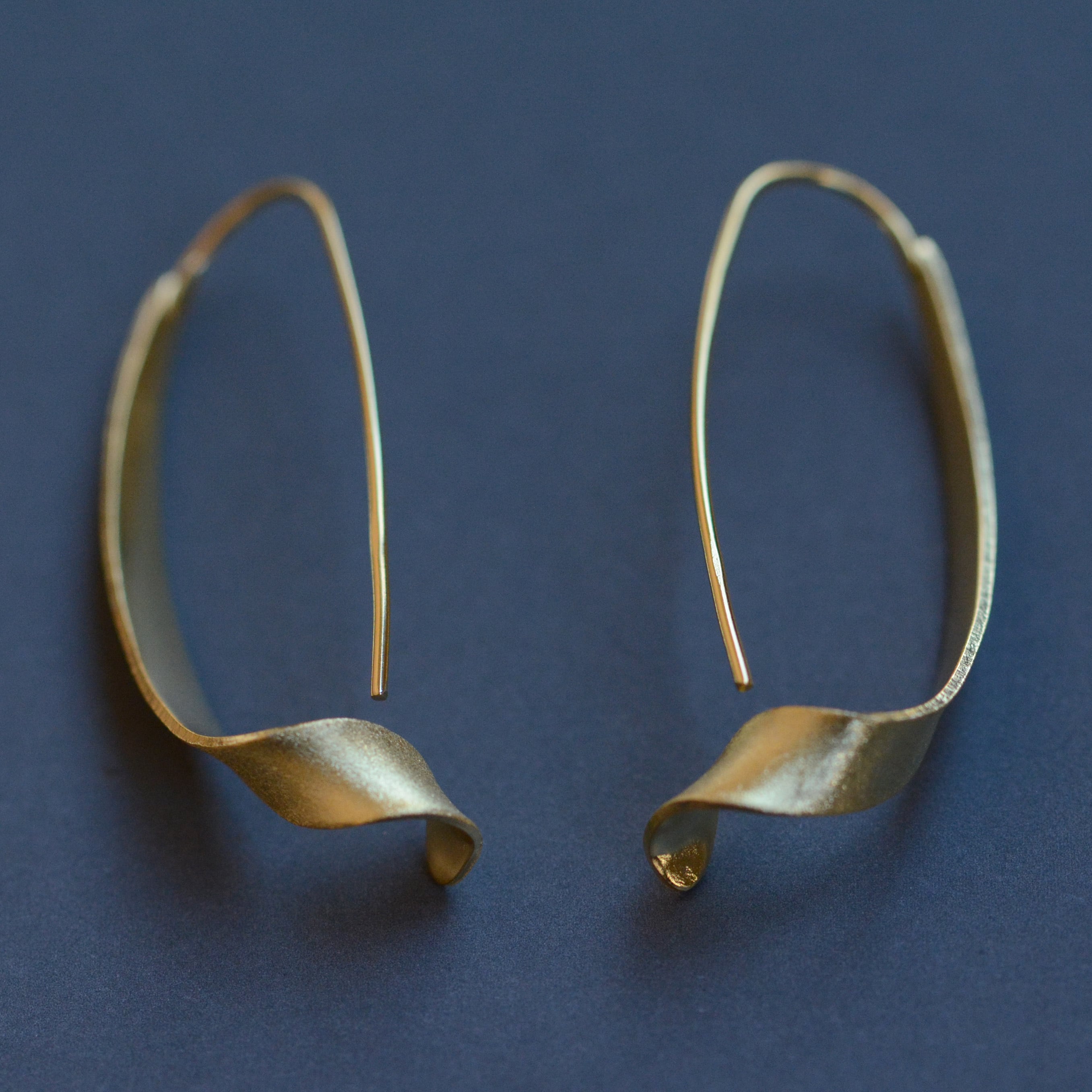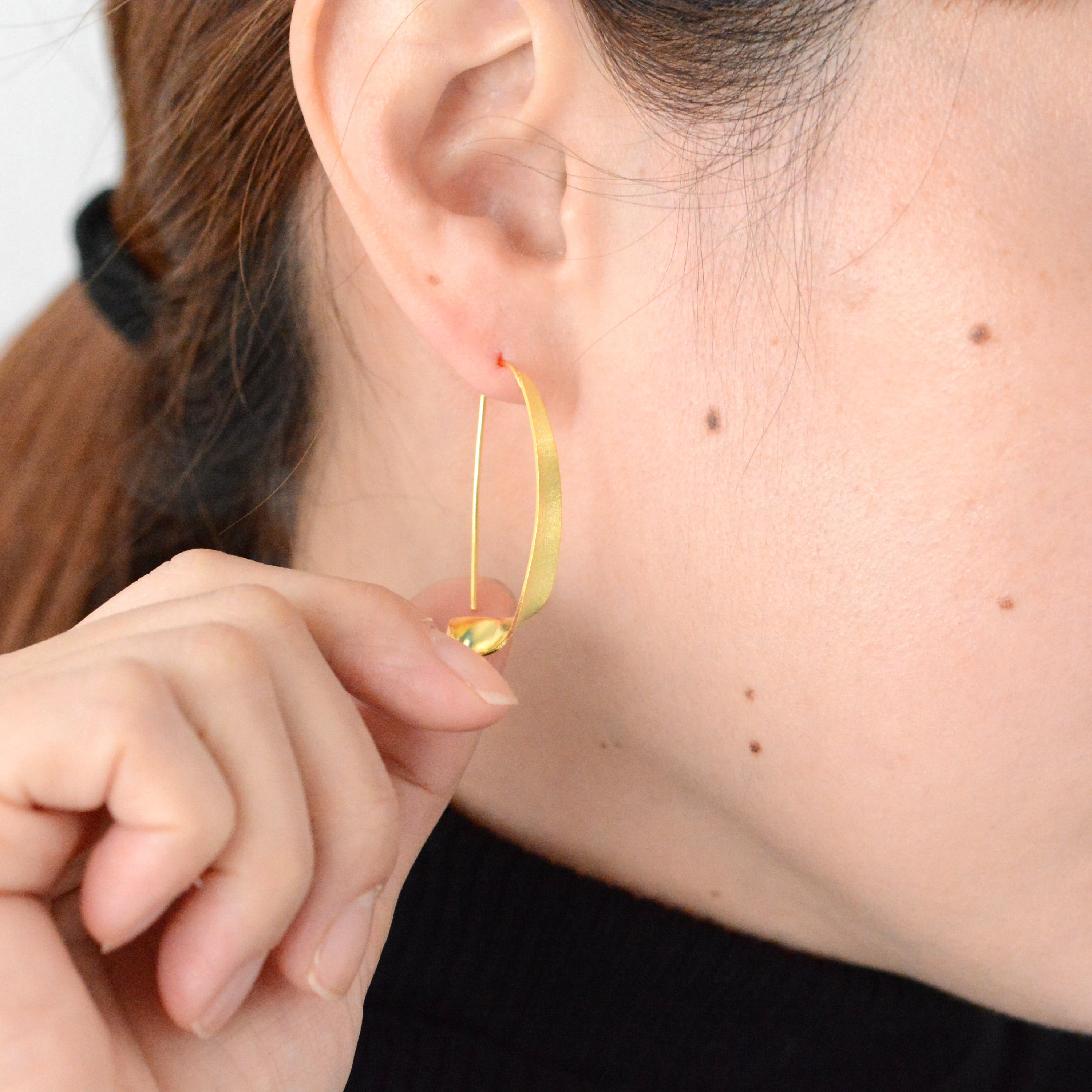 リボンのような軽やかで優雅な曲線を描いたピアス。 マットな質感の柔らかな光沢が、顔周りを上品かつモダンに彩ります。 フックタイプなので着脱しやすく深めフックで落ちにくい。 日常にさりげない華やぎを添える、洗練された大人のためのジュエリーです。 モチーフ全長:約4cm material:silver/gold plt