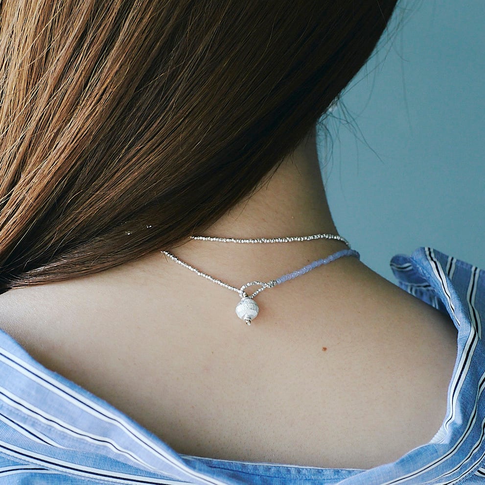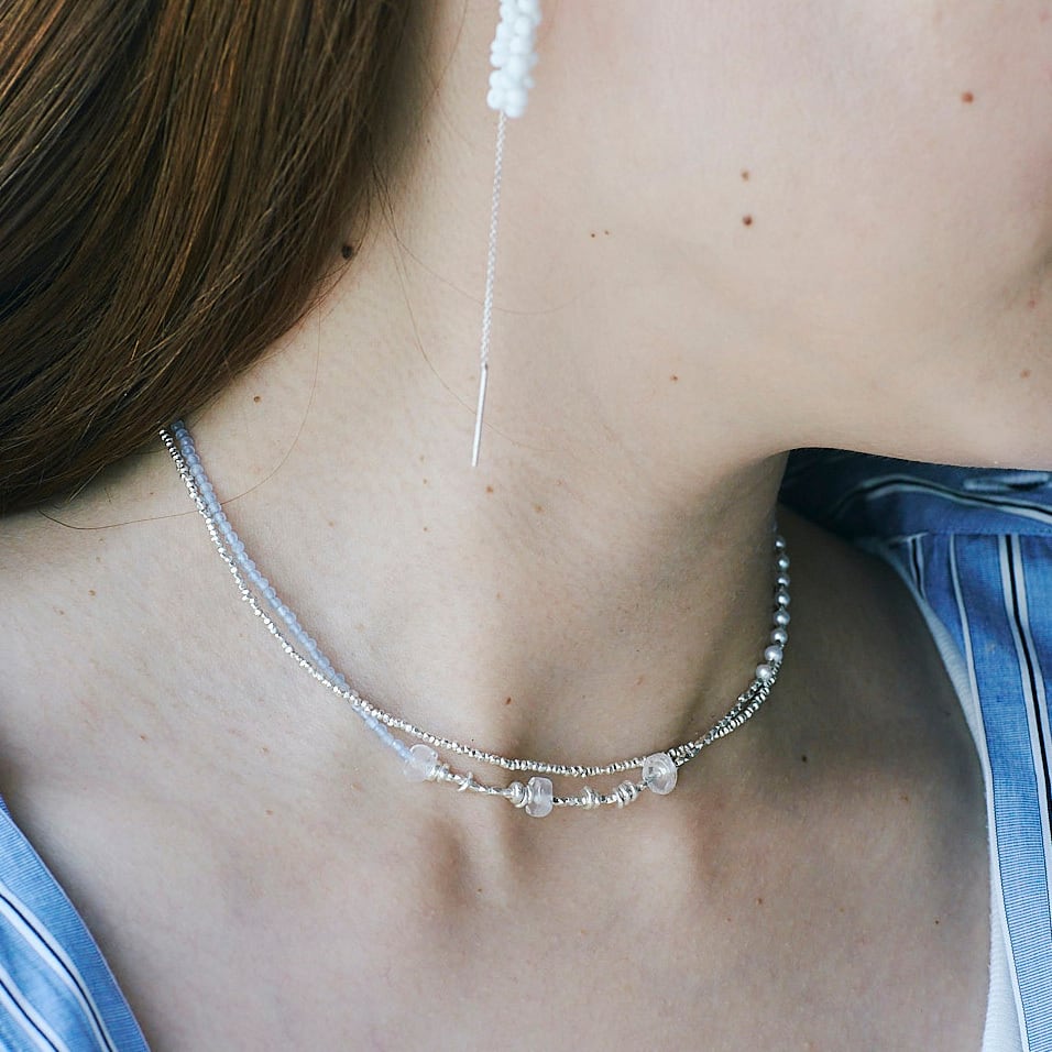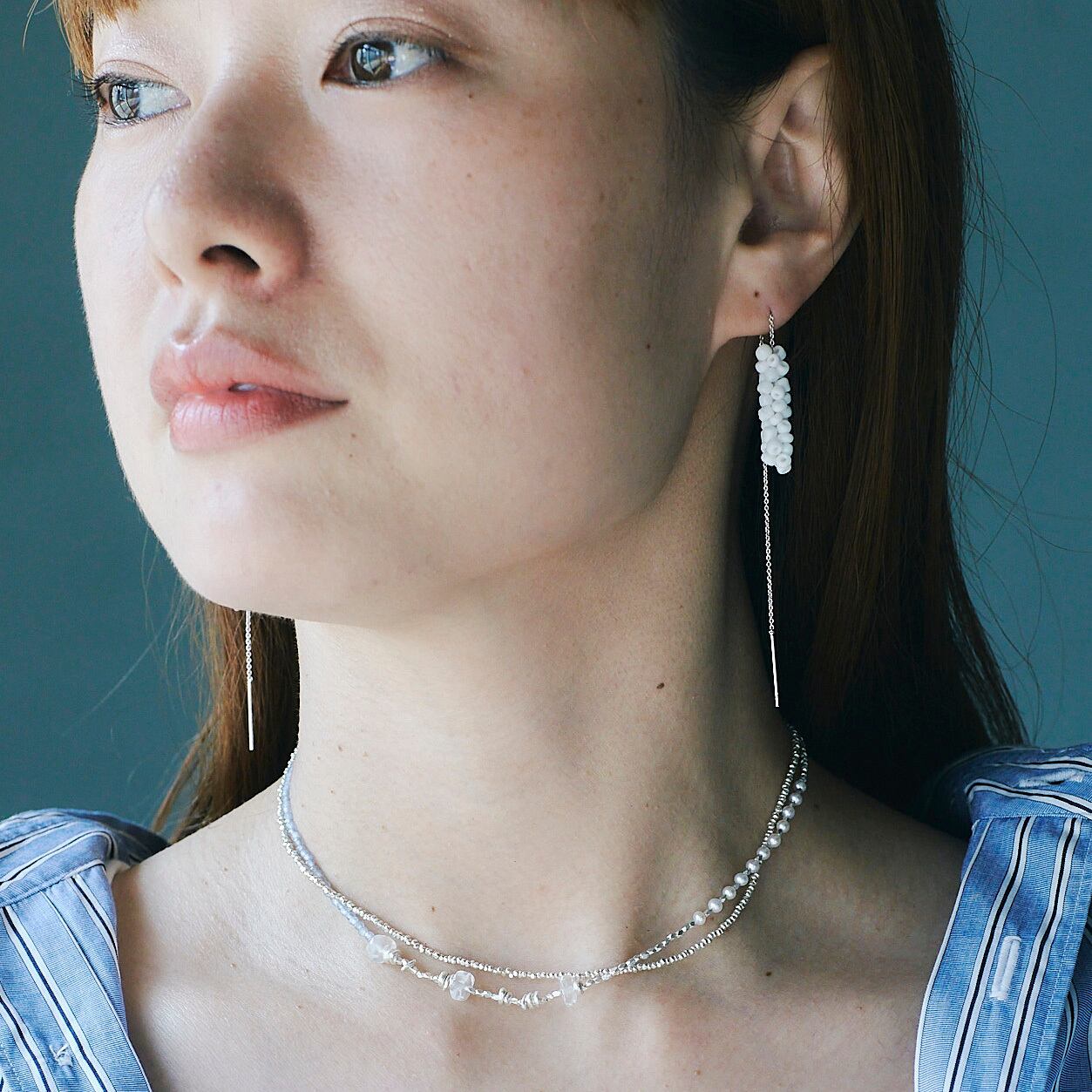 天然石ビーズと淡水パール、シルバービーズを贅沢に使用した、