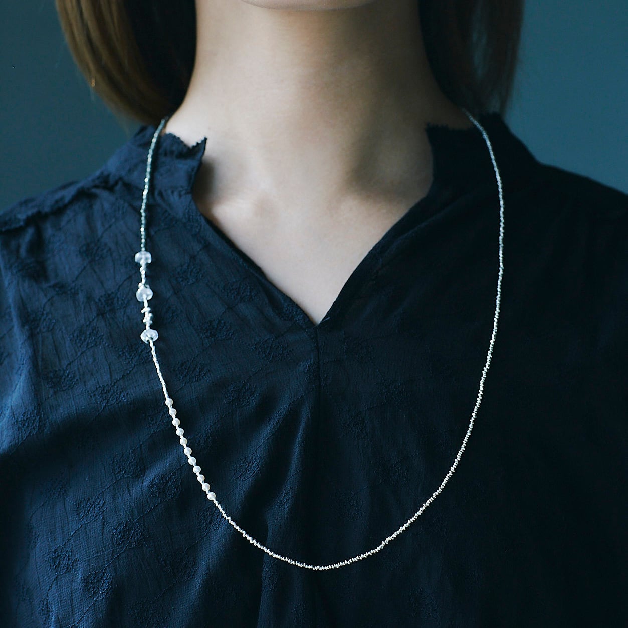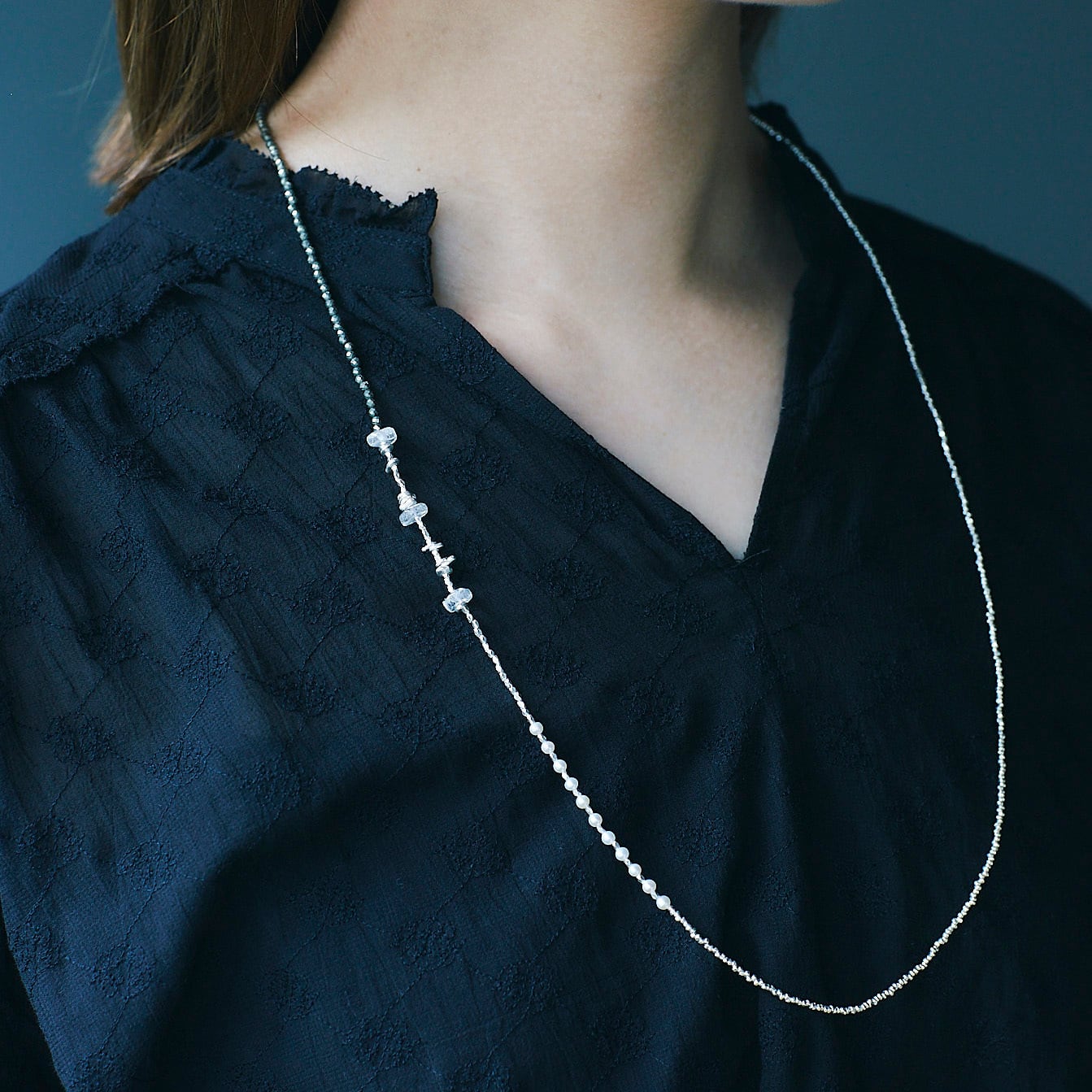 カットが入ったビーズの輝きとパールの上品さが、軽やかに首元を彩ります。