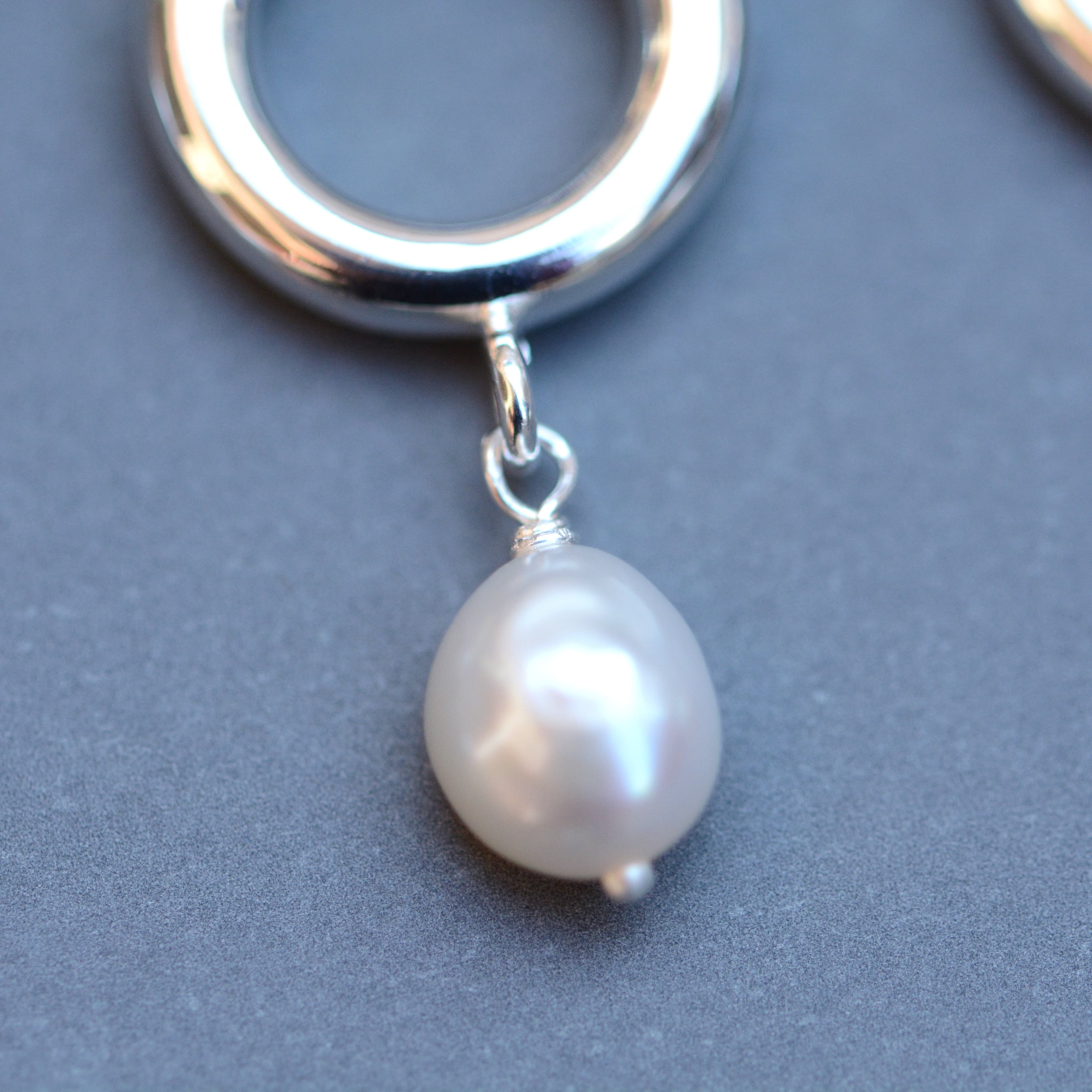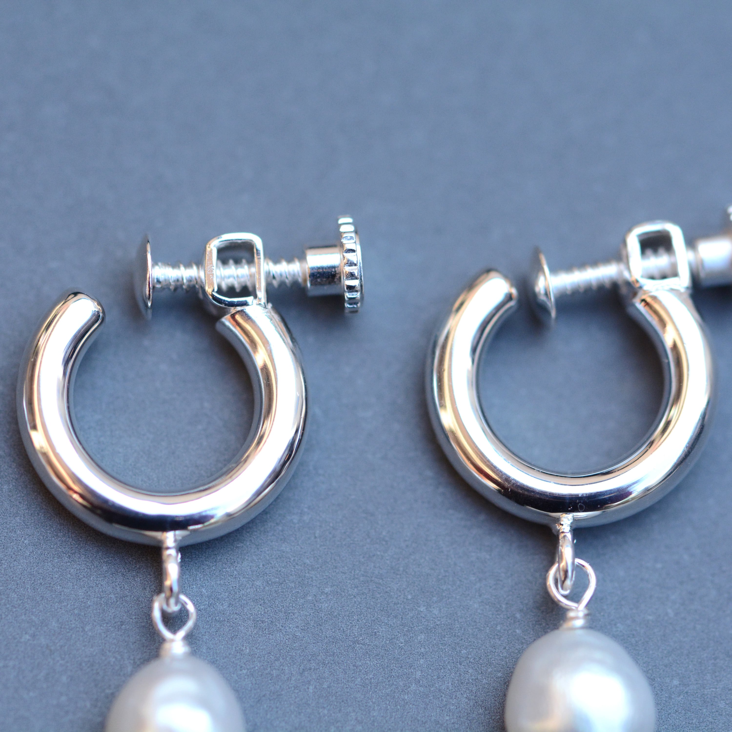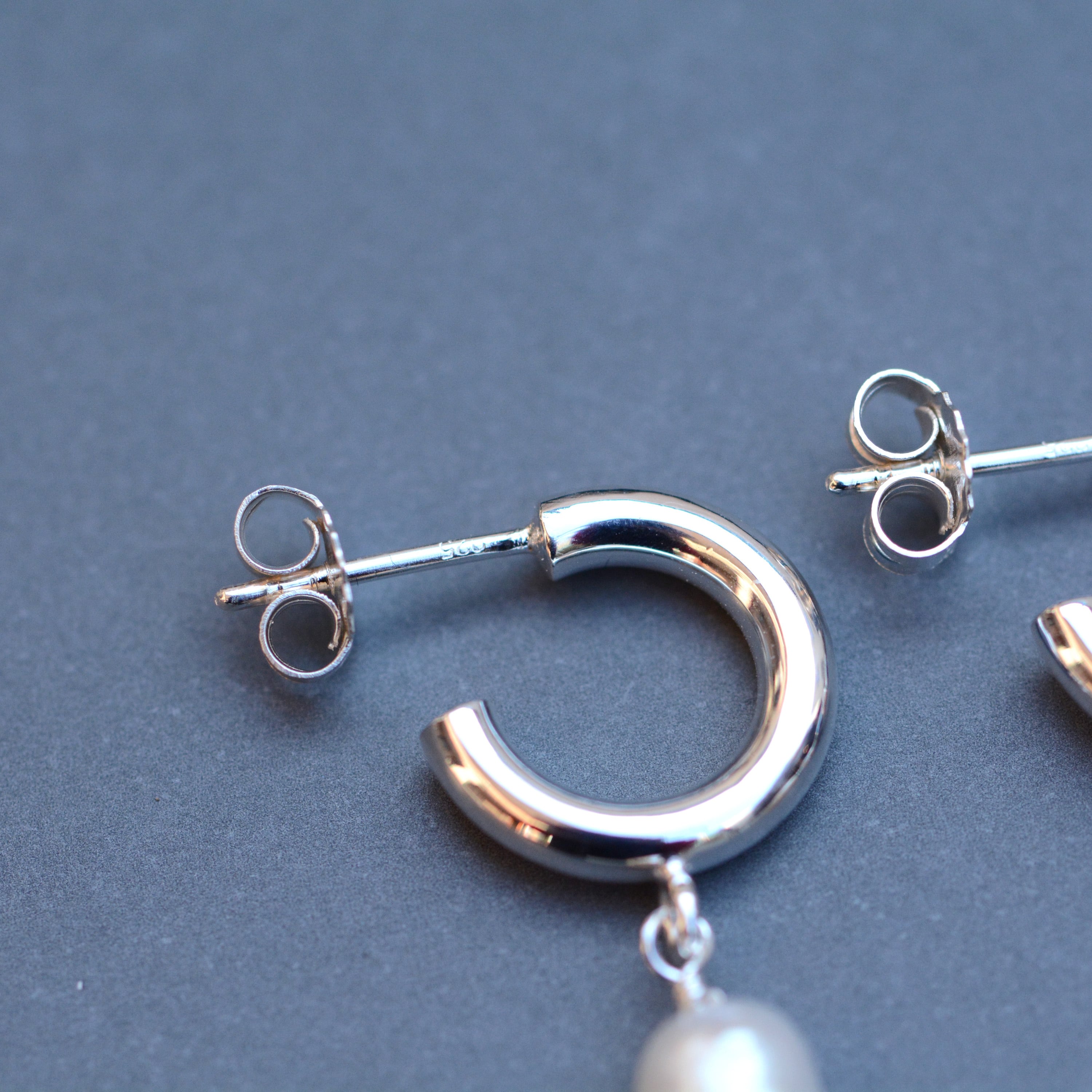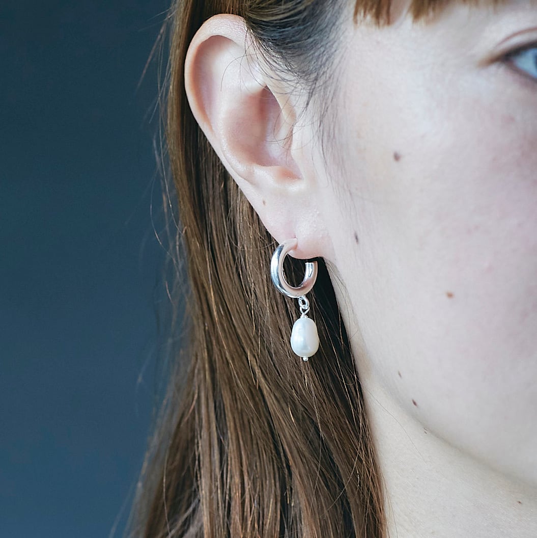 丸いシルバーモチーフと揺れるパールの組み合わせは、