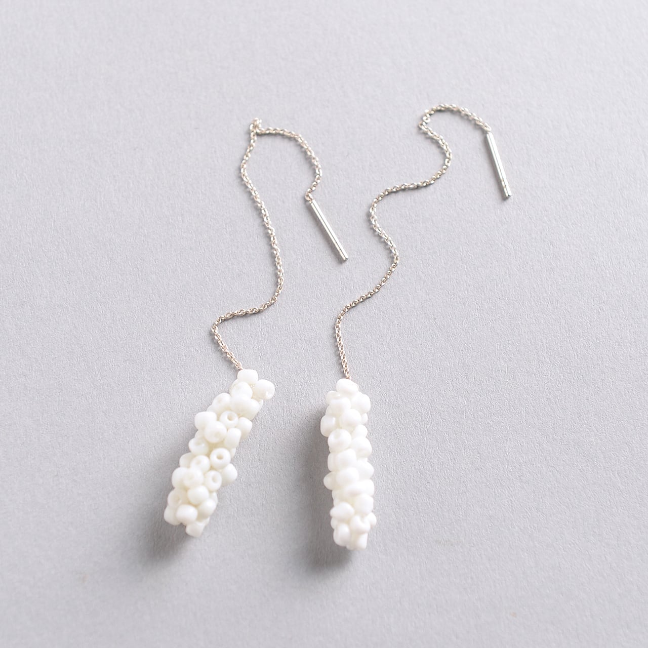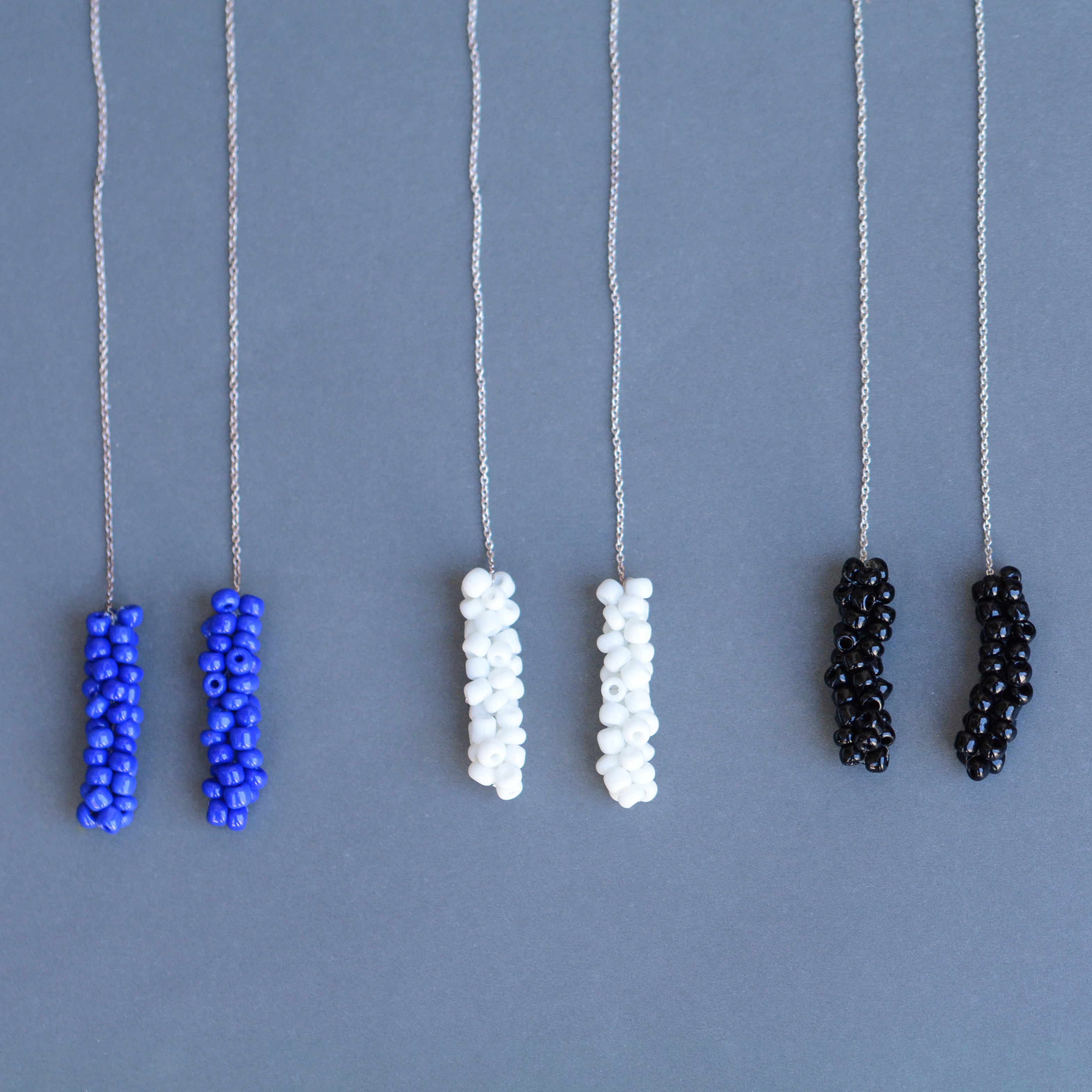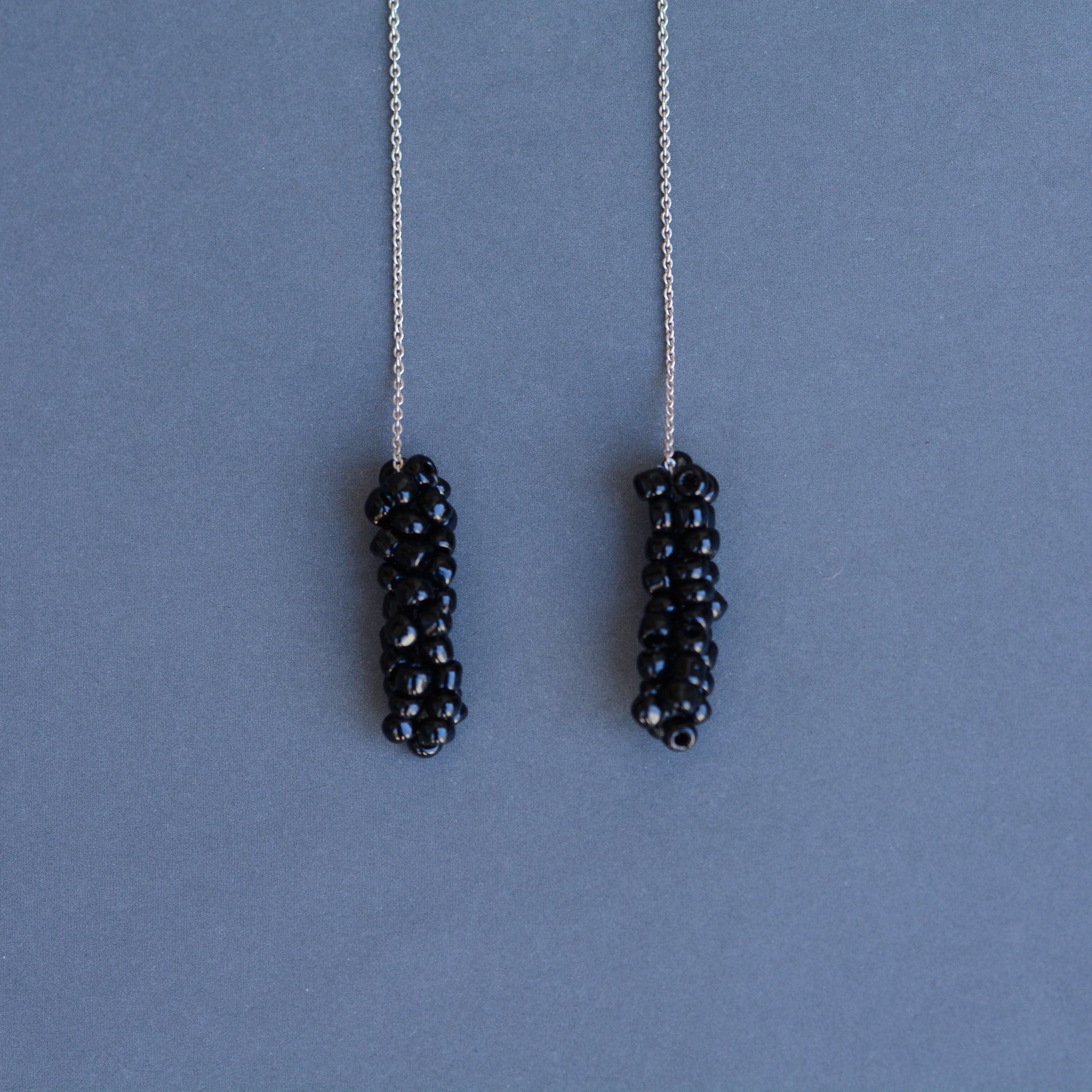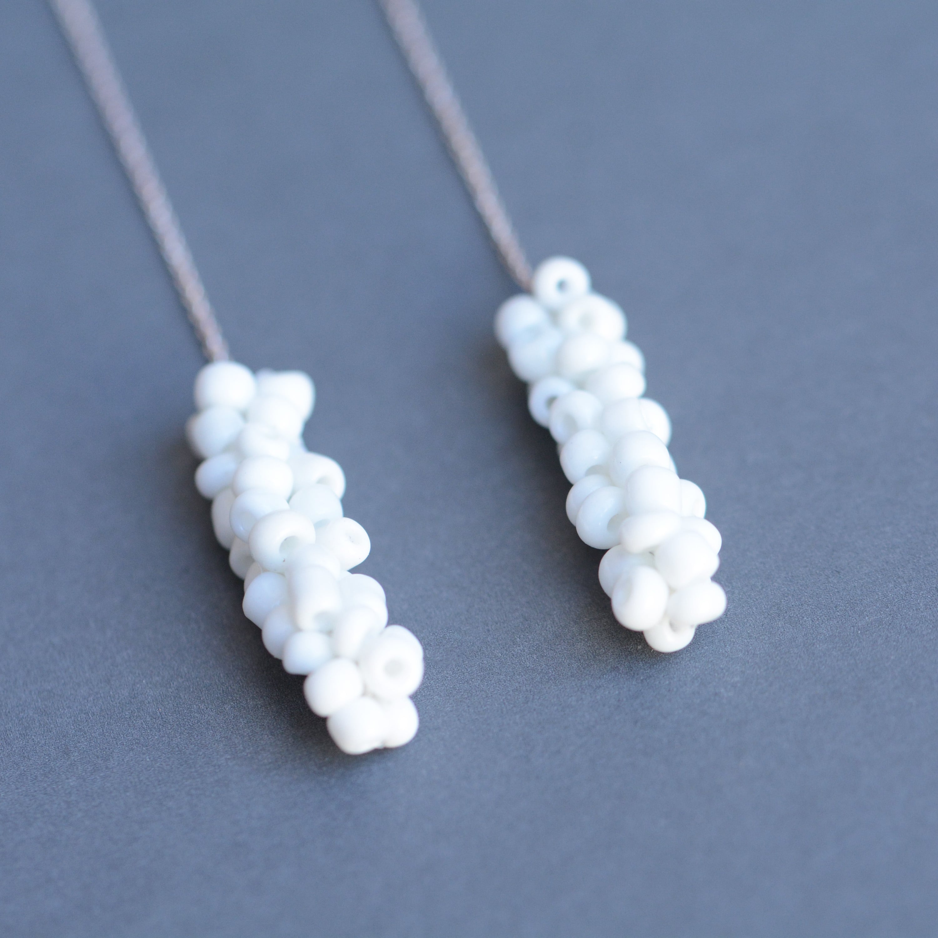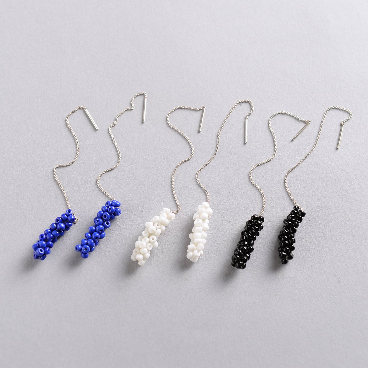 ガラスビーズをフランス製のsilkレース糸で編んで作ったピアス。