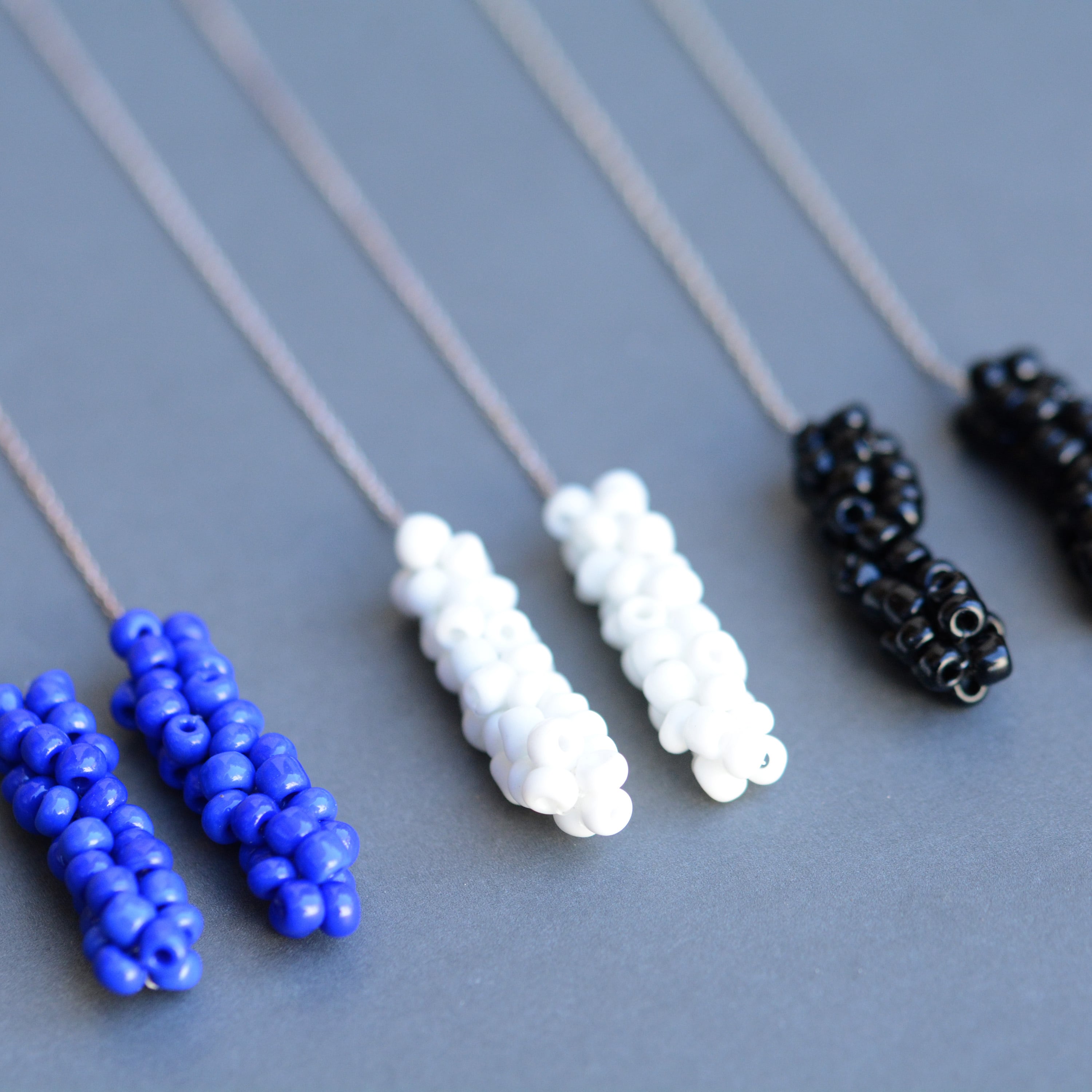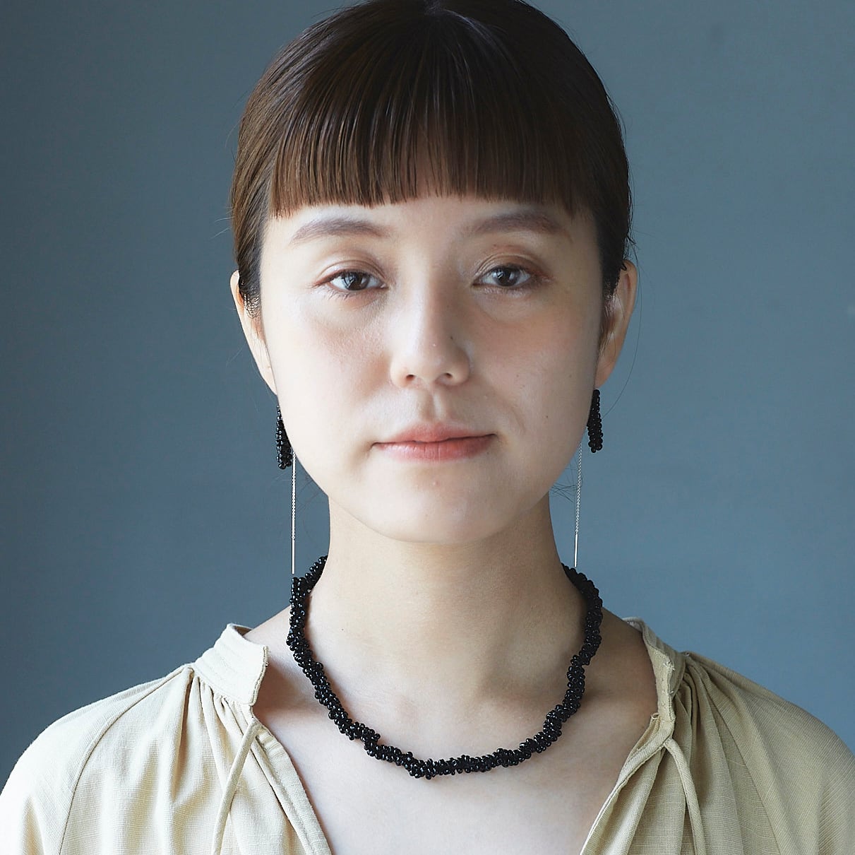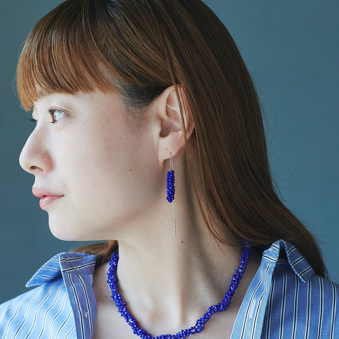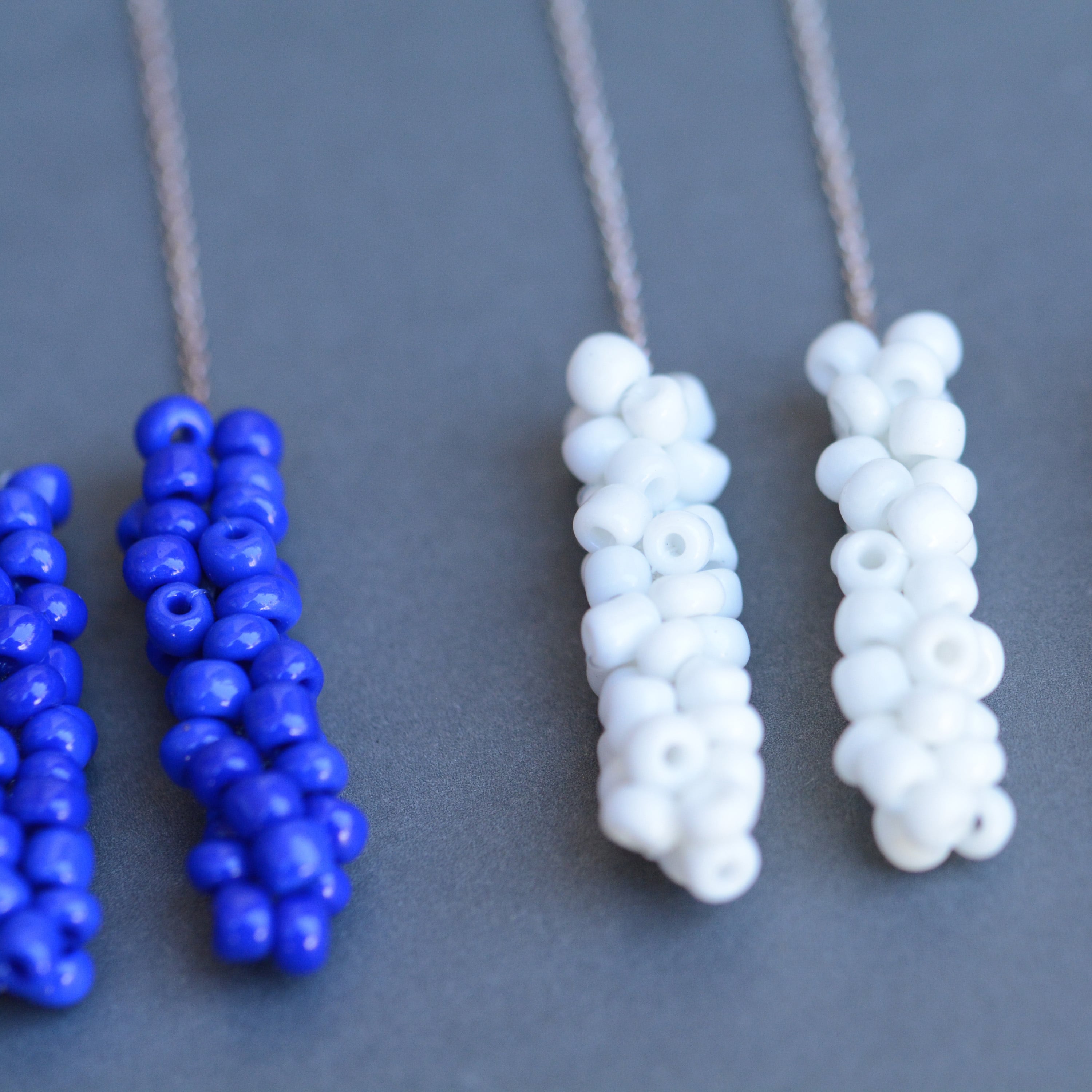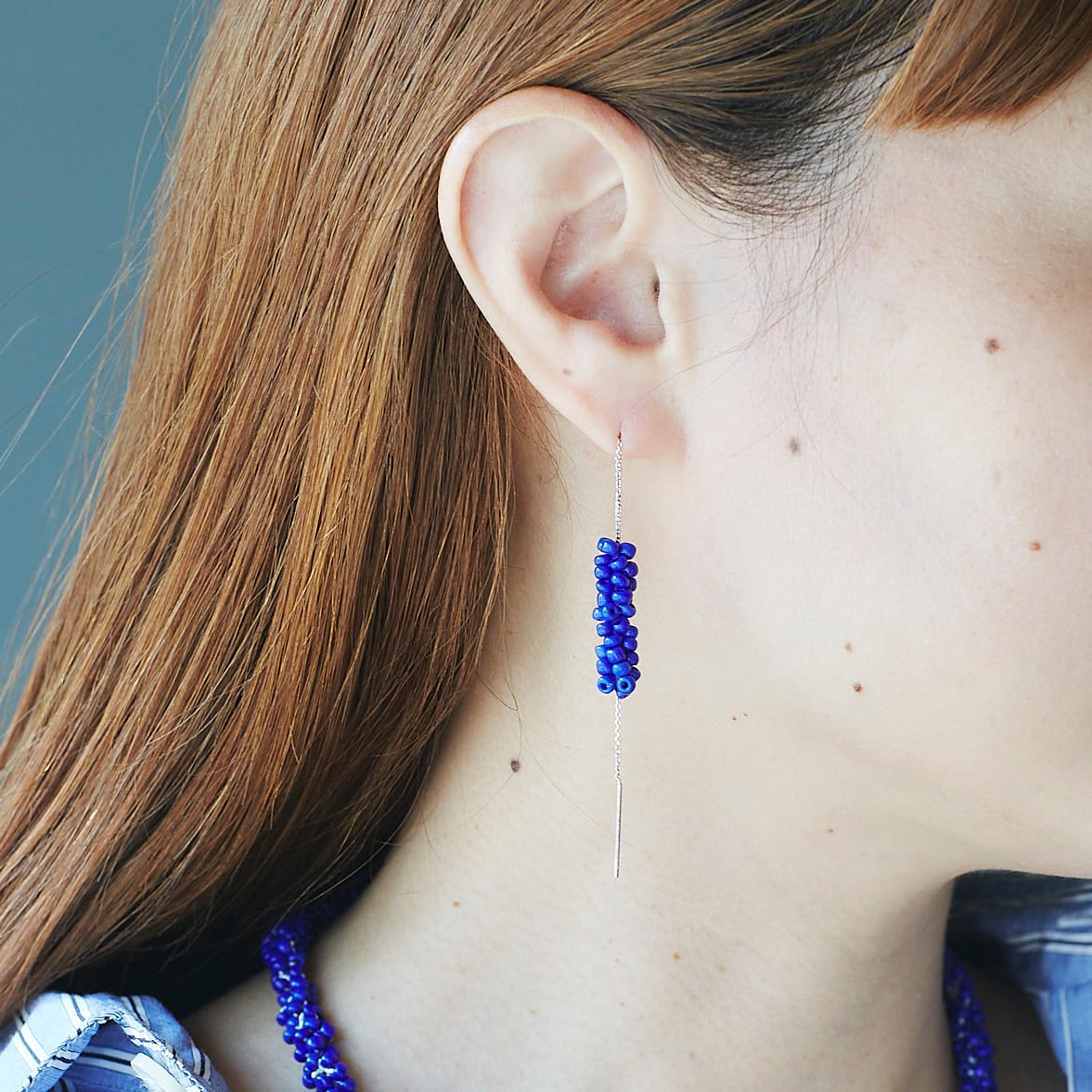 ガラスビーズをフランス製のsilkレース糸で編んで作ったピアス。