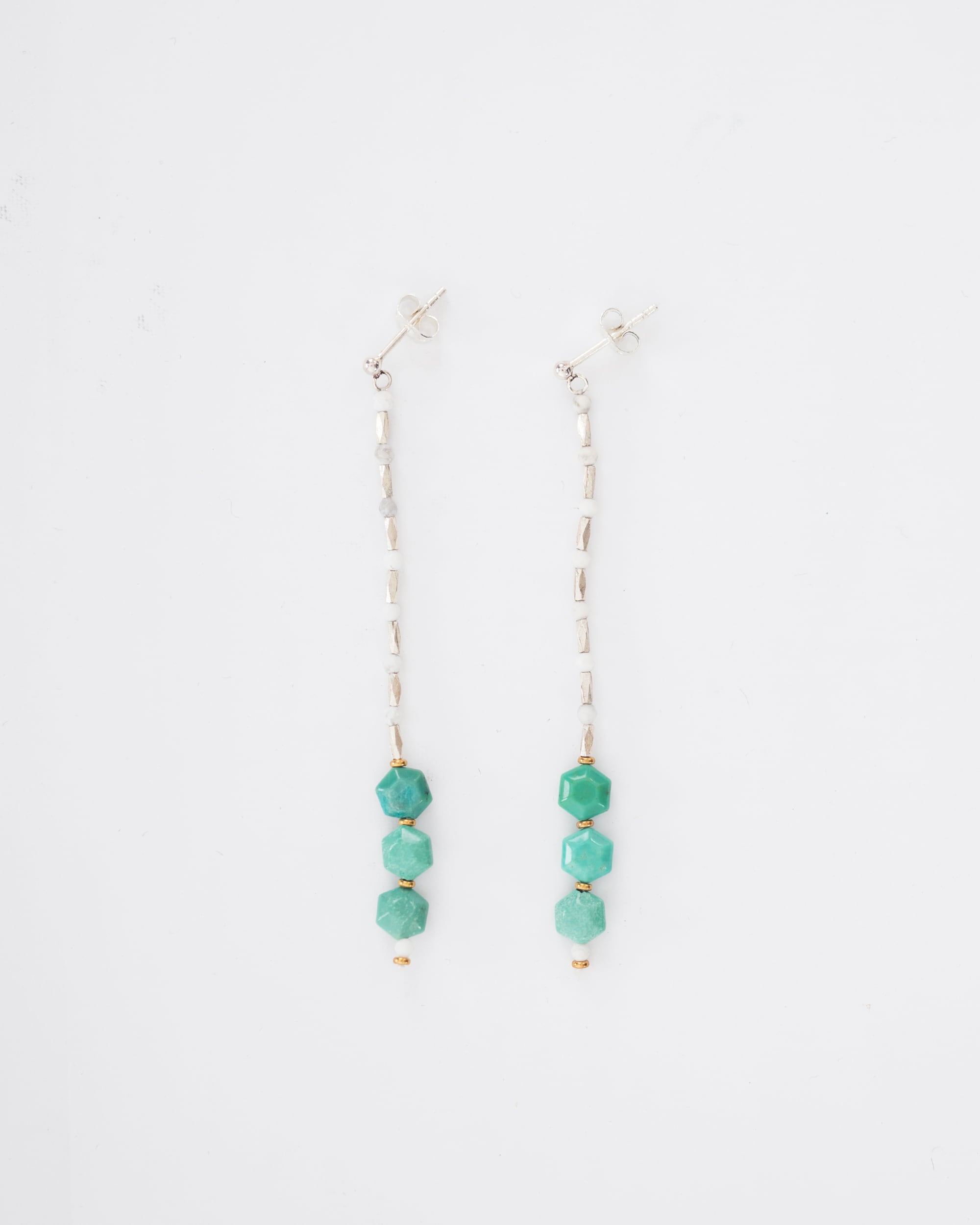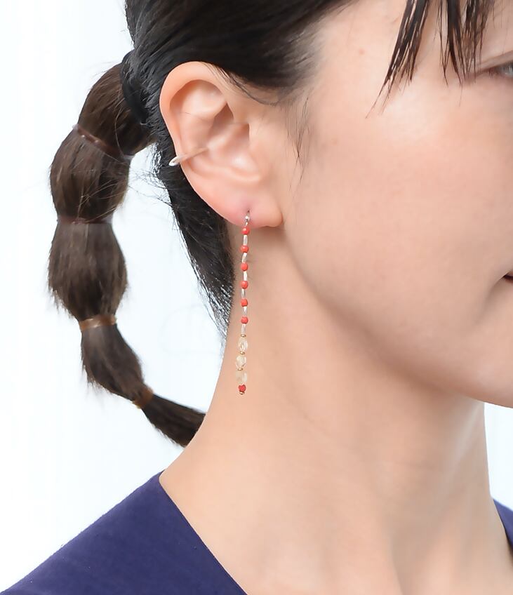 silverにカラフルな石と六角形にcutされたcitrineを組み合わせピアス。 size:6cm material:silver925/ citrine turquoise:howlite pink :incarose red :coral