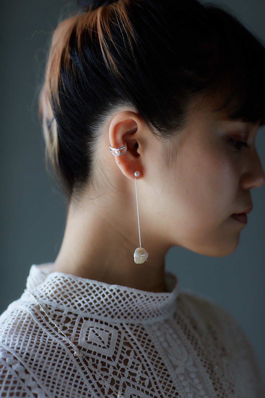 単体のシンプルなパールピアスとしてもお使いいただけますし
