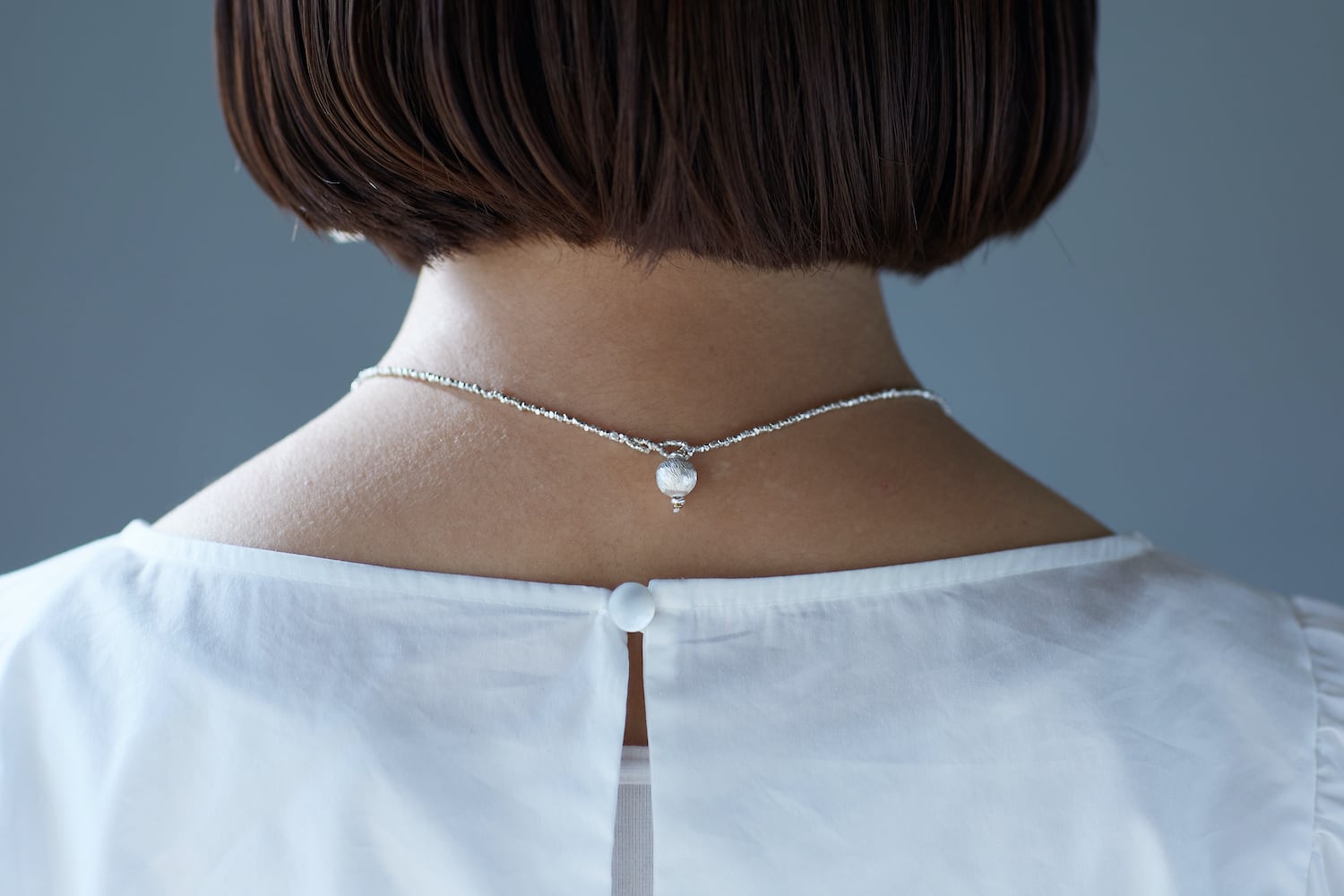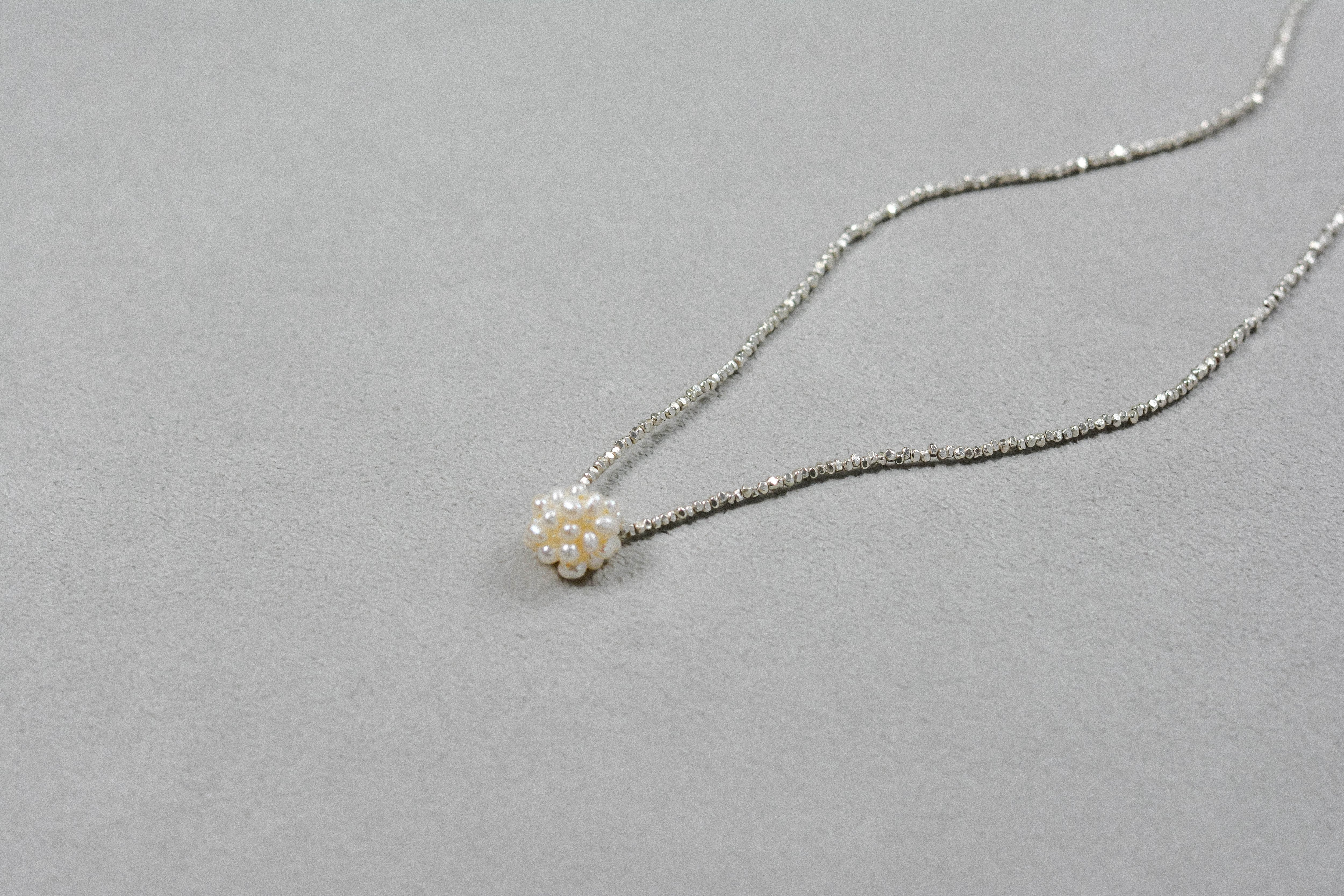 定番のシルバービーズと組み合わせシンプルな中にも可憐さがあるネックレスとなっております。