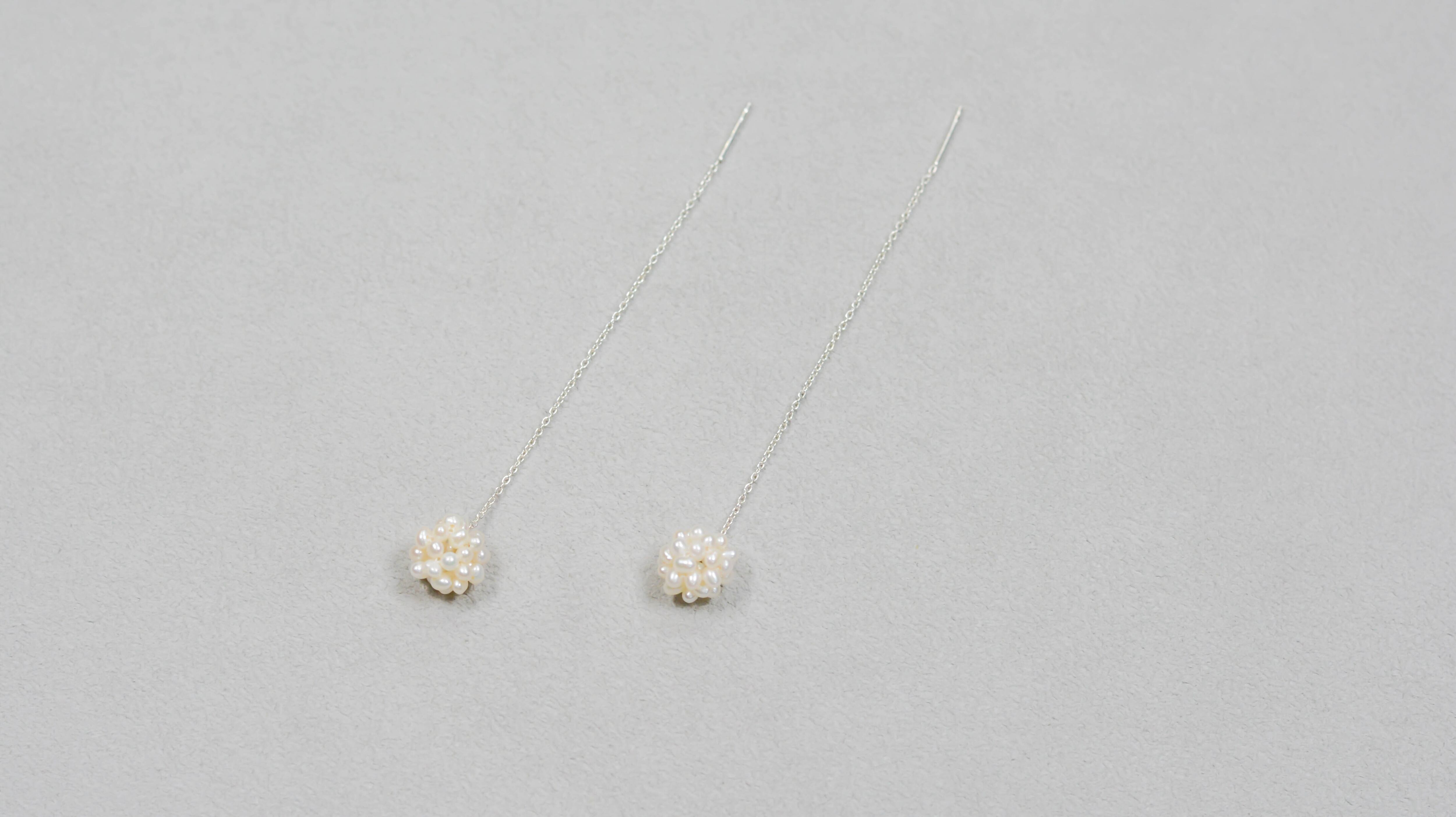 小さいパールでお花のようなデザインに仕上げた可愛らしいデザイン ピアスはお好きな長さに調節していただけます。