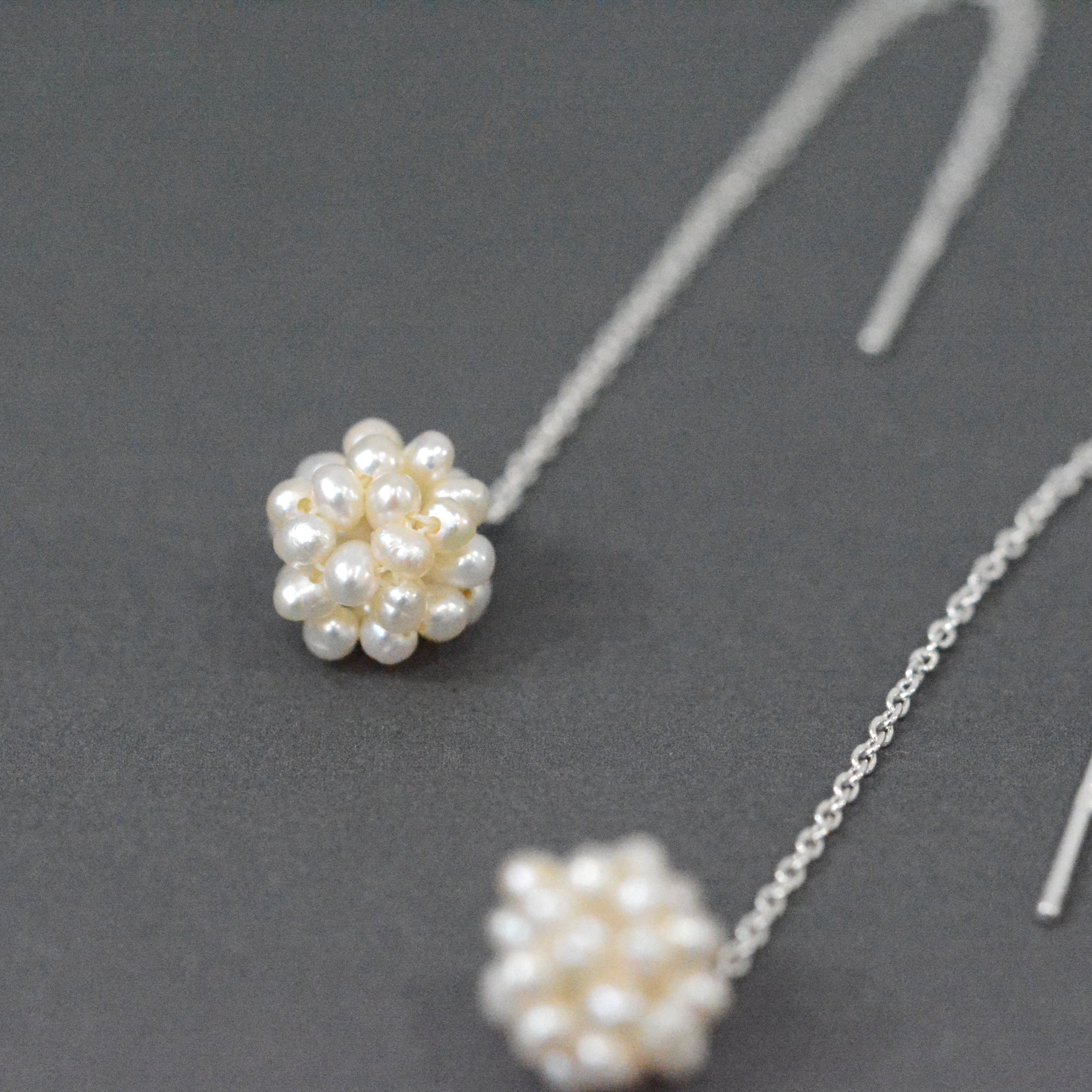 小さいパールでお花のようなデザインに仕上げた可愛らしいデザイン ピアスはお好きな長さに調節していただけます。 size:全長約9cm モチーフsize:約7mm