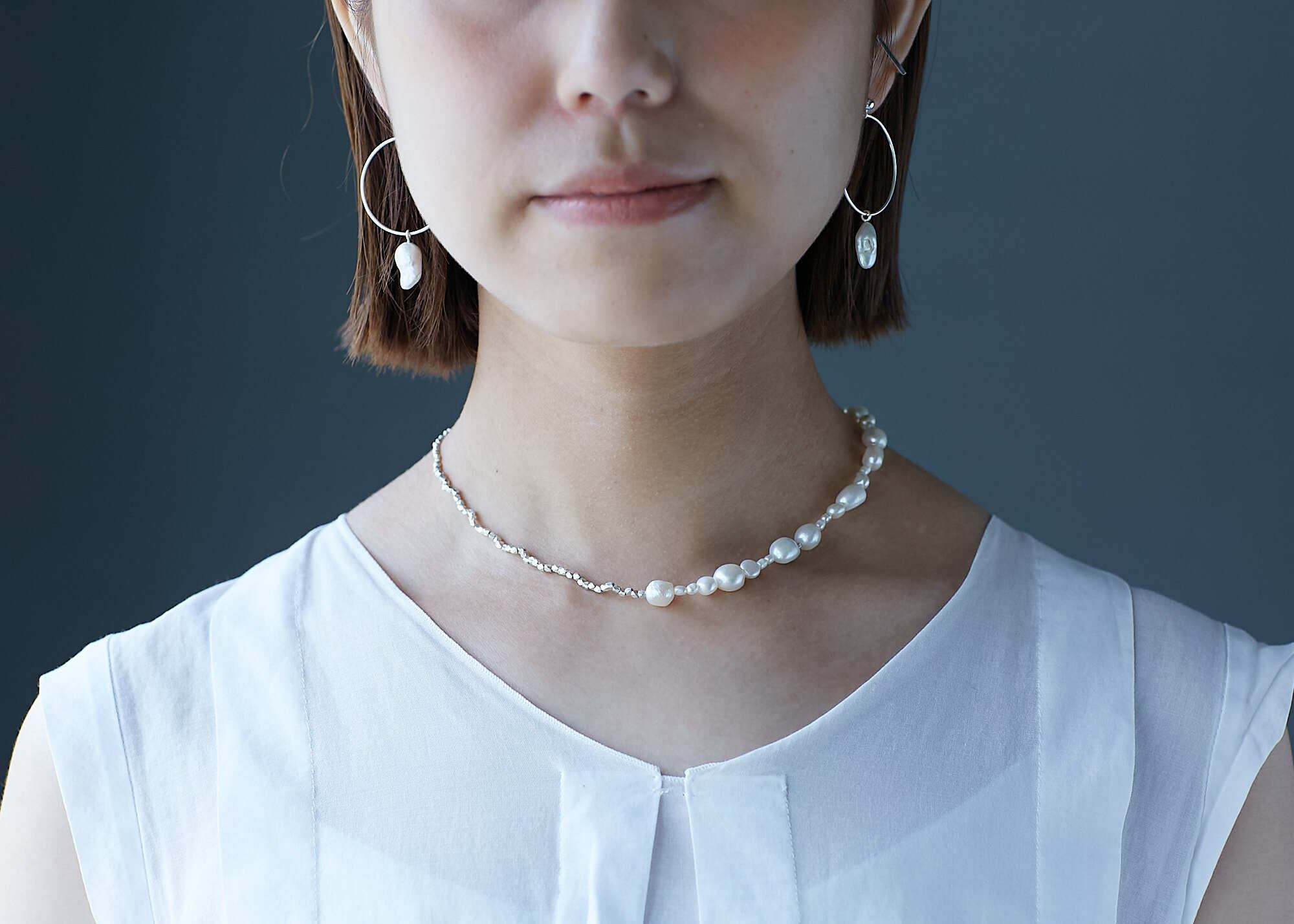 大・中・小の大きさと形状が異なる淡水パールを交互に合わせたネックレス。 カットがキラキラと繊細に輝くシルバービーズと組み合わせていて、抜け感のあるデザインに仕上げております。 2サイズ展開です。 size:約40cm material:silver925 /freshwater pear