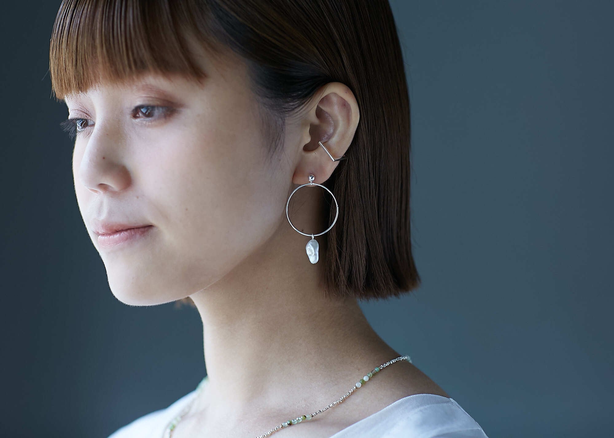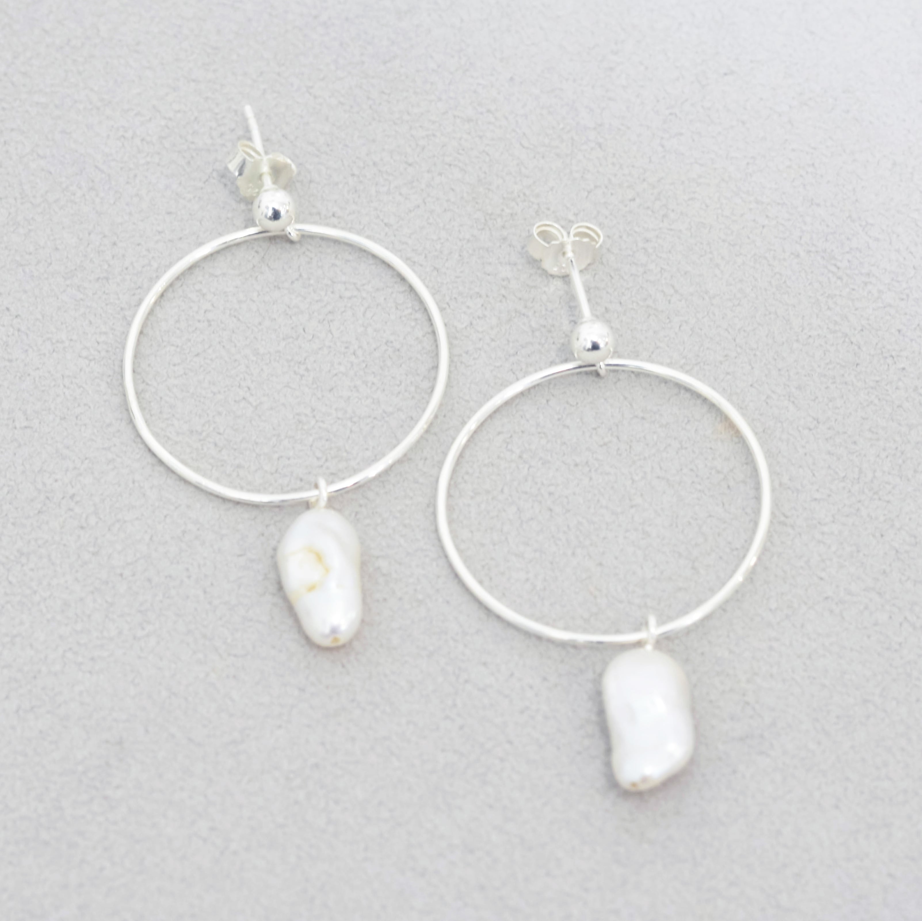 フープのモチーフに淡水パールが付いているデザイン。 シンプルながらも顔の印象を華やかにしてくれます。 どんな服装にも合わせやすいピアス・イヤリングです。 size:フープ約3cm・淡水パール約1.5cm material:silver925 /freshwater pearl