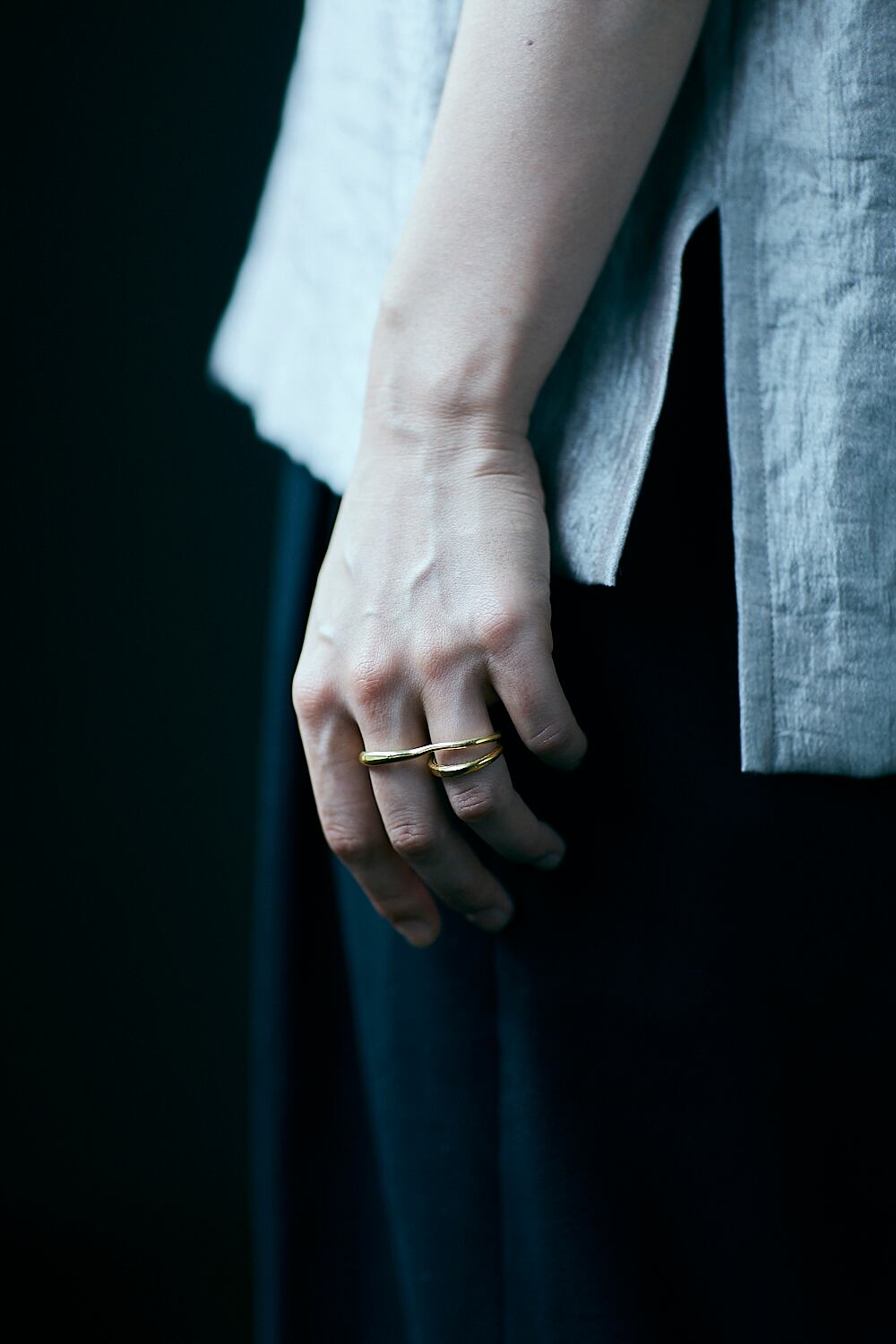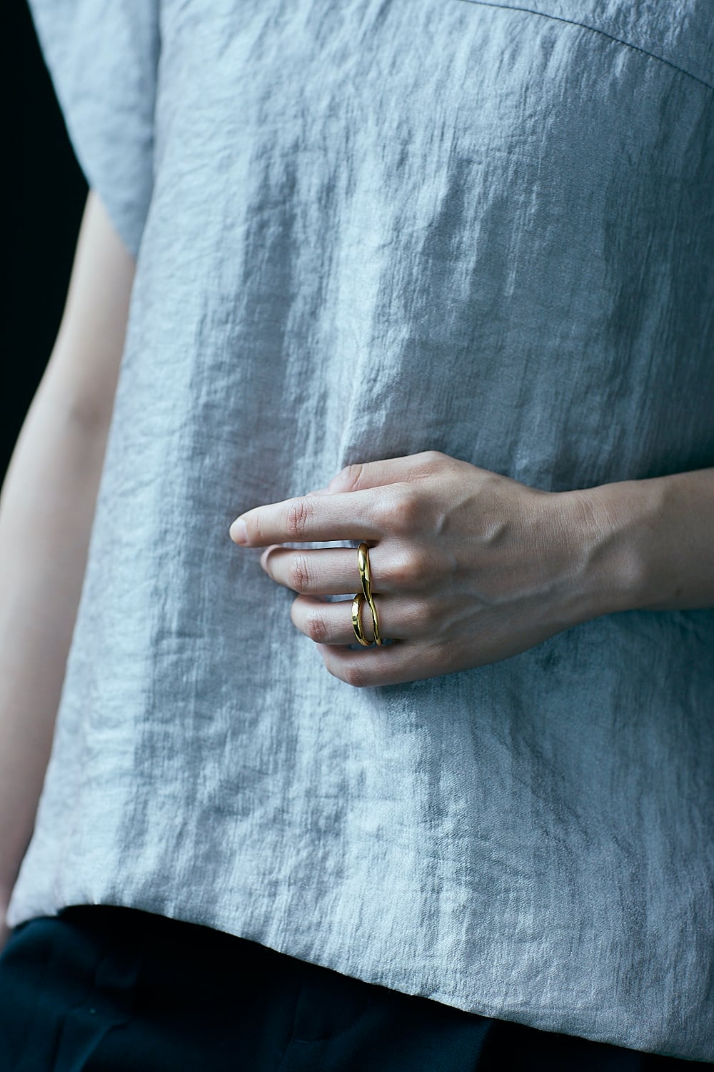 なだらかにカーブするダブルフィンガーリングは身につけるだけで指元を華やかに演出します。 カジュアルな日常使いからフォーマルな場面まで幅広くご利用いただけます。 size:11号(着画中指)と13号(着画薬指) material:silver925,22K gold