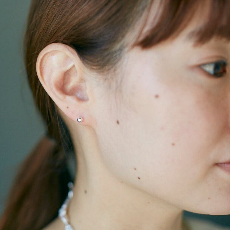 小さな丸い飾りがシンプルながらも洗練された印象のピアス。さりげないアクセントで耳元にそっと寄り添ってくれます。4mmサイズ(S)と7mmサイズ(M)の2サイズがございます。 モチーフsize: 約4mm material:silver925/18金メッキ